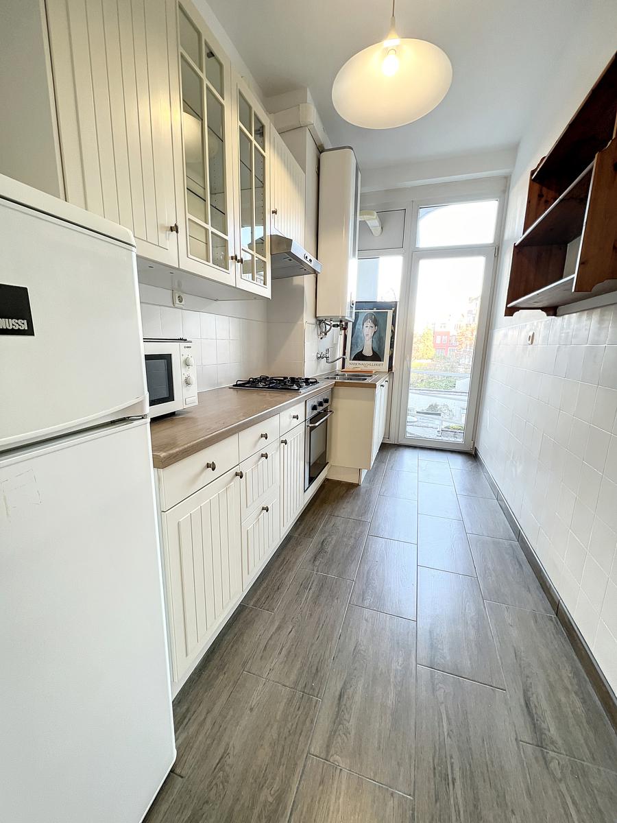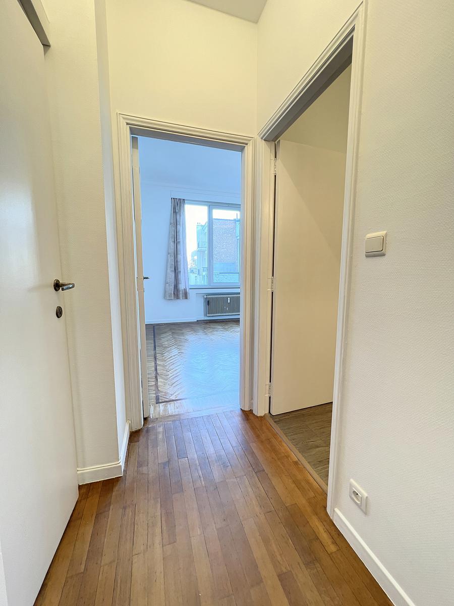 Situé à 100m de la place Stéphanie nous vous proposons ce superbe appartement 1 chambre situé au 3ème sur 7. Il se compose comme suit: sur la droite le salon de +/- 25m² orienté ouest, parqueté avec style, feu ouvert décoratif ; Sur la gauche la cuisine de+/- 8m² équipée (frigo avec congélateur Zanussi, Micro-onde Bosch, four Whirlpool avec taques au gaz) avec ses espaces de rangement et son balcon extérieur; En face un hall de nuit qui dessert la toilette, la salle de bain de +/- 5m² avec emplacement pour la machine à laver et la chambre de +/- 15m² avec ses armoires encastrées. Porte sécurisée 5 points, Double vitrage en pvc, Boiler eau chaude électrique, chauffage collectif au gaz, radiateurs à calorimètres. Provisions pour charges chauffage, eau et communs: 200€/ mois.