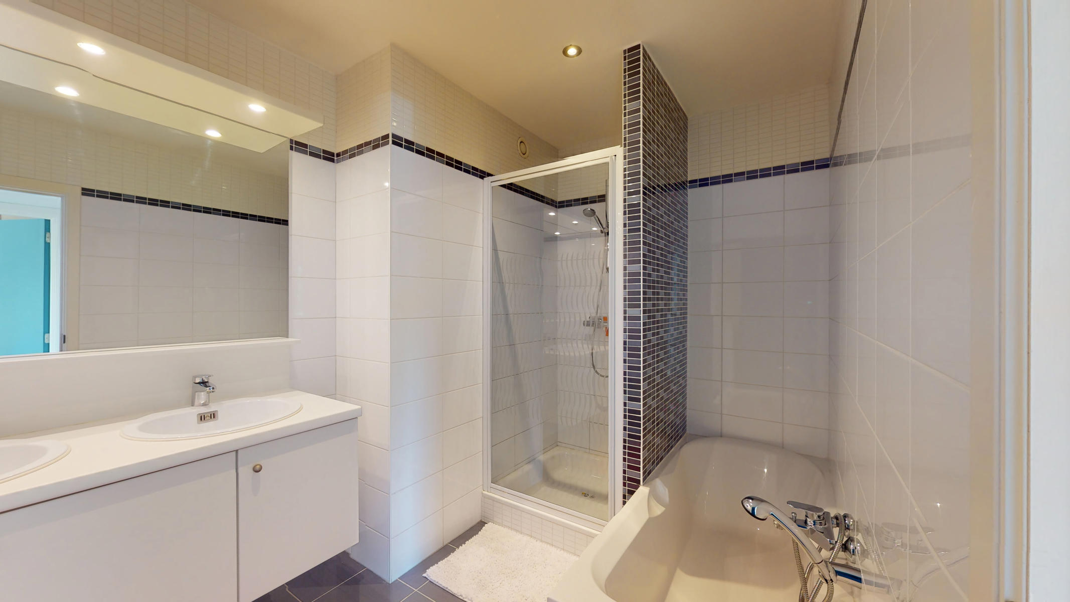 – Grande salle de bain de 6,5 m² avec bain ET douche.