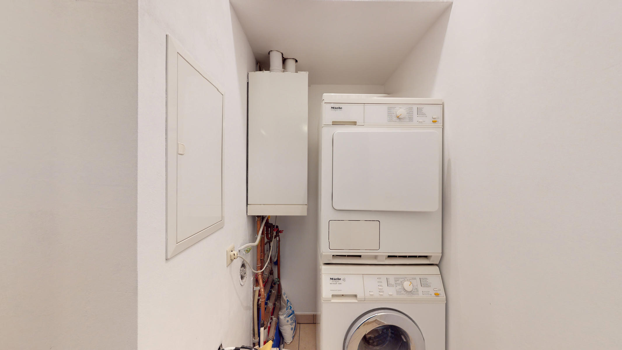 – hall d’entrée avec vestiaire, toilette et buanderie,