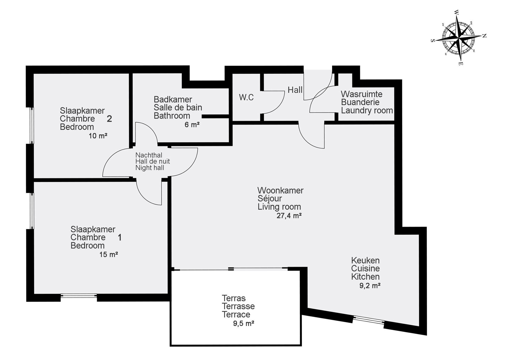 Idéalement situé à 500 m. de Woluwe, très bel appartement à l‘état presque neuf au 1er étage sur 3 d’un immeuble récent (2003) comprenant :