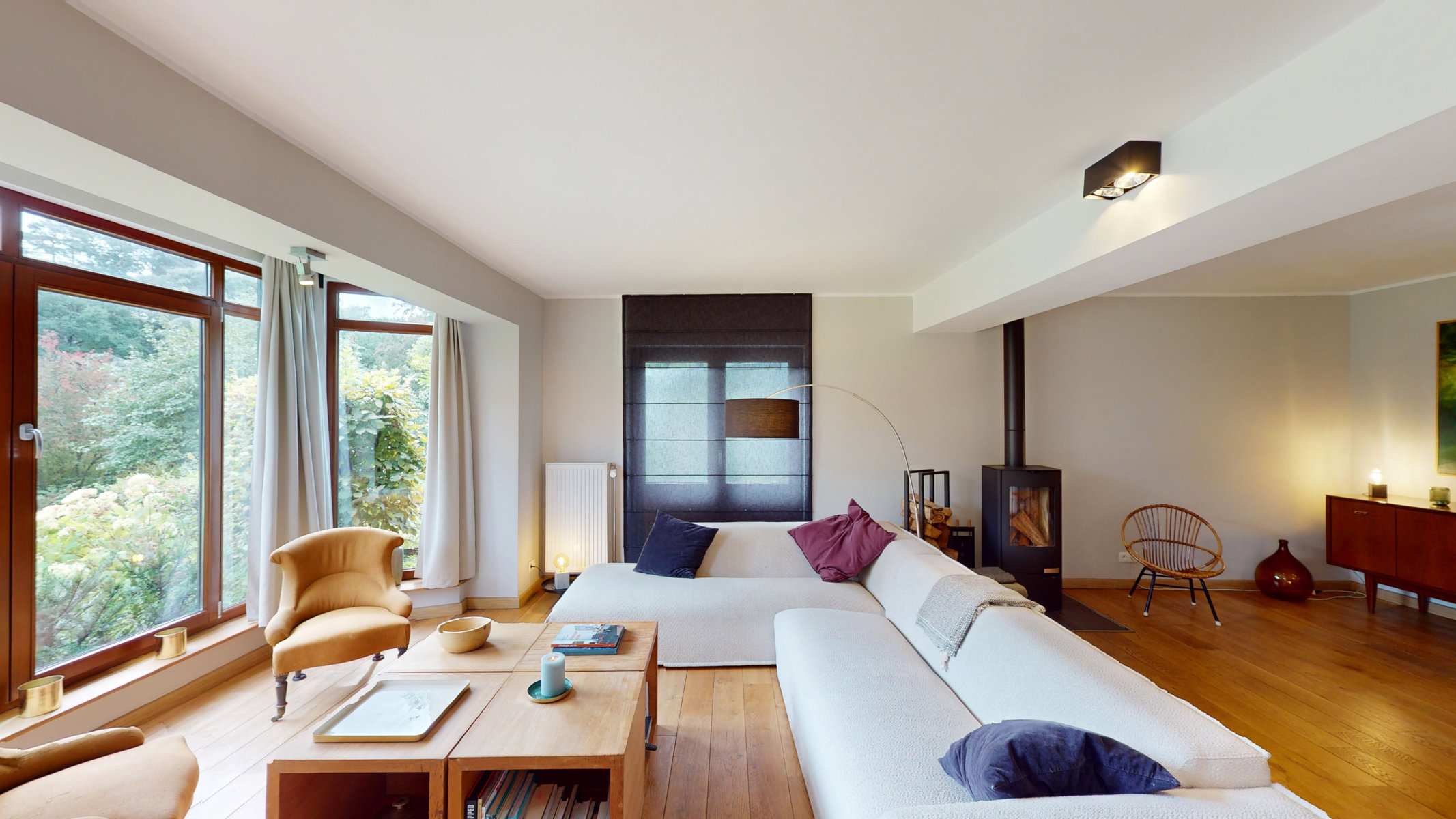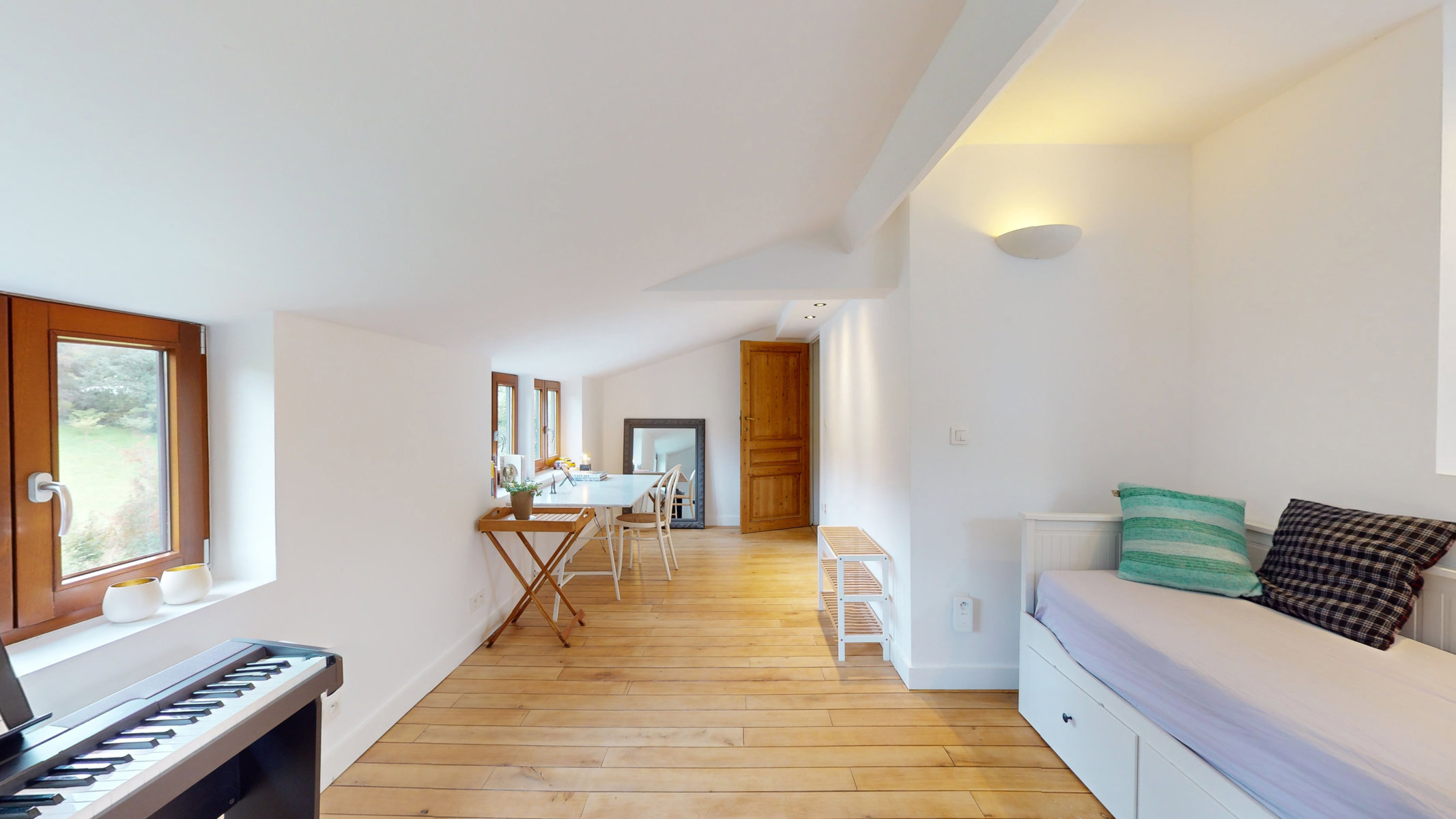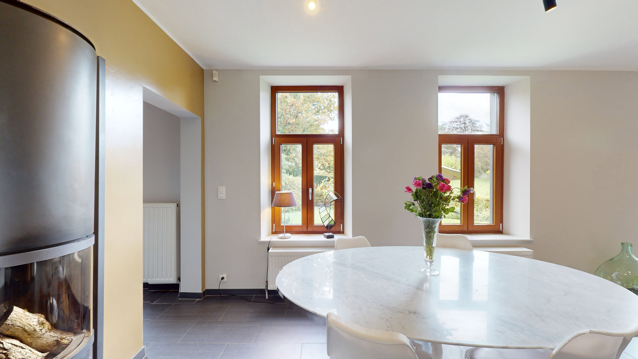 Situé dans un cadre bucolique et enchanteur, proche de Céroux-Mousty, de Rixensart et Court saint Etienne, By the Way a le plaisir de vous présenter cette villa de charme, de style fermette, nommée « La Rawette » qui dispose aussi d’un logement annexe, actuellement loué. La villa a une vue imprenable sur les prés et le gracieux passage de chevreuils est fréquent dans ce havre de paix. Le quartier est paisible et convivial (Brocante annuelle), à proximité de nombreuses commodités (Ecoles, pharmacie, médecin généraliste et la gare d’Ottignies). Elle a fait l’objet d’une rénovation en profondeur en 2010 au niveau des châssis et de l’isolation toiture. La maison principale est chauffée avec une chaudière à pellets, l’annexe au mazout. Elle se compose comme suit: Un hall d’entrée (avec 2 portes possibles) vers une cuisine ouverte avec salle à manger de +/- 31,83 m2 et buanderie. Un vaste salon « cosy » de +/- 38,91 m2 avec poêle à bois, pour les soirées d’hiver. A l’étage, se situent 3 belles chambres ainsi qu’un bureau et une belle salle de bain. Il y a aussi une cave et un carport, des places de parking. Quant à l’annexe, elle se compose d’un beau séjour et cuisine ouverte de +/- 41,54m2. A l’étage, d’une chambre de +/- 16,58 m2, d’une salle de bain de +/- 11,84m2 et d’un garage. Coup de cœur assuré! PEB D (pour le logement principal) et PEB F (pour l’annexe)-Electricité conforme pour les 2.Toutes les informations via le lien suivant : https://biens.bytheway.immo/limauges-3-et-3a/index.php .