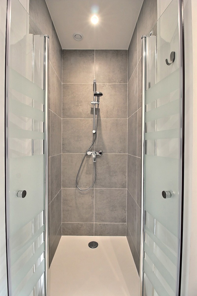 Dans une calme impasse à seulement 850m de la gare et du centre de Linkebeek. By The Way vous propose cet appartement de +/- 85 m2 nets , 2 chambres et 2 salles d’eau ! Au 1er étage avec ascenseur d’une petite copropriété paisible de 7 unités. L’appartement, doté d’excellentes performances énergétiques (PEB A), a bénéficié d’une rénovation complète en 2024. Composition: vaste hall d’entrée ouvert sur le séjour de +/- 36m2 avec cuisine américaine, balcon terrasse sur toute la longueur du séjour, vaste buanderie / dressing. Hall de nuit desservant une chambre parentale de +/- 13m2 avec sa salle de bains, son wc privatif et une chambre de +/- 10m2 avec sa salle de douche et son wc privatif. Balcon / terrasse arrière sur toute la longueur de l’appartement. Charges: provision de 250 euros comprenant communs, consommations privatives chauffage et d’eau chaude. Une belle cave privative est comprise dans le prix. En option: un garage box fermé avec porte sectionnelle automatique et possibilité de se stationner devant à 110€. Techniques : chaudière collective au gaz et à condensation et calorimètres électroniques, système de ventilation double flux, châssis doubles vitrages en aluminium, parquet massif, porte blindée, cuisine équipée d’un four, d’un lave vaisselle, d’une taque vitrocéramique et d’un frigo avec compartiment congélateur.