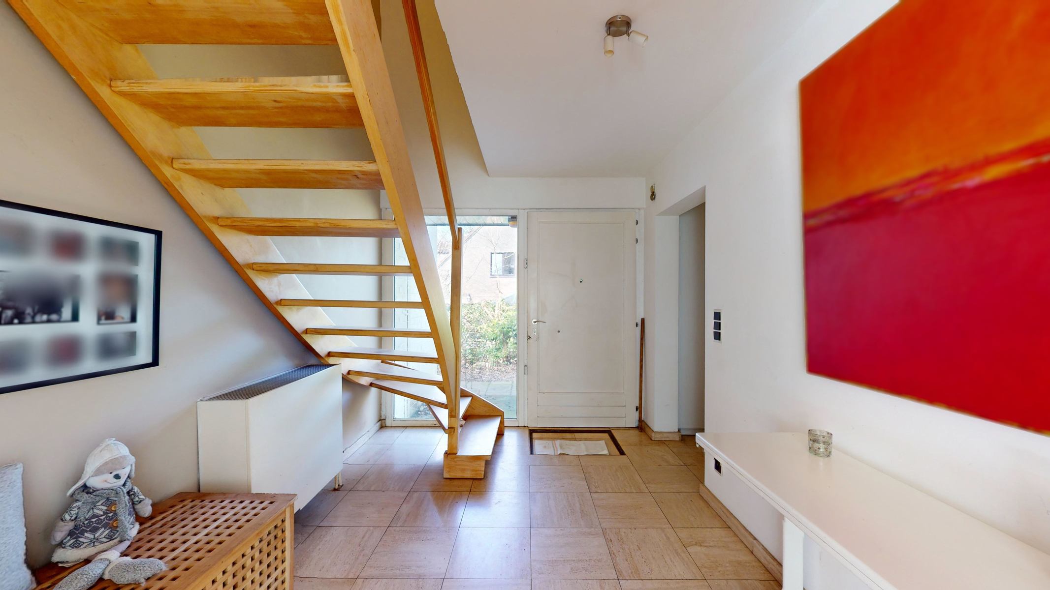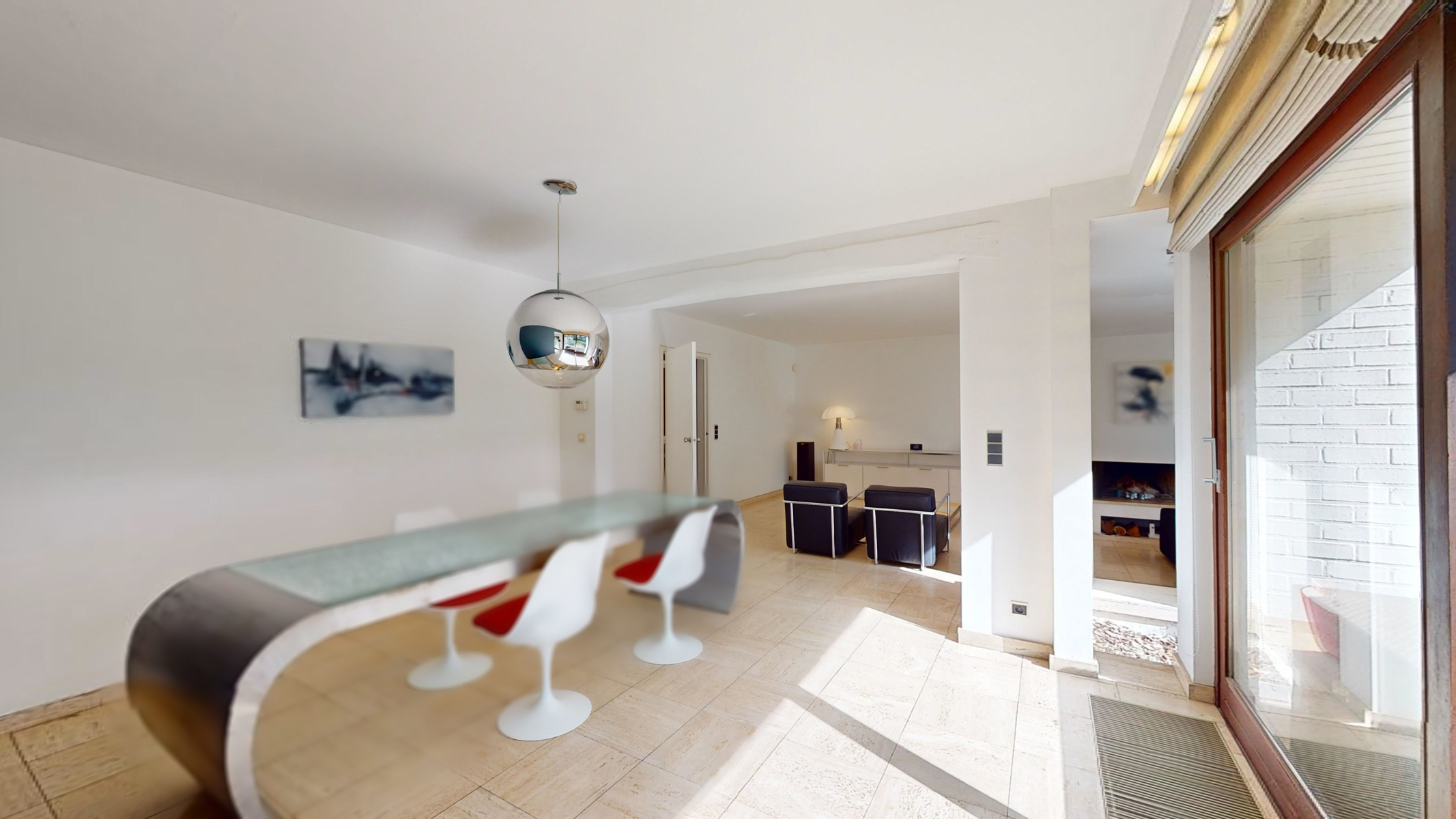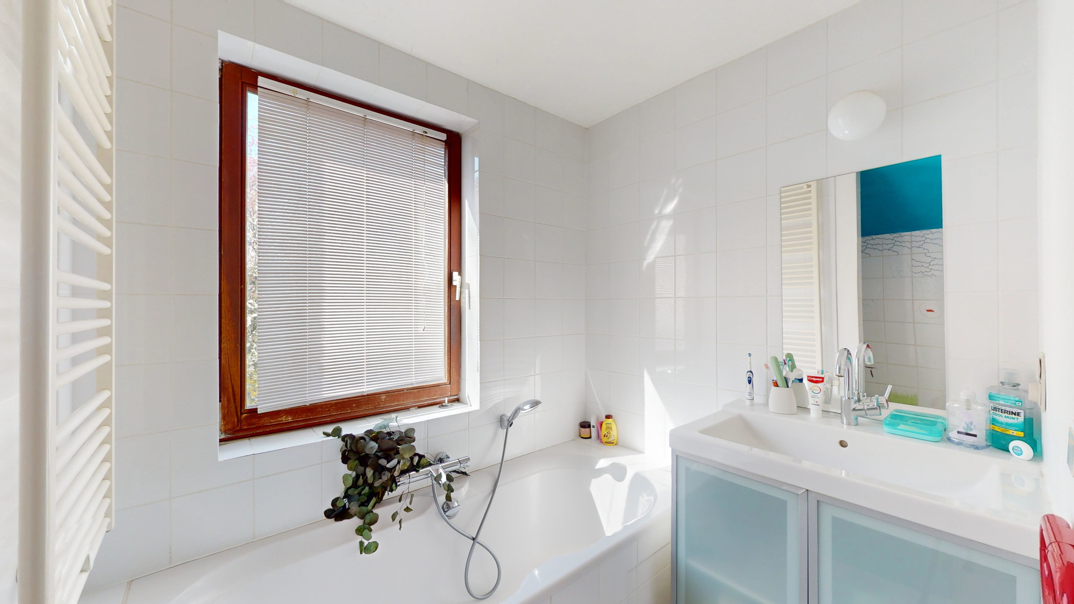 Au rez-de-chaussée, le hall d’entrée avec vestiaire et WC invités s’ouvre sur le vaste séjour lumineux agrémenté d’un feu ouvert. La cuisine avec ilot central est spacieuse et entièrement équipée VARENNA & FOSTER. Un bureau/buanderie et le garage complètent ce niveau.