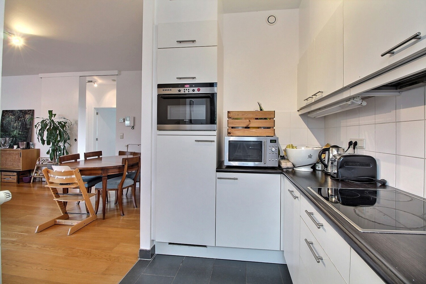 A deux pas du Bois de la Cambre, By the Way vous propose cet appartement 2 chambres au séjour lumineux (+ cave & parking). Ce bien est à proximité immédiate de commerces (Delhaize en face), écoles, transports en commun. Il se trouve au 2ème étage (sur 6) d’un immeuble avec ascenseur. Il se compose comme suit : Hall d’entrée, buanderie, séjour, cuisine semi-ouverte, 2 chambres dont 1 avec sa salle de douche privative, une salle de bain et 2 WC. Le séjour de +/- 38m2 apporte une belle luminosité et donne accès à une terrasse de +/- 12m2. La cuisine est équipée d’un frigo, d’un four à micro-ondes combiné, d’une plaque de cuisson vitrocéramique et d’une hotte. Parquet au sol dans les chambres et dans le séjour. PEB C. Vidéophonie. 1 emplacement de parking intérieur et 1 cave INCLUS. Loyer : 1500 euros/ mois + Provisions de 130 euros/mois pour les charges communes, qui reprennent les provisions pour l’entretien des communs, l’ascenseur, le nettoyage, le jardinier, le syndic… Tous les compteurs sont séparés (gaz, électricité, eau). Libre au 31/05/2024.