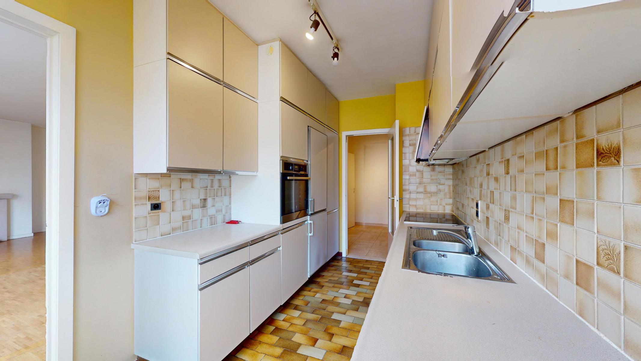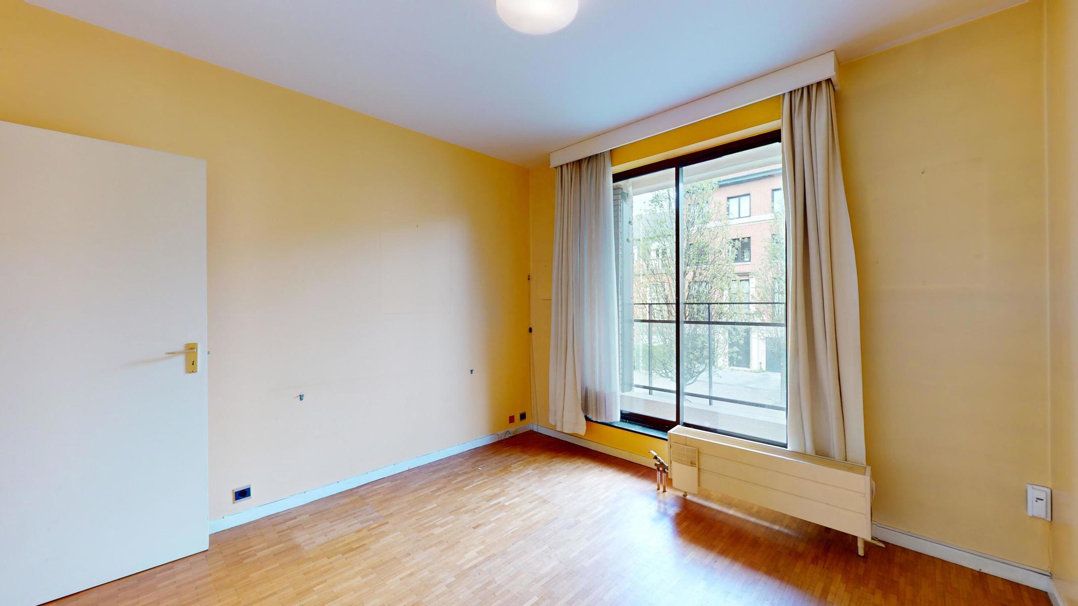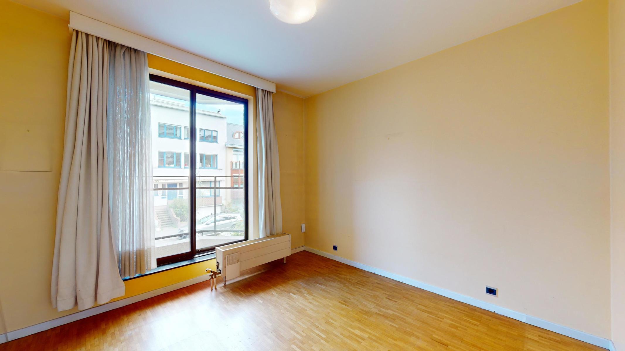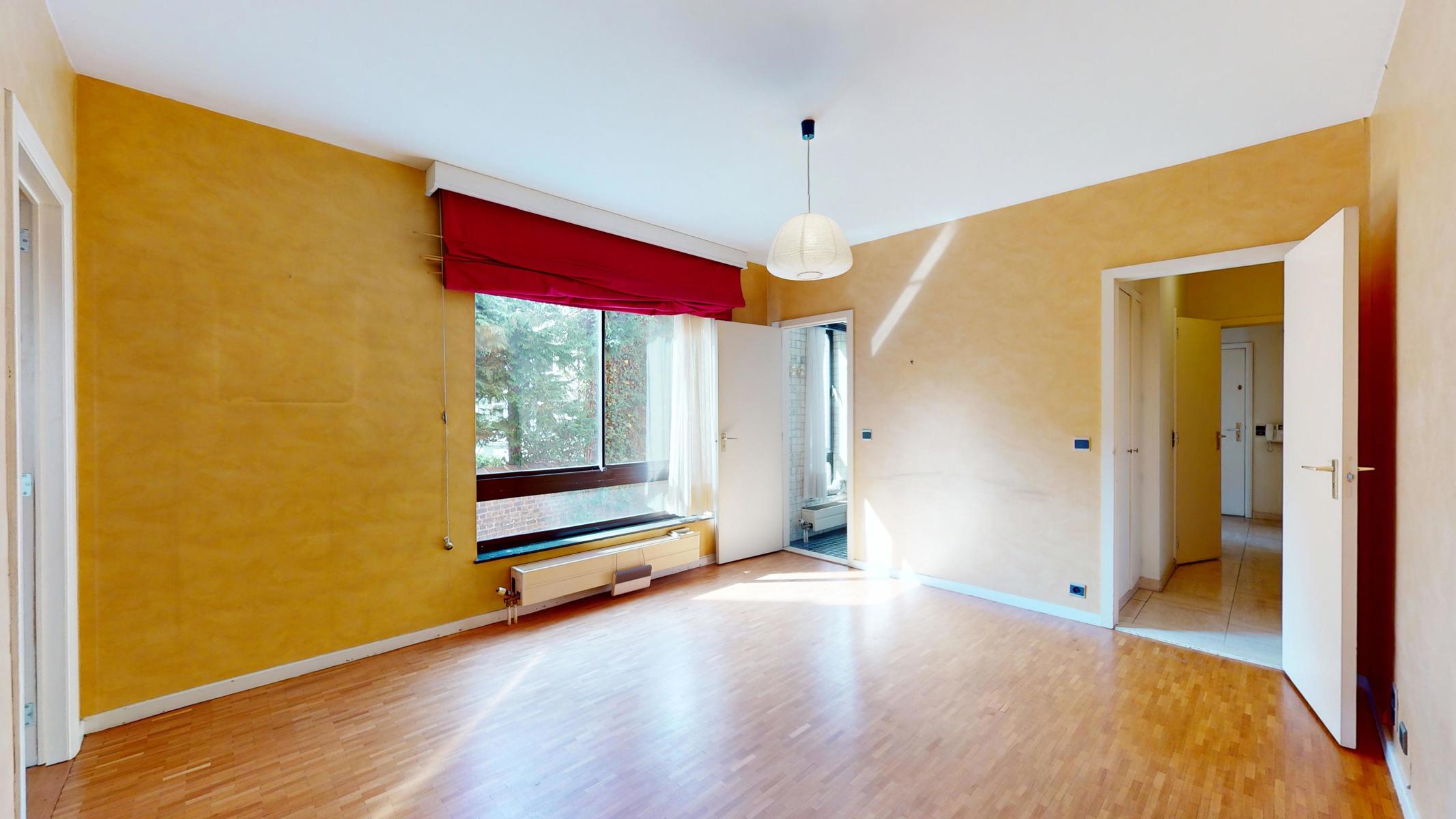Situé dans le quartier tranquille et résidentiel de Georges Henri et à 15 min à pied du parc du cinquantenaire, by the way vous propose ce bel appartement à rénover de 123m2 (Selon PEB). L’appartement est situé au 1er étage sur 4 avec ascenseurs dans un bâtiment bien entretenu de 1979. L’appartement se compose comme suit : Hall d’entrée, une cuisine séparée, un grand séjour/salle à manger de 40m2, un Wc séparé, une première chambre (+/- 15m2) avec sa salle de bain (+/- 3m2 ), une autre chambre communicante à la première mais avec aussi sa propre entrée (+/- 11m2), une deuxième salle de bain (+/- 3m2) et une troisième chambre de +/- 11m2 avec accès au balcon de +/-3m2. L’appartement est libre à l’acte. Box obligatoire dans l’immeuble en supplément (+35.000 euros). Technique : PEB D+, châssis en alu double vitrage, électricité non-conforme et chaudière commune. Charges +/- 360 euros par mois (charges communes, chauffage et eau)
