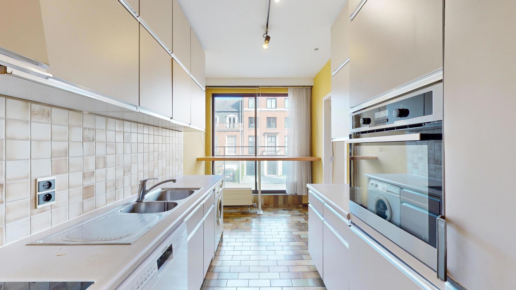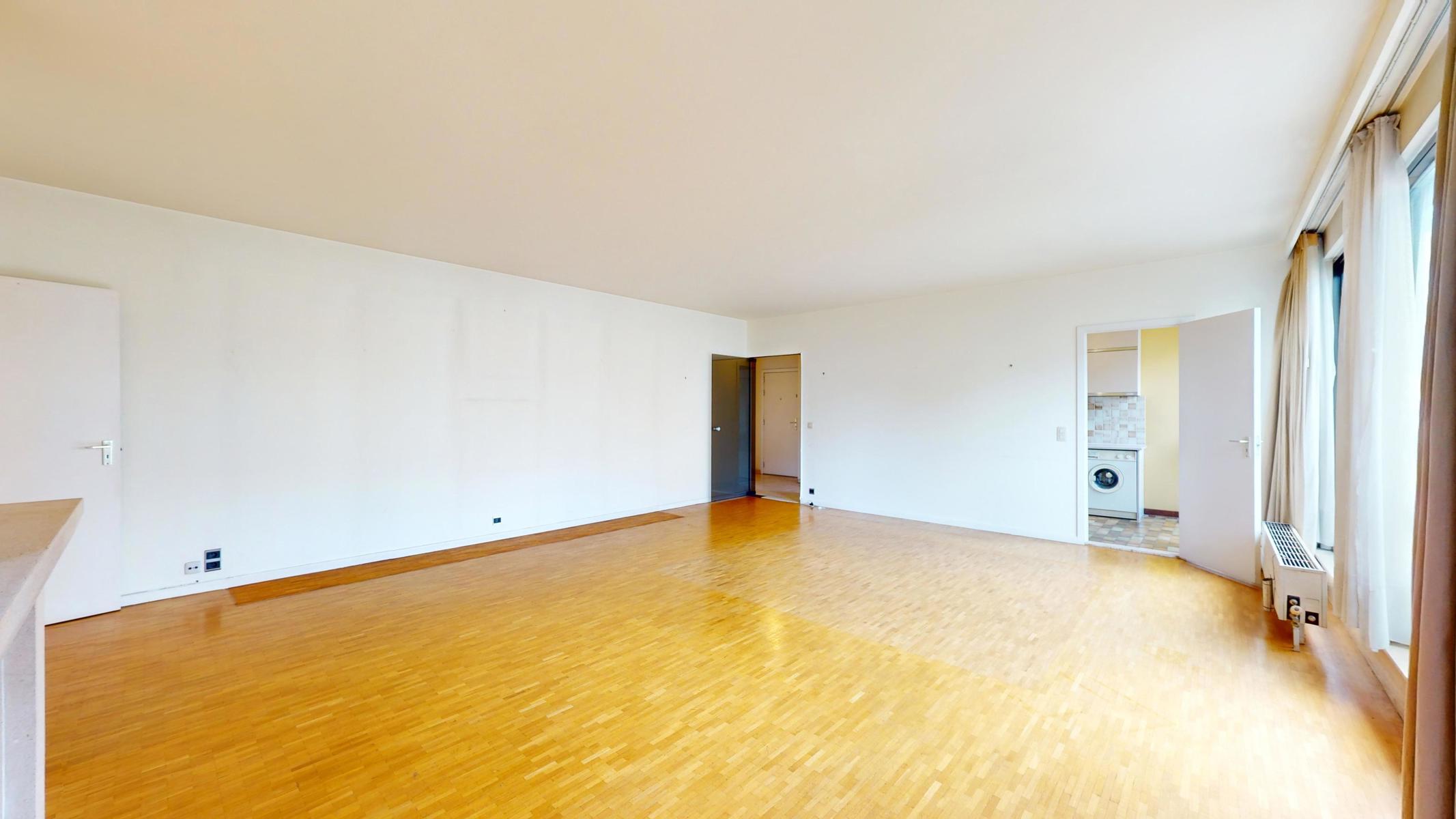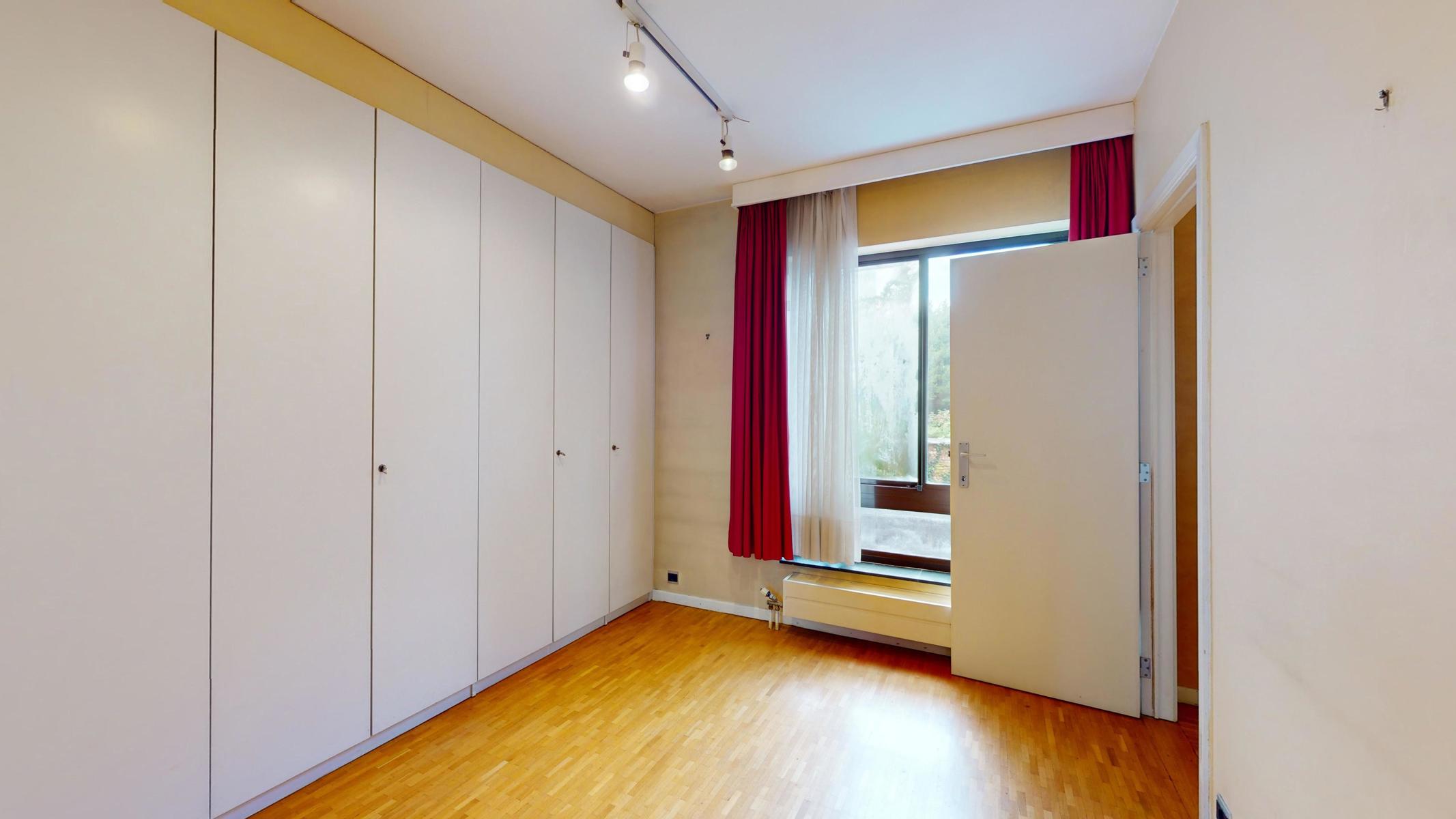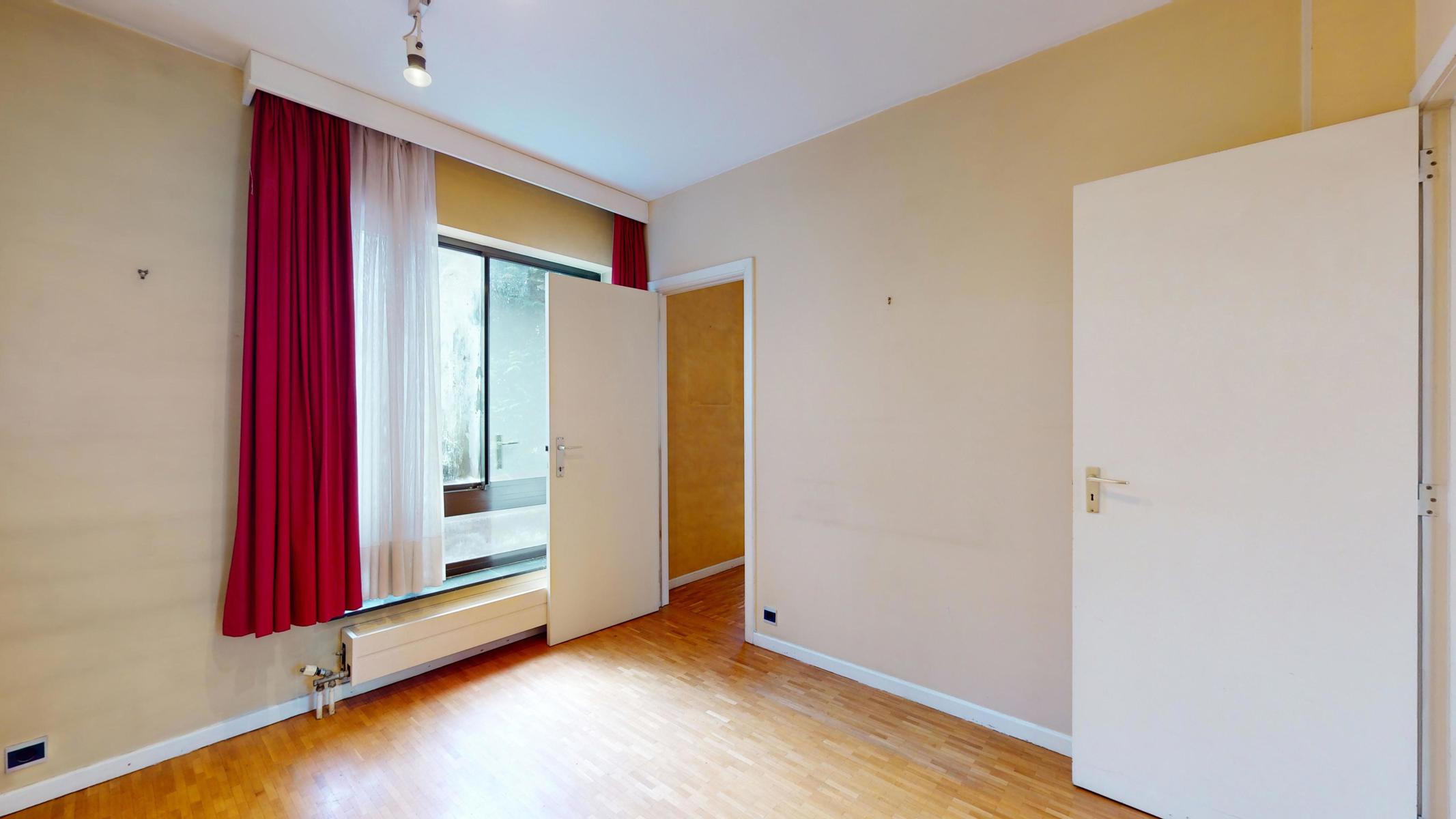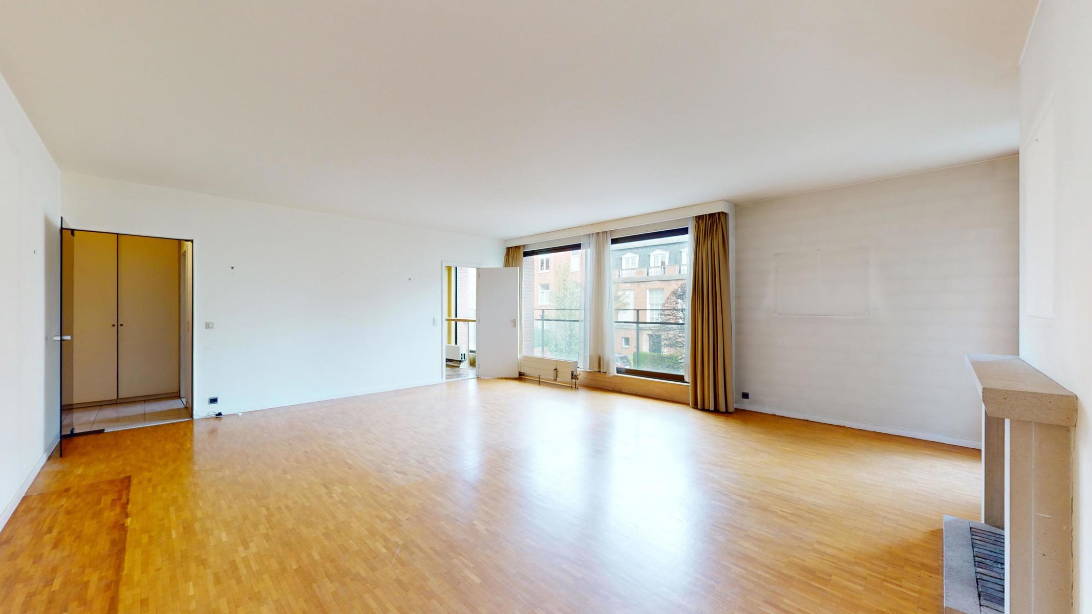 Situé dans le quartier tranquille et résidentiel de Georges Henri et à 15 min à pied du parc du cinquantenaire, by the way vous propose ce bel appartement à rénover de 123m2 (Selon PEB). L’appartement est situé au 1er étage sur 4 avec ascenseurs dans un bâtiment bien entretenu de 1979. L’appartement se compose comme suit : Hall d’entrée, une cuisine séparée, un grand séjour/salle à manger de 40m2, un Wc séparé, une première chambre (+/- 15m2) avec sa salle de bain (+/- 3m2 ), une autre chambre communicante à la première mais avec aussi sa propre entrée (+/- 11m2), une deuxième salle de bain (+/- 3m2) et une troisième chambre de +/- 11m2 avec accès au balcon de +/-3m2. L’appartement est libre à l’acte. Box obligatoire dans l’immeuble en supplément (+35.000 euros). Technique : PEB D+, châssis en alu double vitrage, électricité non-conforme et chaudière commune. Charges +/- 360 euros par mois (charges communes, chauffage et eau)