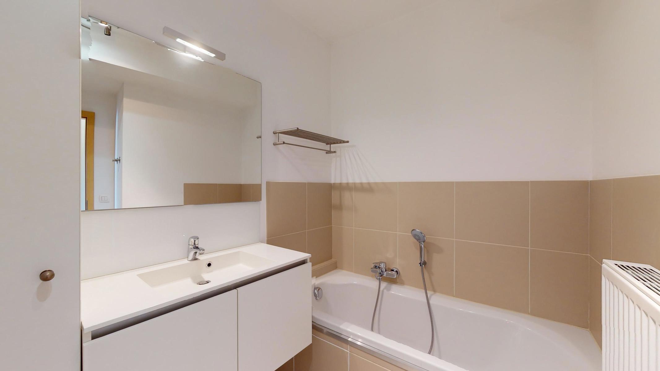 Suite n° 2 avec chambre de 12,20 m², garde-robe dans le couloir et salle de bain complète de 6,4 m² (baignoire + douche & toilette).