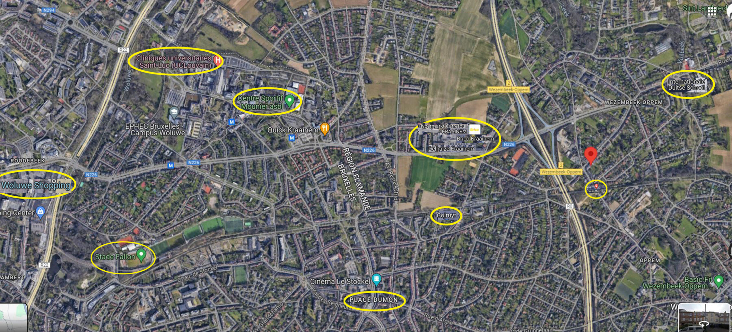 A 50m. du Hartcollege, à proximité de la Duitse School et d’autres écoles, de commerces et transports (tram 39 & bus 76), du Carrefour-Delhaize-Brico de Kraainem et du ring, à 7 min. en vélo de Stockel …