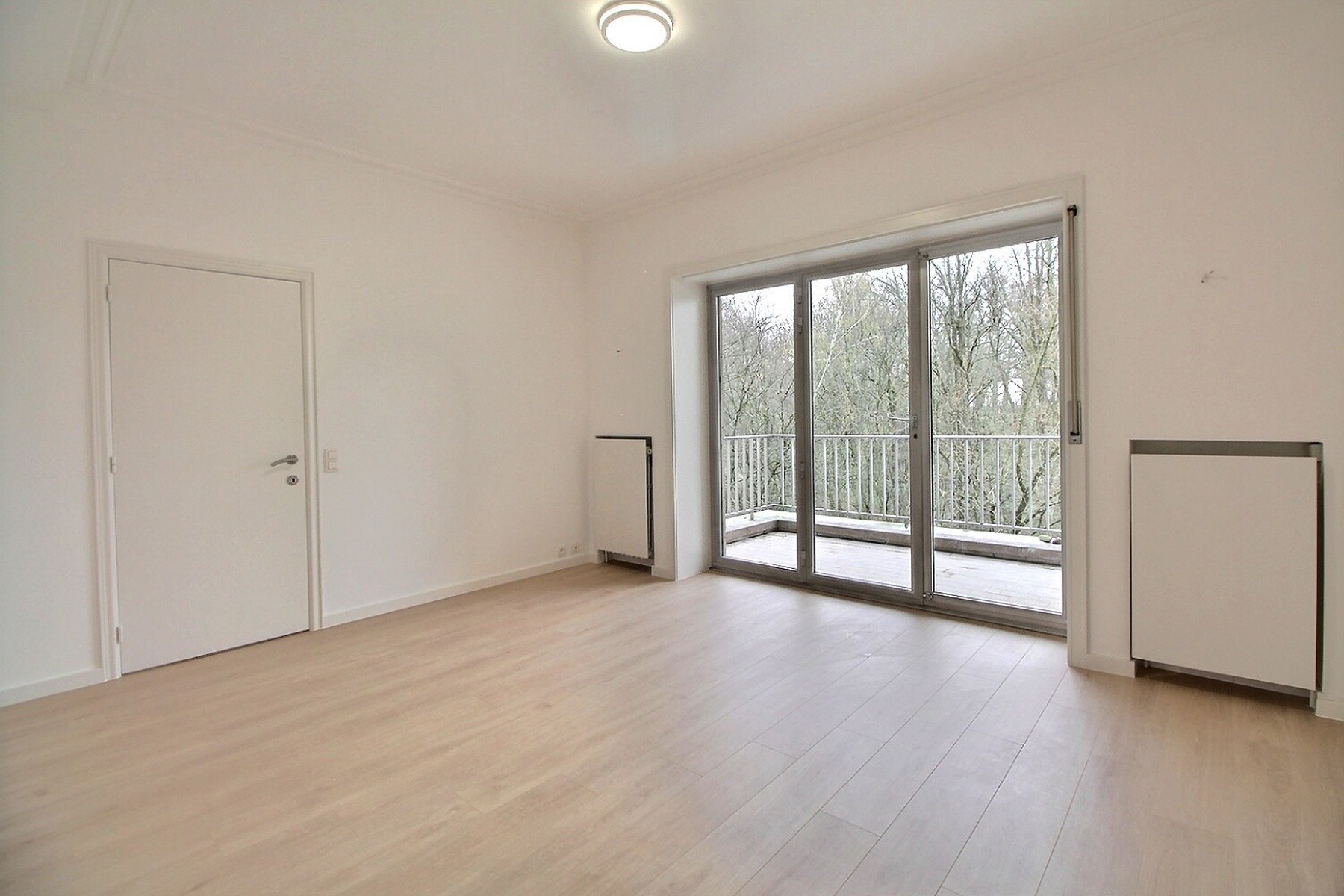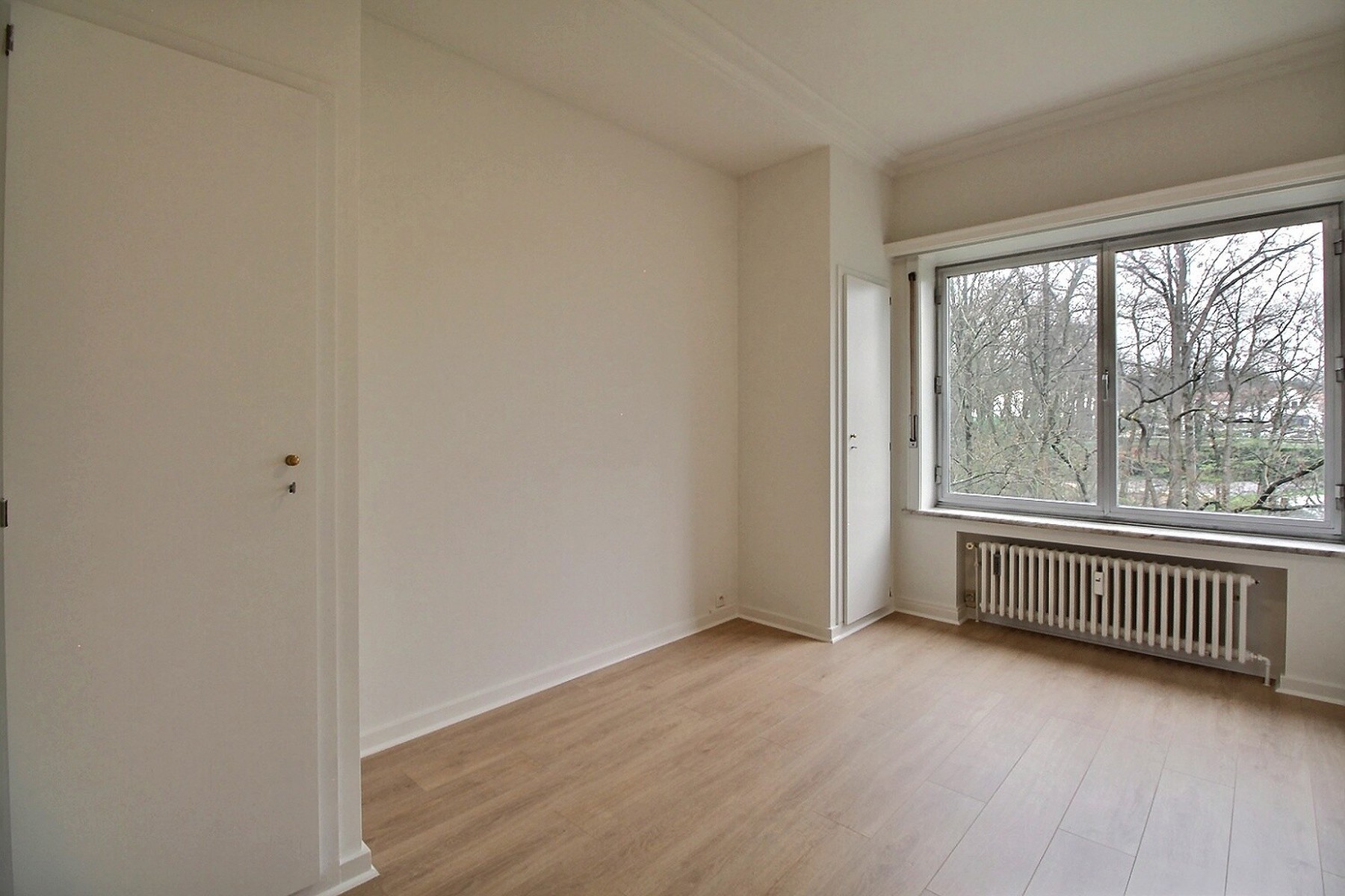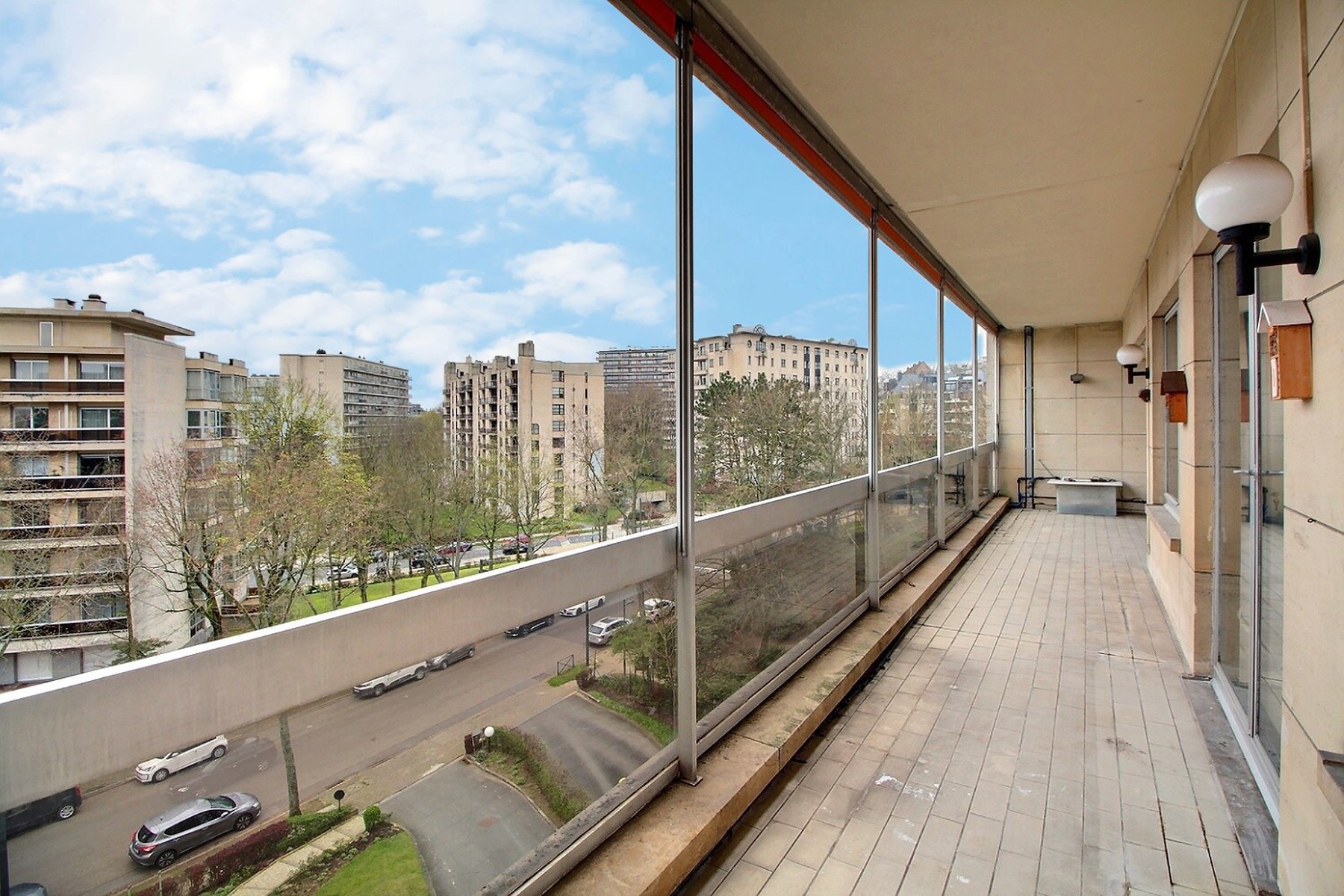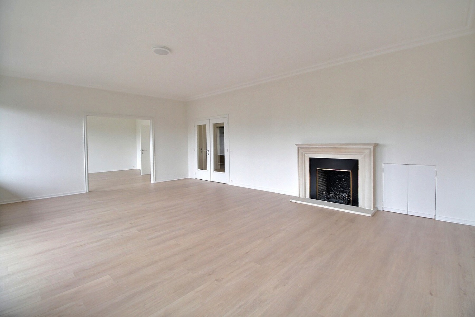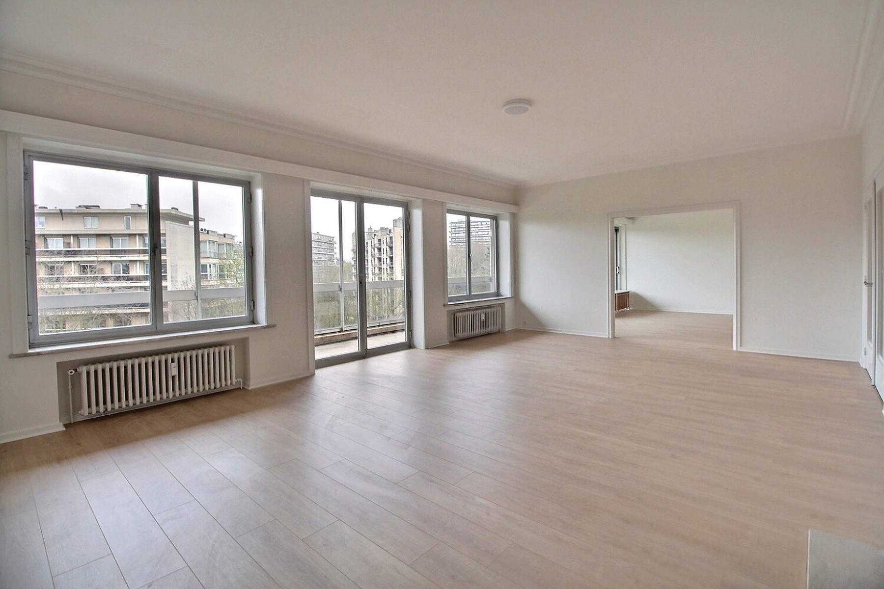 Au cœur du quartier Churchill à Uccle et à 2,5km du Châtelain, By The Way vous présente ce magnifique appartement entièrement rénové d’une superficie de +/- 173m2, situé au 4ème étage d’un immeuble de 6 étages. Vue sur le parc Brugmann depuis l’appartement. Il se compose comme suit : spacieux hall d’entrée; vestiaire; WC séparé; lumineux et spacieux séjour de +/- 36m2 (avec feu ouvert), avec salle à manger attenante, tous 2 pourvus de grandes baies vitrées, qui donnent accès à une belle terrasse de +/- 23m2, orientée à l’Ouest (idéal pour se détendre). Cuisine super-équipée de +/- 11m2 donnant sur un petit balcon, hall de nuit avec placards, salle de bain, WC séparé, deux chambres de +/- 11m2 et une suite parentale se composant d’un petit hall avec placards, une belle chambre de +/- 18m2 (avec sa propre terrasse et vue sur le parc Brugmann), une salle de douche et un WC séparé. Cave inclue dans le prix. Un garage fermé et une place de parking (intérieure), sont disponibles (100€/mois pour les 2). Châssis double vitrage. Parquet au sol dans le séjour et les chambres. Chaudière collective au gaz. PEB : C-. Provisions de 120 euros/mois pour les charges communes (entretien, concierge, ascenseur, jardinier, …) + provisions de 80€/mois pour les consommations privatives (eau & gaz). Disponible immédiatement. Cet appartement bénéficie d’un emplacement privilégié est à découvrir sans tarder ! Infos & Visites, contactez Sophie : 0472 94 83 29 – sophie@bytheway.be