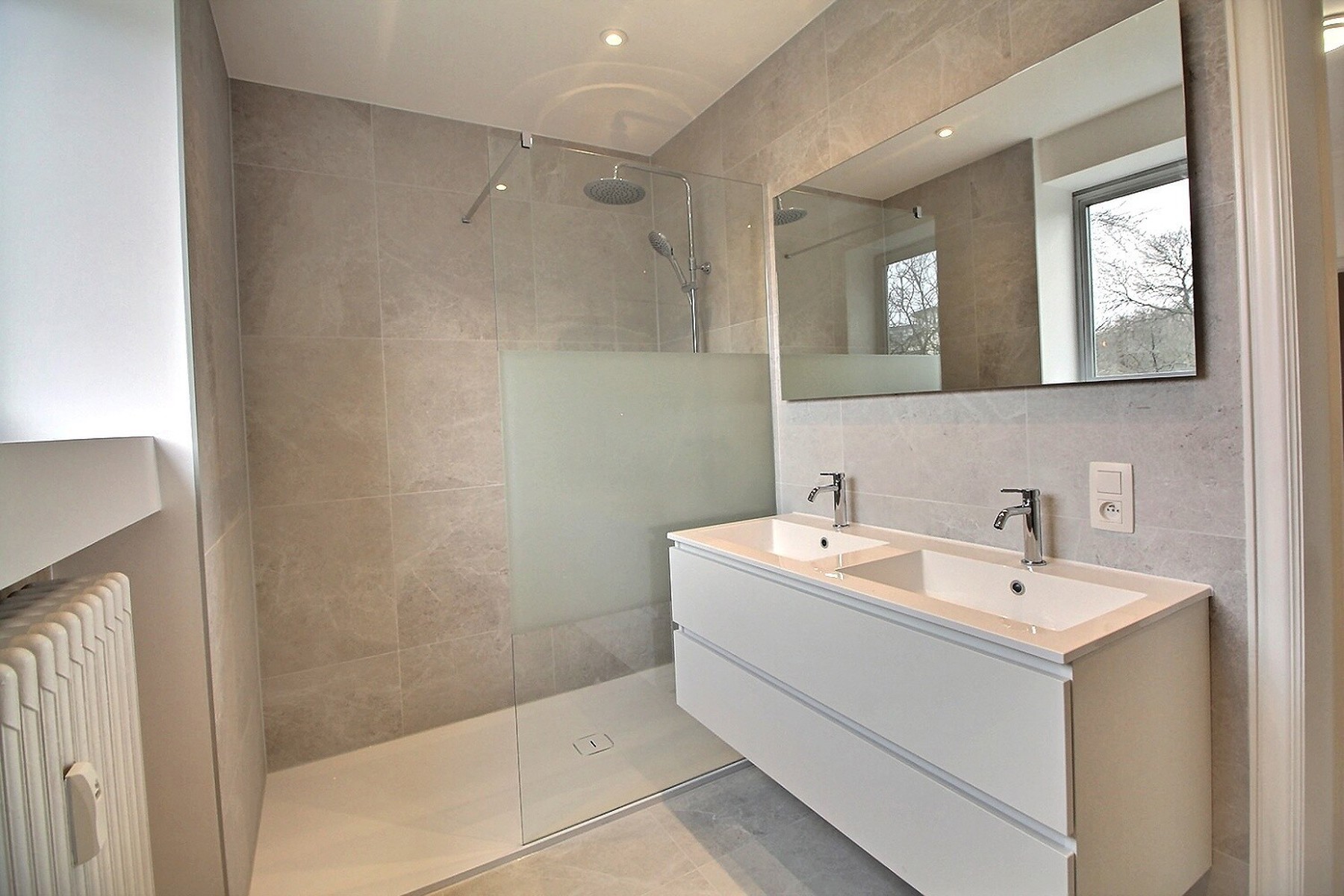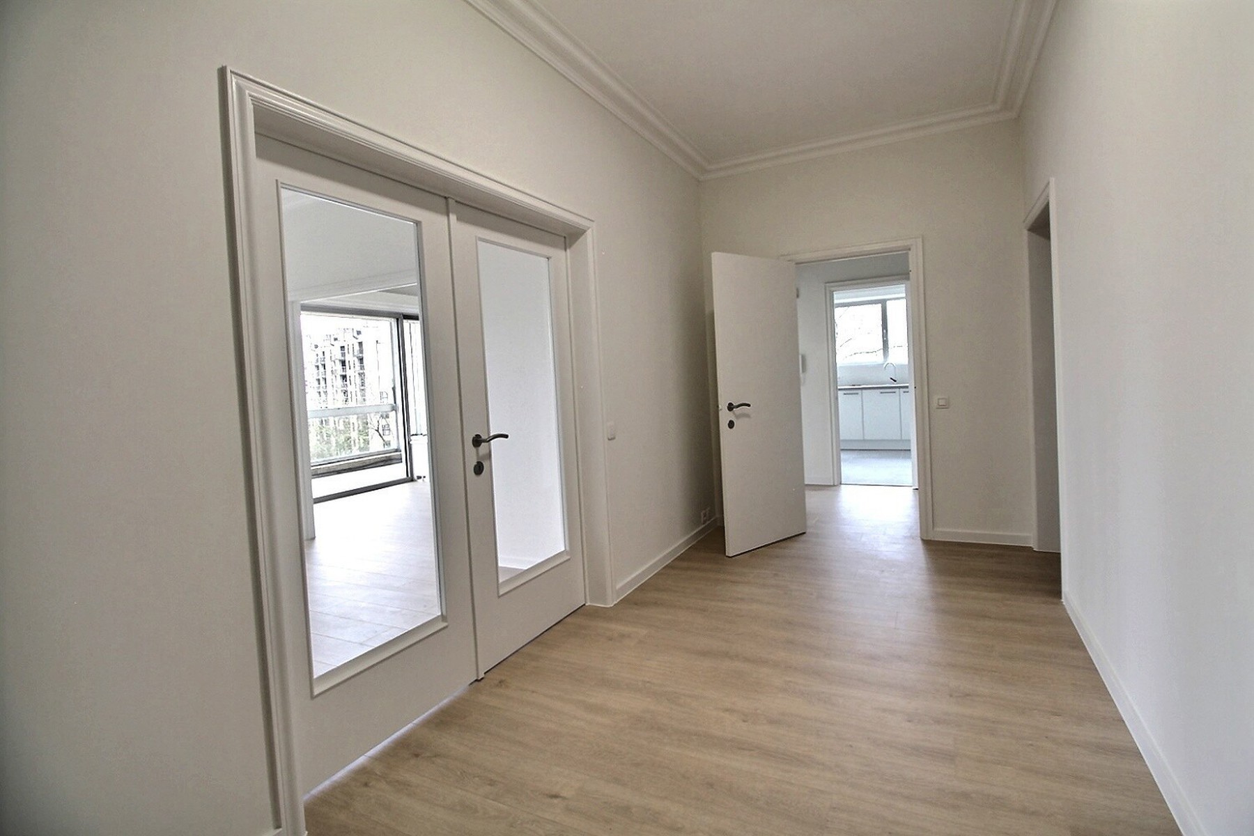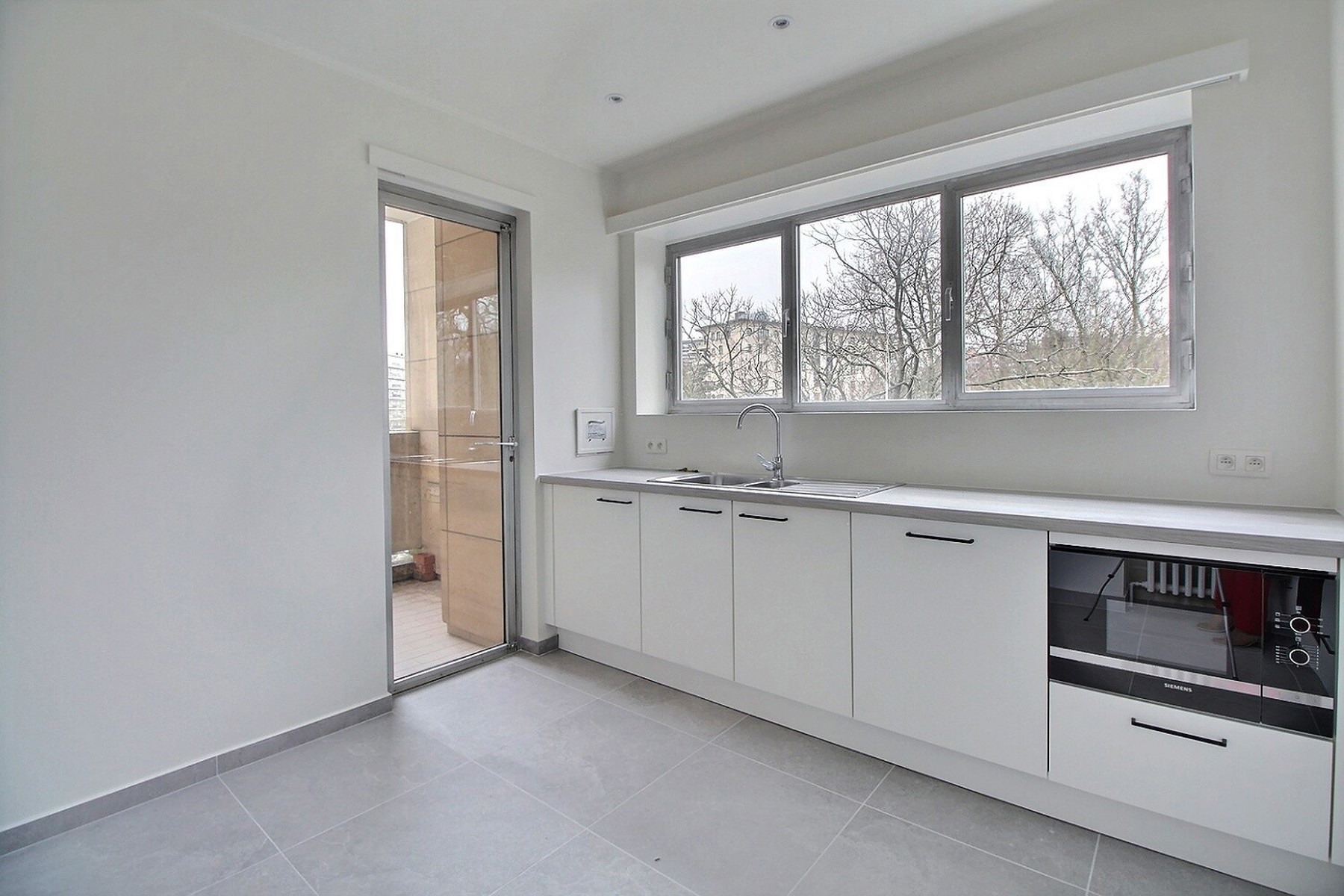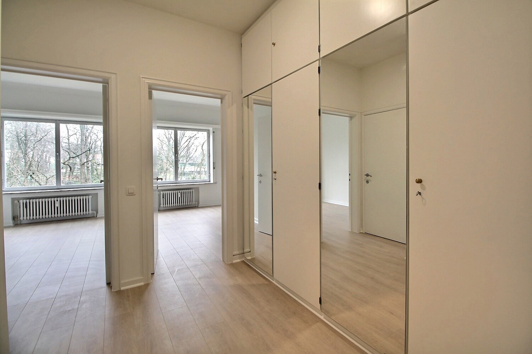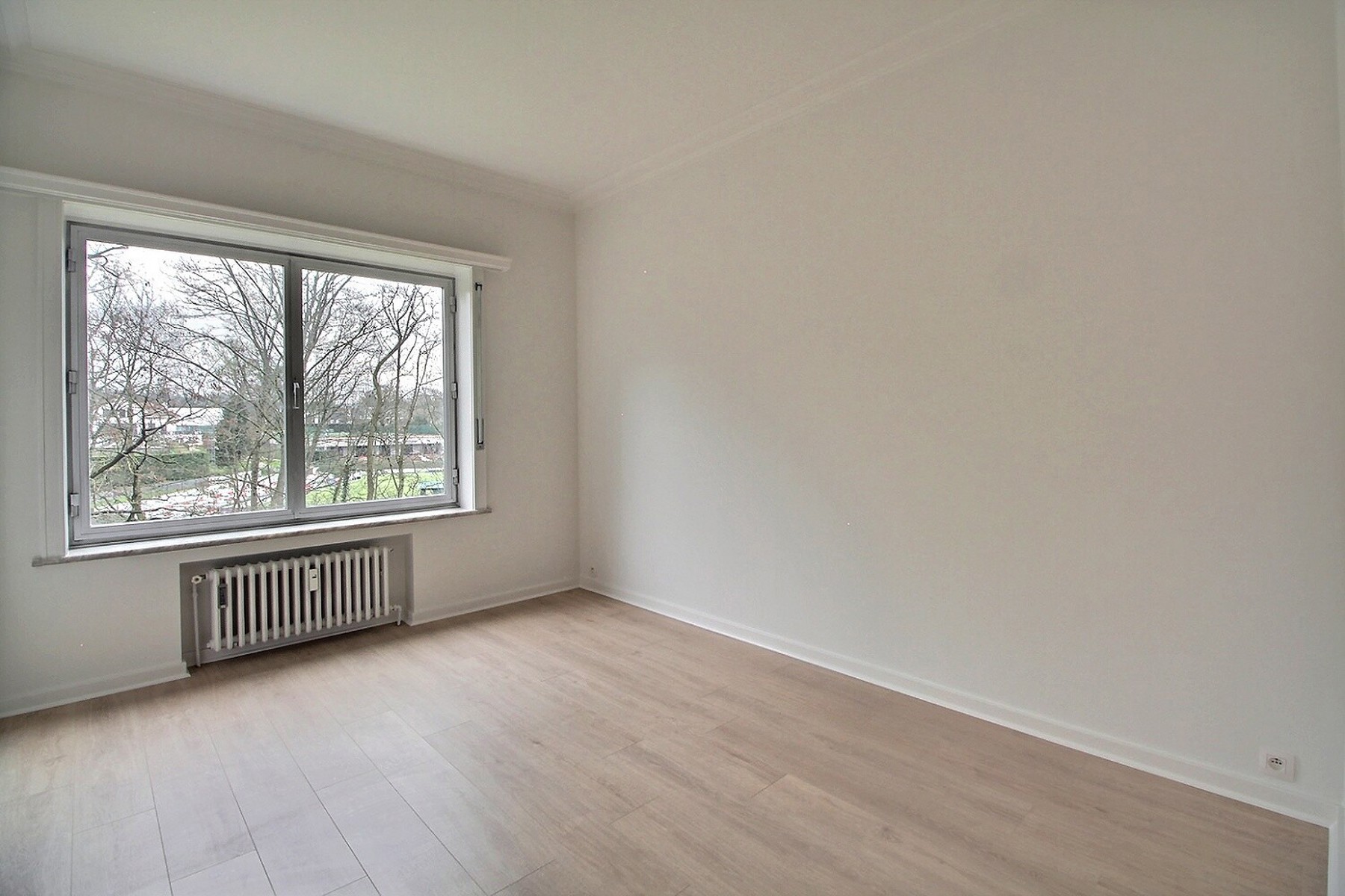 Au cœur du quartier Churchill à Uccle et à 2,5km du Châtelain, By The Way vous présente ce magnifique appartement entièrement rénové d’une superficie de +/- 173m2, situé au 4ème étage d’un immeuble de 6 étages. Vue sur le parc Brugmann depuis l’appartement. Il se compose comme suit : spacieux hall d’entrée; vestiaire; WC séparé; lumineux et spacieux séjour de +/- 36m2 (avec feu ouvert), avec salle à manger attenante, tous 2 pourvus de grandes baies vitrées, qui donnent accès à une belle terrasse de +/- 23m2, orientée à l’Ouest (idéal pour se détendre). Cuisine super-équipée de +/- 11m2 donnant sur un petit balcon, hall de nuit avec placards, salle de bain, WC séparé, deux chambres de +/- 11m2 et une suite parentale se composant d’un petit hall avec placards, une belle chambre de +/- 18m2 (avec sa propre terrasse et vue sur le parc Brugmann), une salle de douche et un WC séparé. Cave inclue dans le prix. Un garage fermé et une place de parking (intérieure), sont disponibles (100€/mois pour les 2). Châssis double vitrage. Parquet au sol dans le séjour et les chambres. Chaudière collective au gaz. PEB : C-. Provisions de 120 euros/mois pour les charges communes (entretien, concierge, ascenseur, jardinier, …) + provisions de 80€/mois pour les consommations privatives (eau & gaz). Disponible immédiatement. Cet appartement bénéficie d’un emplacement privilégié est à découvrir sans tarder ! Infos & Visites, contactez Sophie : 0472 94 83 29 – sophie@bytheway.be