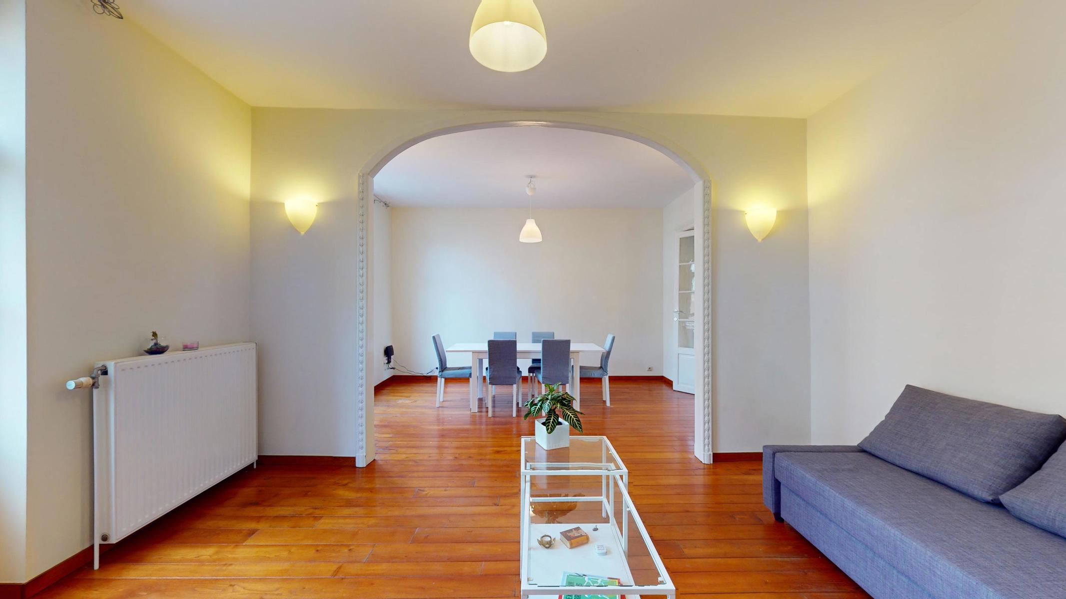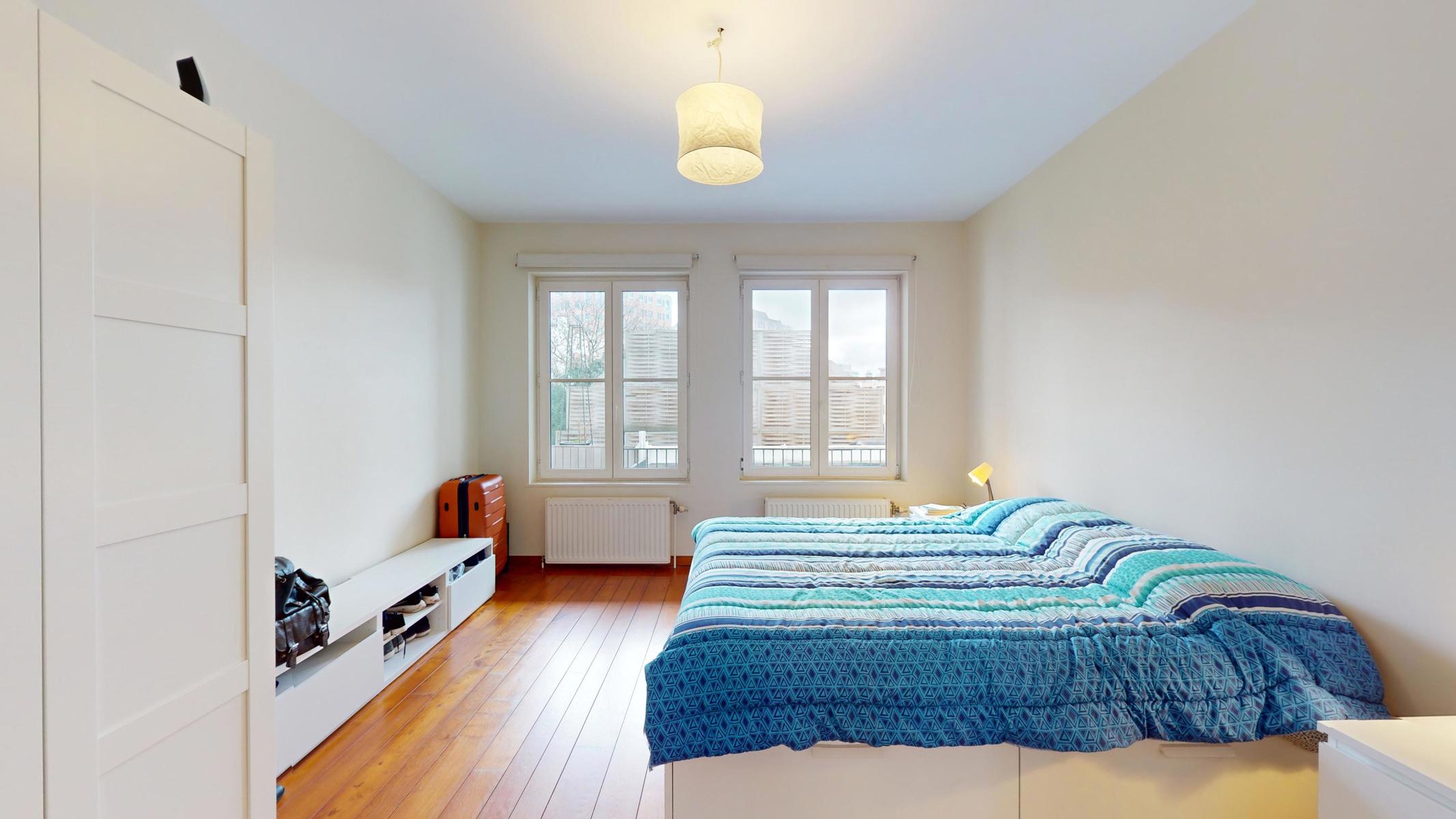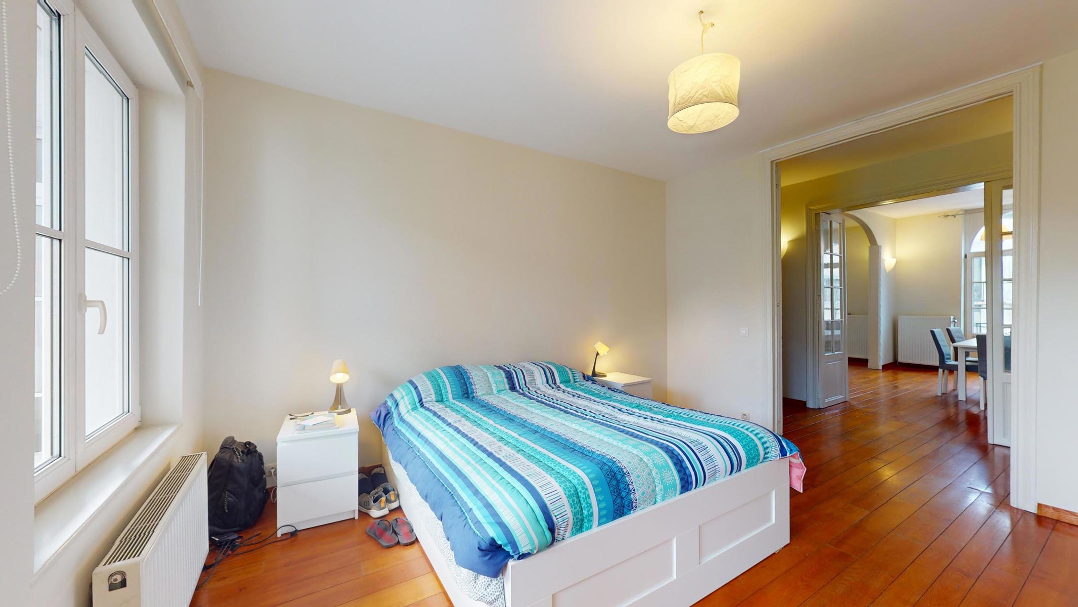 Dans le quartier CEE, à deux pas du Parc du Cinquantenaire (métro Mérode), proche des commerces, transport en commun et écoles, By the Way vous présente ce charmant appartement de +/- 118 m2 (selon PEB) situé au 2ème étage d’un petit immeuble de 4 étages (sans ascenseur). Il se compose comme suit : Hall d’entrée, hall de nuit, salon/salle à manger de +/- 31m2, cuisine full équipée de +/- 9m2 donnant à l’arrière avec accès à la terrasse, 1 grande chambre centrale de +/- 17m2 donnant à l’arrière avec vue sur la terrasse, 1 chambre de +/- 16m2 donnant à l’avant, 1 chambre de +/- 9m2 donnant à l’arrière avec vue sur la terrasse, 1 salle de bain avec baignoire, double lavabos avec un espace pour machine à laver et sèche-linge. WC séparé. Belle grande terrasse privative en partie couverte ouverte de +/- 21m2 orientée au Sud-Est. Chauffage central individuel au gaz avec thermostat. Compteurs individuels : électricité et gaz. Parquet au sol. Châssis double vitrage. Parlophone. Cave en sous-sol. Possibilité emplacements vélos. PEB : D. Electricité conforme. Actuellement loué 1560 euros/mois. Charges communes: 100 euros/mois comprenant : Electricité des communs, nettoyage et entretiens divers, provision forfaitaire pour la consommation d’eau privative). Toutes les infos via le lien suivant : https://biens.bytheway.immo/celtes-14-2/