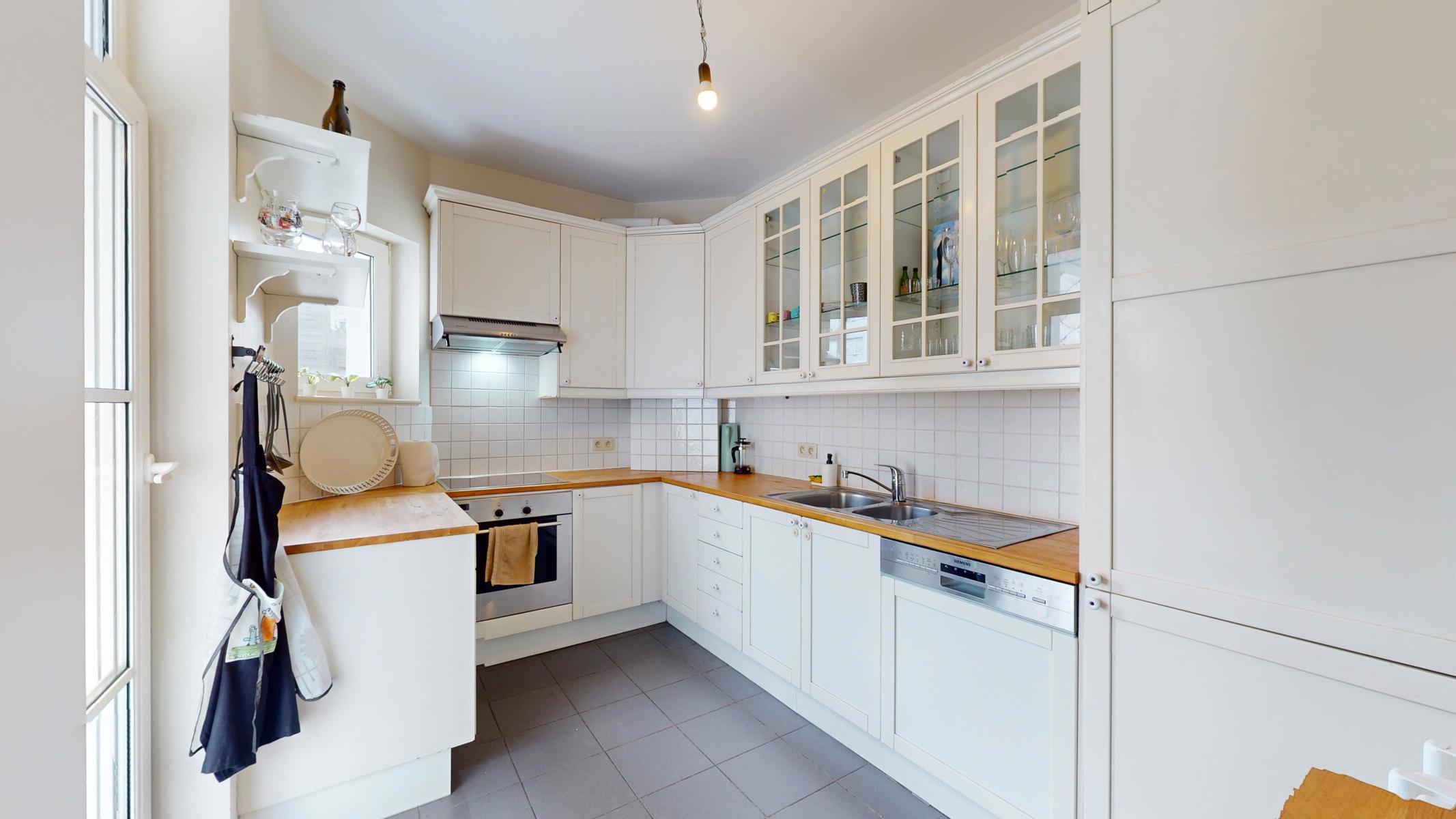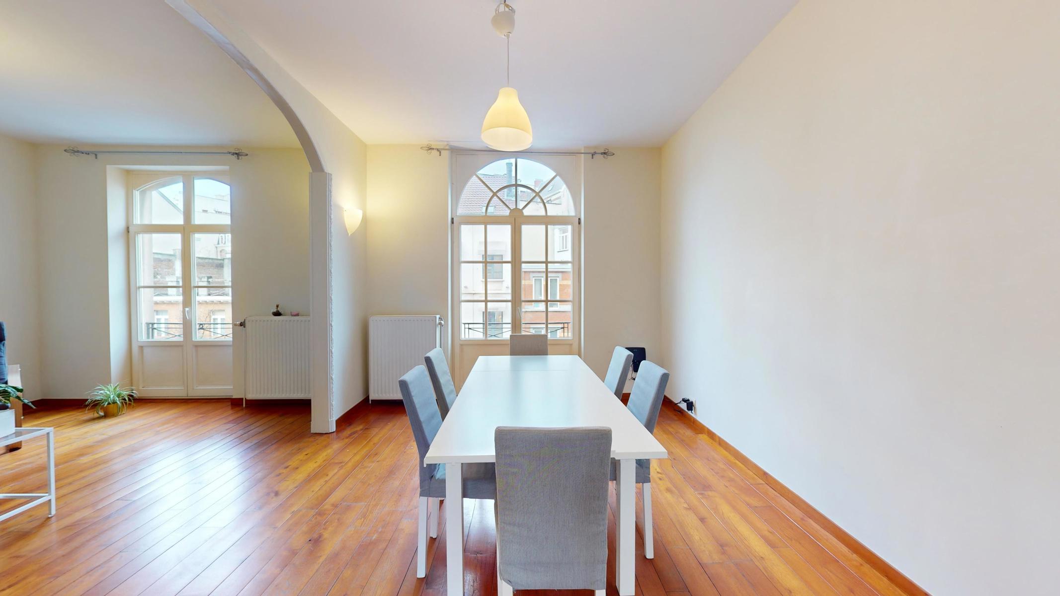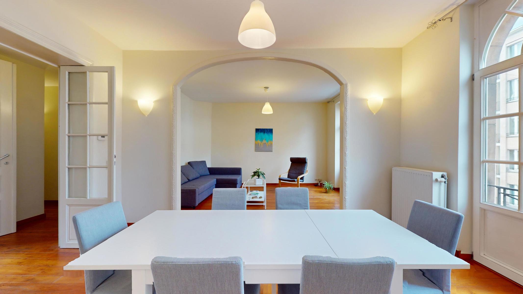 Dans le quartier CEE, à deux pas du Parc du Cinquantenaire (métro Mérode), proche des commerces, transport en commun et écoles, By the Way vous présente ce charmant appartement de +/- 118 m2 (selon PEB) situé au 2ème étage d’un petit immeuble de 4 étages (sans ascenseur). Il se compose comme suit : Hall d’entrée, hall de nuit, salon/salle à manger de +/- 31m2, cuisine full équipée de +/- 9m2 donnant à l’arrière avec accès à la terrasse, 1 grande chambre centrale de +/- 17m2 donnant à l’arrière avec vue sur la terrasse, 1 chambre de +/- 16m2 donnant à l’avant, 1 chambre de +/- 9m2 donnant à l’arrière avec vue sur la terrasse, 1 salle de bain avec baignoire, double lavabos avec un espace pour machine à laver et sèche-linge. WC séparé. Belle grande terrasse privative en partie couverte ouverte de +/- 21m2 orientée au Sud-Est. Chauffage central individuel au gaz avec thermostat. Compteurs individuels : électricité et gaz. Parquet au sol. Châssis double vitrage. Parlophone. Cave en sous-sol. Possibilité emplacements vélos. PEB : D. Electricité conforme. Actuellement loué 1560 euros/mois. Charges communes: 100 euros/mois comprenant : Electricité des communs, nettoyage et entretiens divers, provision forfaitaire pour la consommation d’eau privative). Toutes les infos via le lien suivant : https://biens.bytheway.immo/celtes-14-2/
