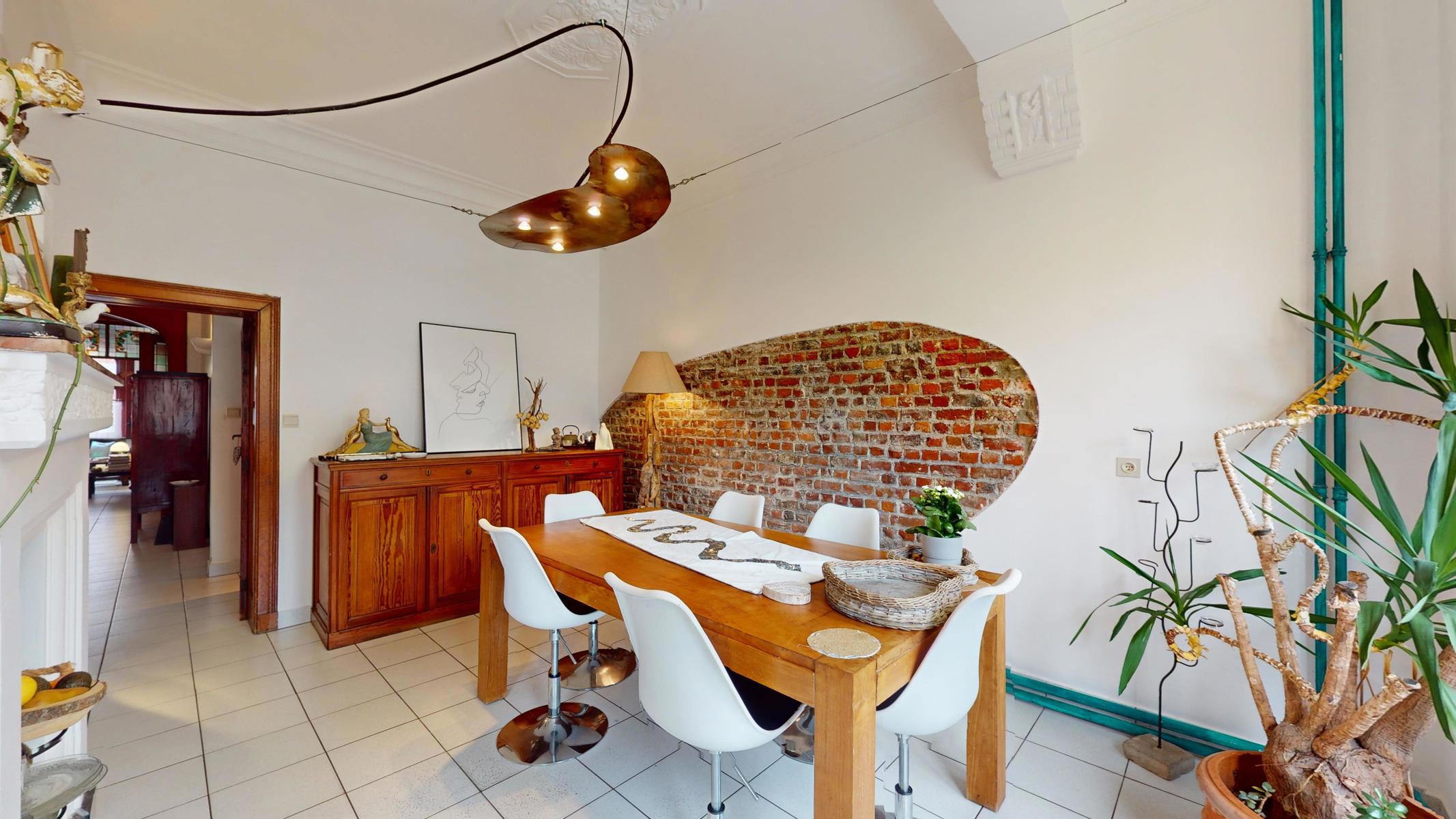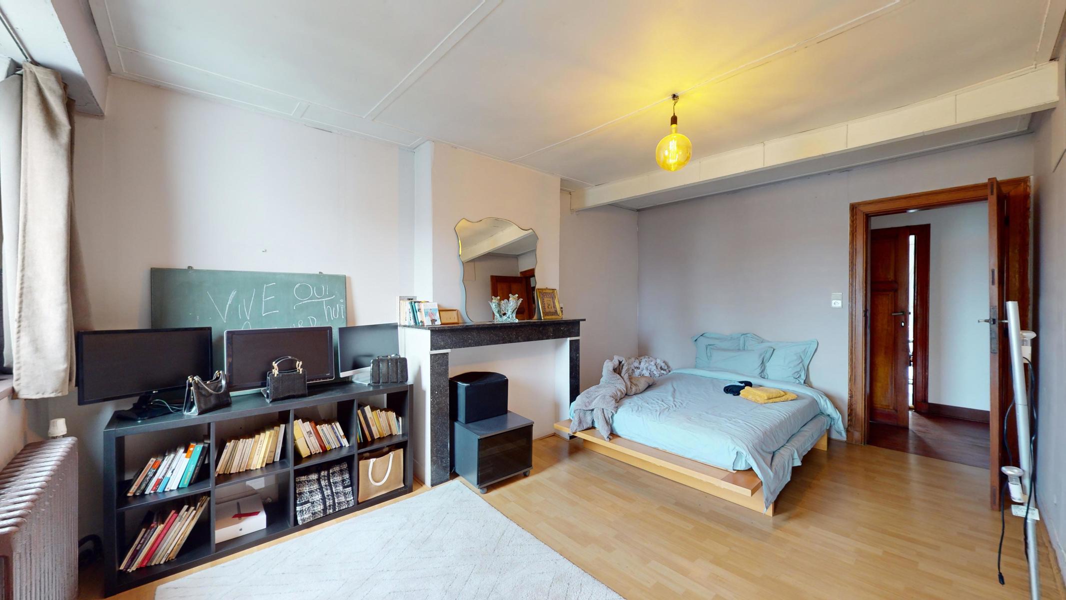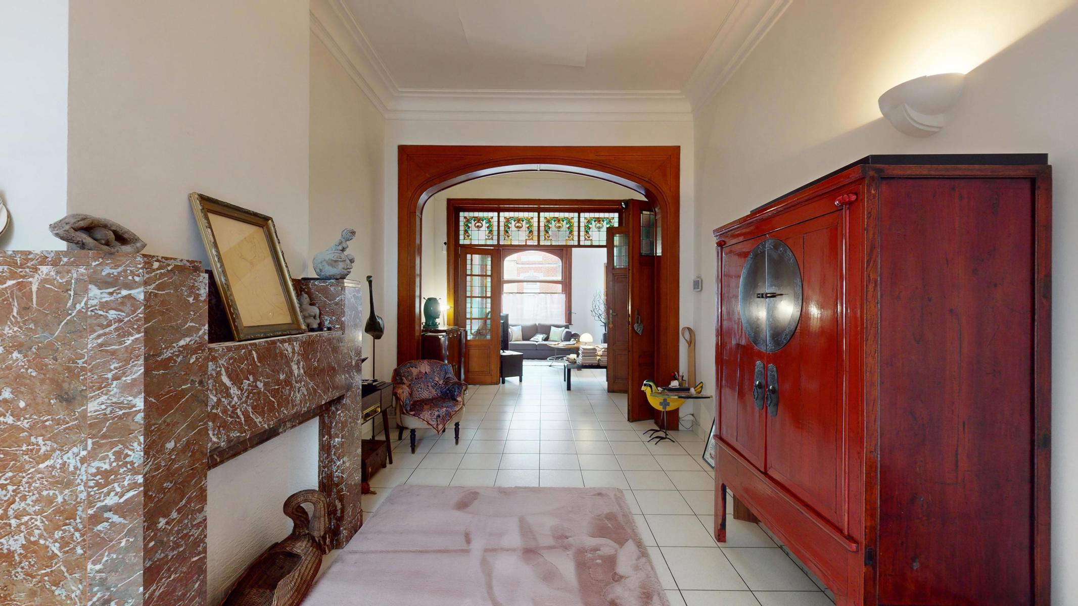 En attente du compromis // By the Way vous propose une Maison de maître avec beaucoup de caractère et baignant dans une atmosphère authentique grâce à ses hauts plafonds, vitraux et moulures. Répartition des pièces: Cave (43m²) – Rez-de-chaussée (100m²): Hall d’entrée (2,5m²), couloir (14,5m²) avec escalier vers les étages et toilettes sous l’escalier, séjour (40m²) divisé en 2 pièces, cuisine (14m²) équipée, salle à manger (18,5m²) et remise (6m²), jardin (120m²) et terrasse (30m²) orientés Nord-Est – 1er étage (85m²): couloir (12,5m²), salle de bains (26m²), bureau (24m²), chambre (16m²) et une remise (anciennement une salle de douche) – 2ème étage (64m²): couloir (12m²), chambres (19m²/12,5m²/12m²), salle de douche (6m²) et accès au grenier avec un escalier fixe – Grenier aménageable de 33m². Précompte Immobilier: 1812,13€. PEB: G. Maison avec beaucoup de potentiel. Possibilité de faire 6-7 chambres. La chaudière est au gaz. Châssis en bois, double vitrage partout. Situation idéale à proximité des transports en commun, magasins et écoles. Ring de Bruxelles à 1,7 km. Cette maison est idéale pour tout le monde