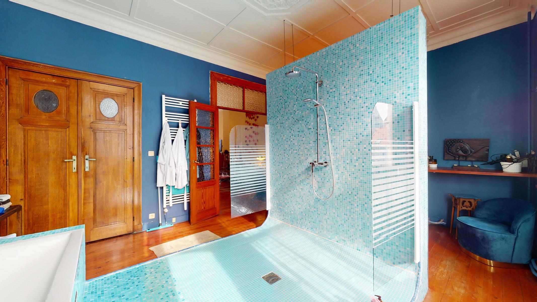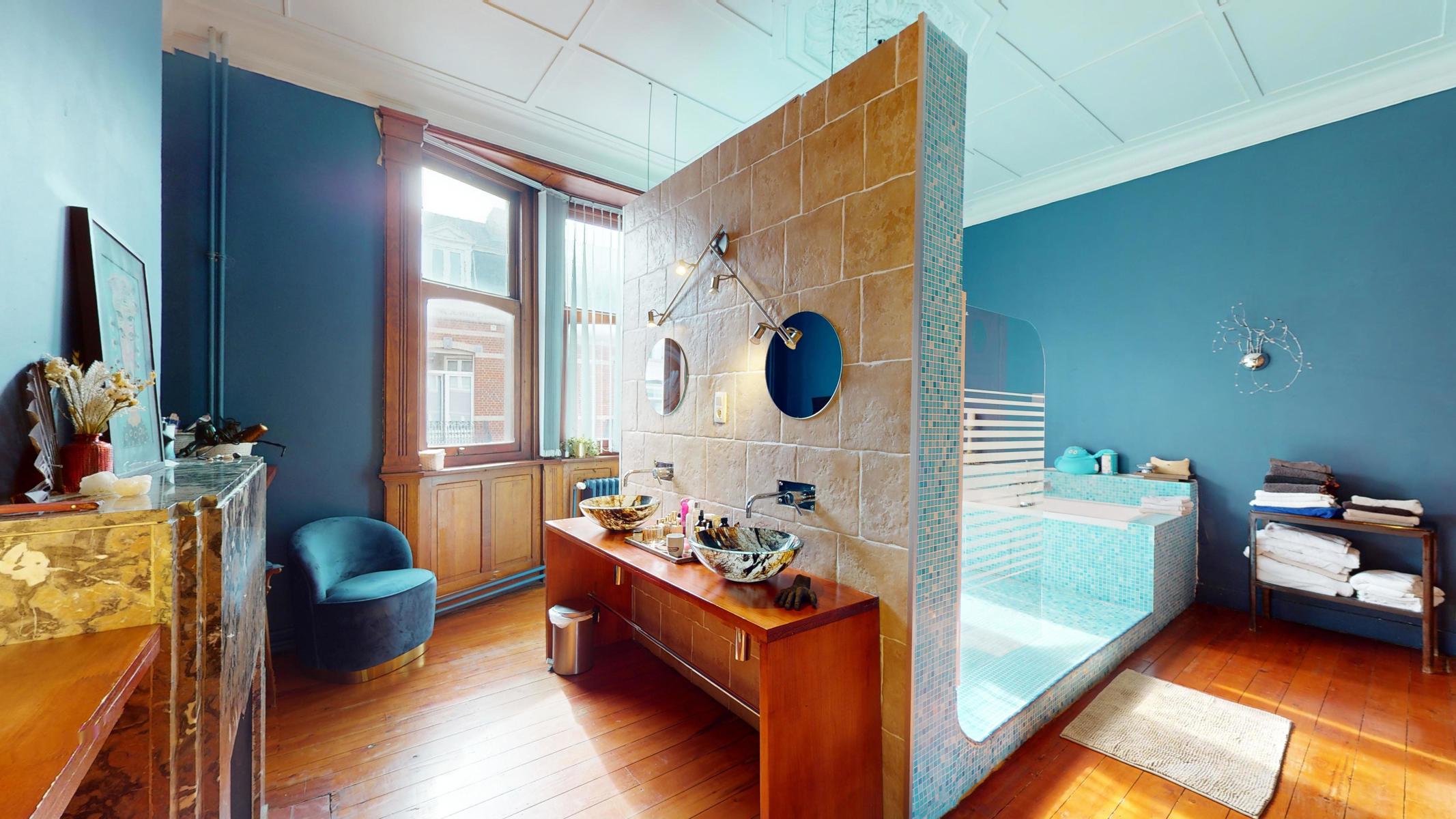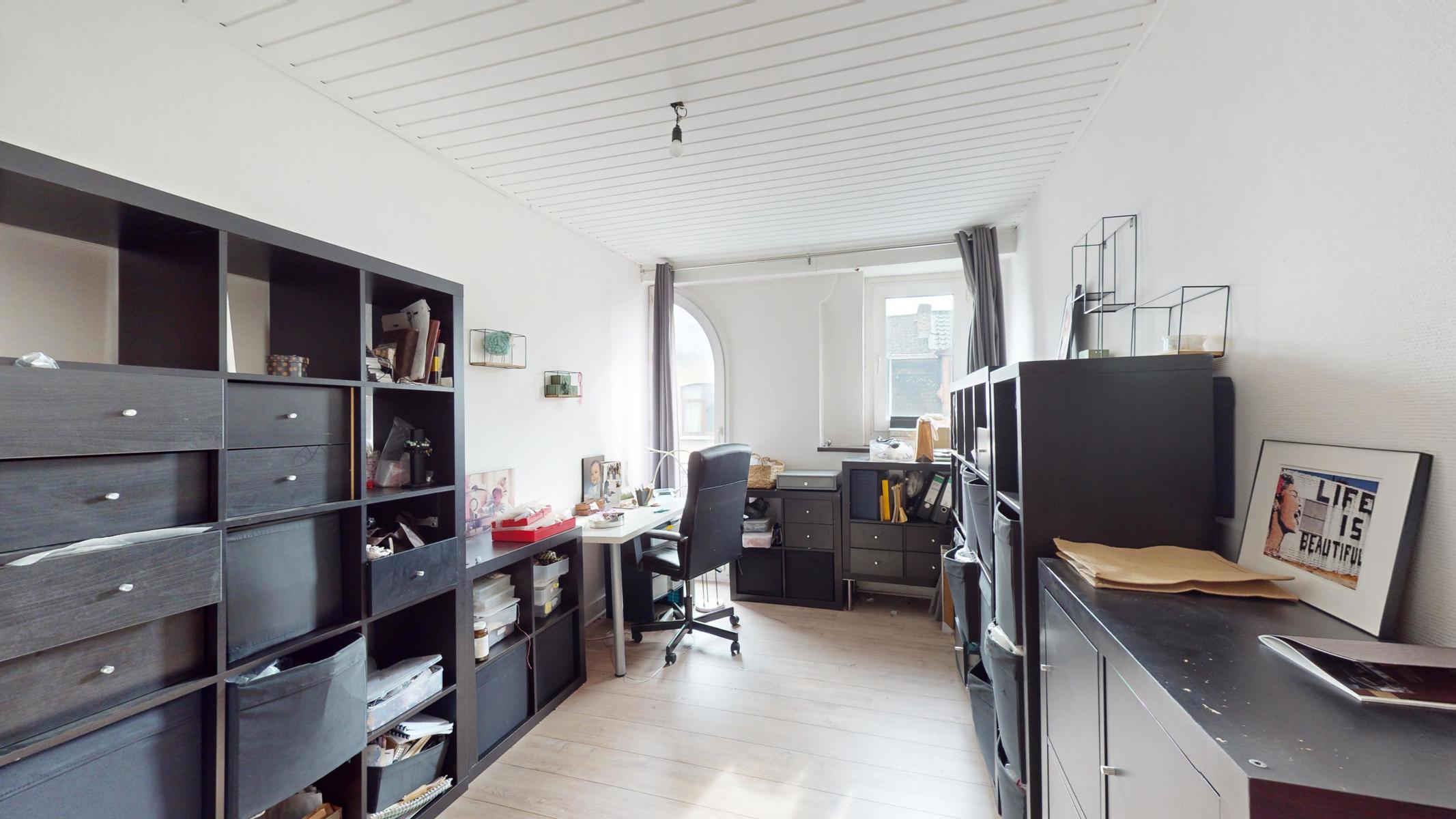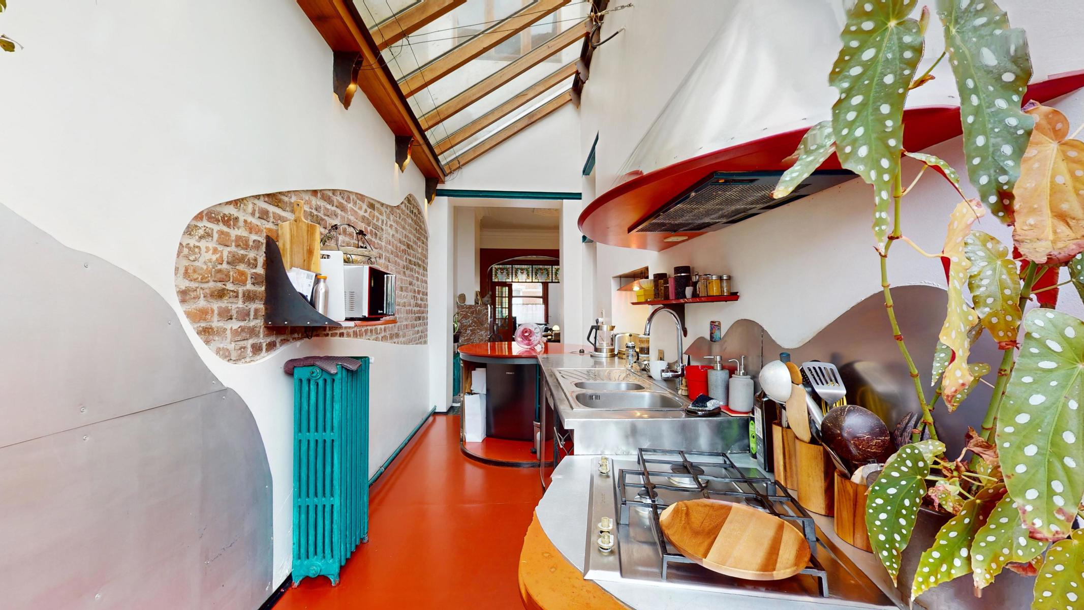 En attente du compromis // By the Way vous propose une Maison de maître avec beaucoup de caractère et baignant dans une atmosphère authentique grâce à ses hauts plafonds, vitraux et moulures. Répartition des pièces: Cave (43m²) – Rez-de-chaussée (100m²): Hall d’entrée (2,5m²), couloir (14,5m²) avec escalier vers les étages et toilettes sous l’escalier, séjour (40m²) divisé en 2 pièces, cuisine (14m²) équipée, salle à manger (18,5m²) et remise (6m²), jardin (120m²) et terrasse (30m²) orientés Nord-Est – 1er étage (85m²): couloir (12,5m²), salle de bains (26m²), bureau (24m²), chambre (16m²) et une remise (anciennement une salle de douche) – 2ème étage (64m²): couloir (12m²), chambres (19m²/12,5m²/12m²), salle de douche (6m²) et accès au grenier avec un escalier fixe – Grenier aménageable de 33m². Précompte Immobilier: 1812,13€. PEB: G. Maison avec beaucoup de potentiel. Possibilité de faire 6-7 chambres. La chaudière est au gaz. Châssis en bois, double vitrage partout. Situation idéale à proximité des transports en commun, magasins et écoles. Ring de Bruxelles à 1,7 km. Cette maison est idéale pour tout le monde