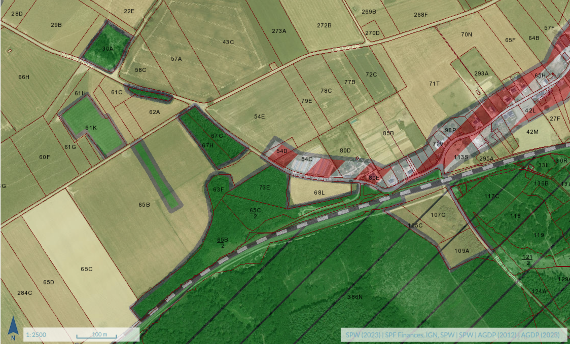 Ce terrain d’une superficie totale de 2400 m² (dont +-1800m2 constructibles) présente une généreuse façade de +- 34 mètres et une profondeur dépassant les 80 mètres. Son affectation en zone d’habitat à caractère rural permet la construction de tout type de résidence (projet à soumettre auprès des services de l’urbanisme de la ville de Ciney). La voirie est déjà équipée en eau et électricité, pas de gaz ni d’égouttage (mini station d’épuration à prévoir en partie privative). Saisissez cette opportunité exceptionnelle pour créer votre havre de paix dans un cadre naturel d’exception, tout en restant proche des commodités de la ville.