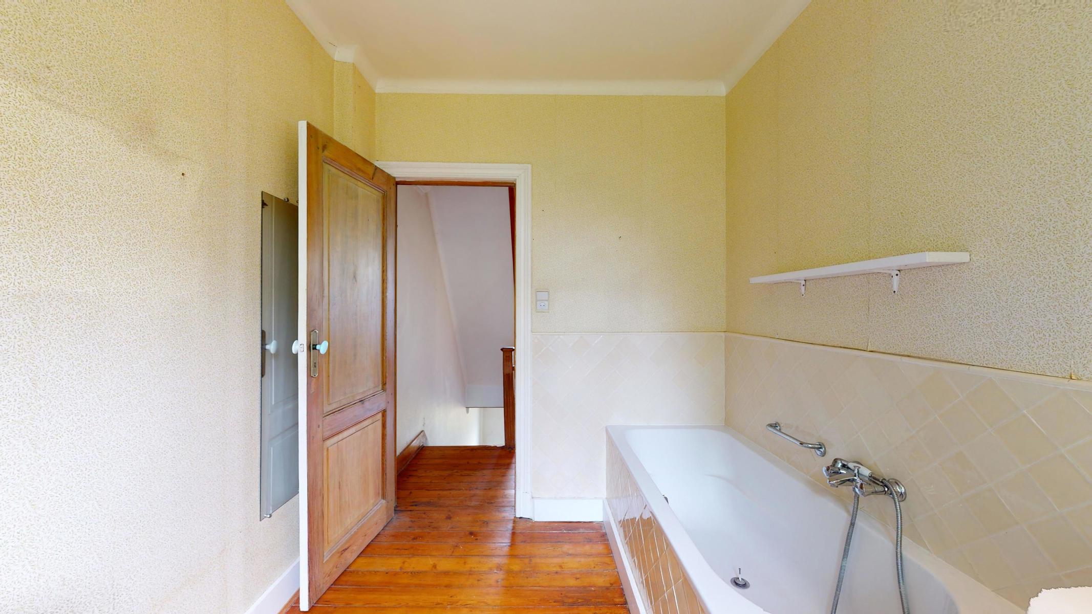 À l’étage supérieur, le hall de nuit distribue deux chambres spacieuses et une salle de bain avec WC.