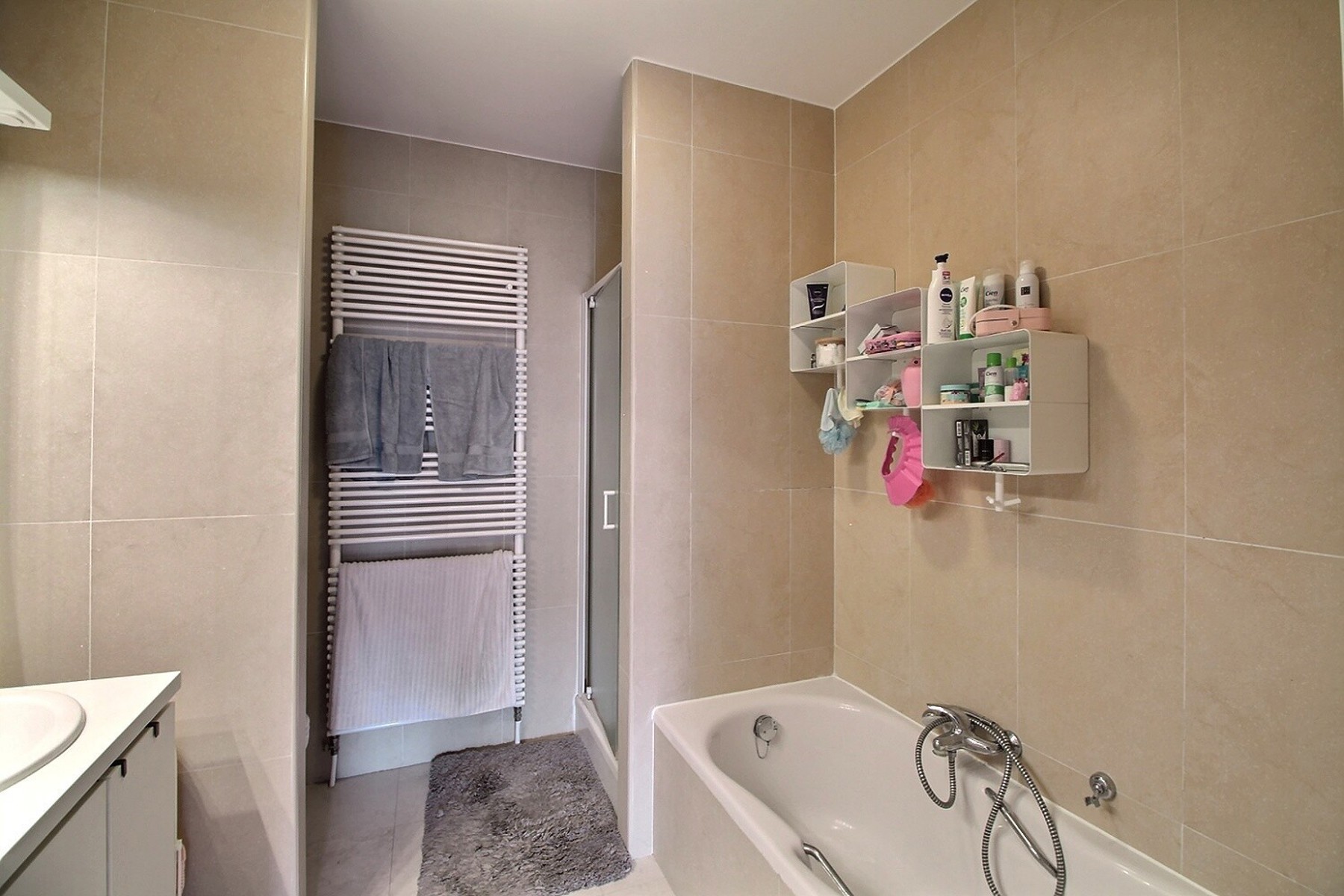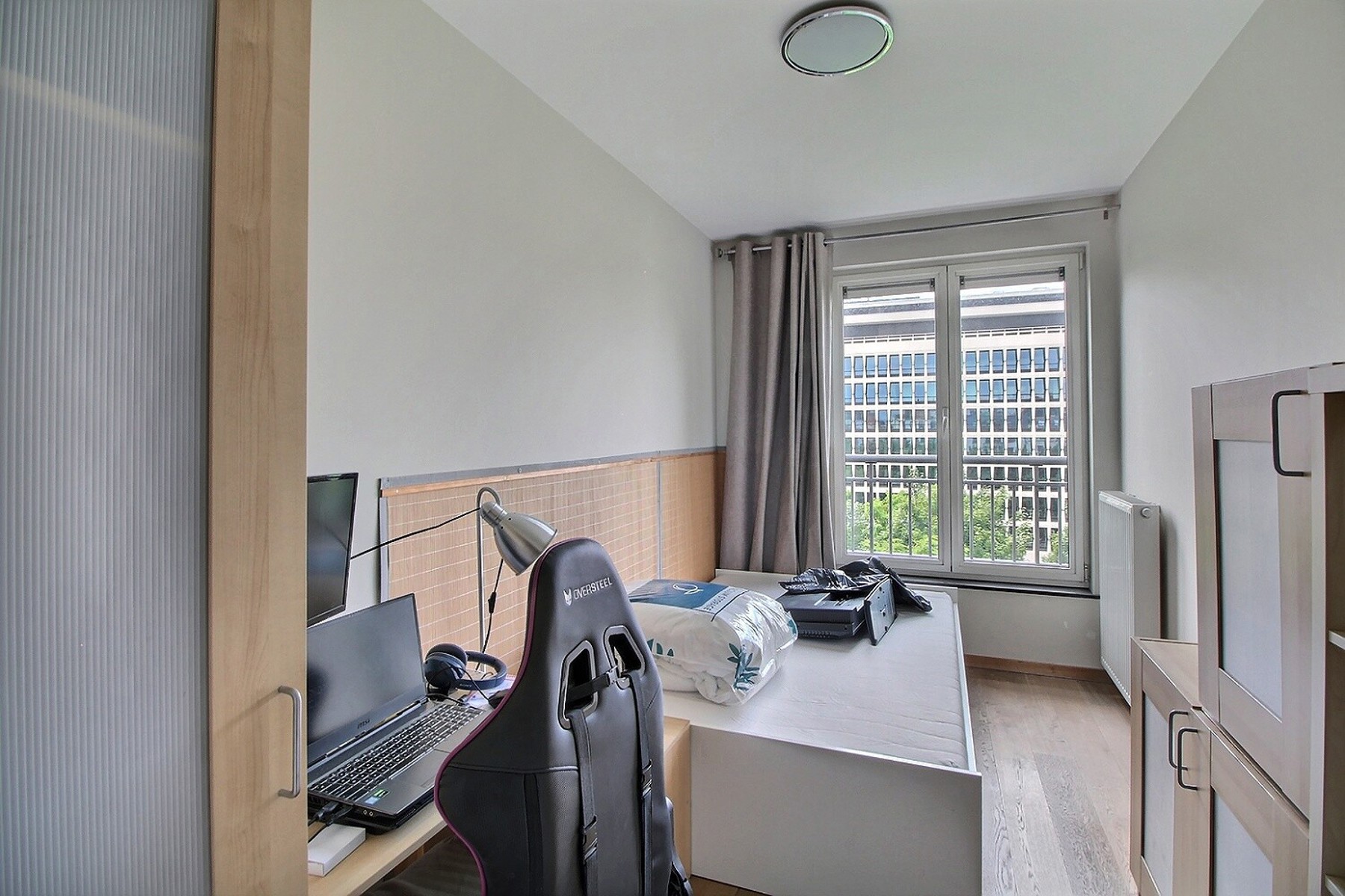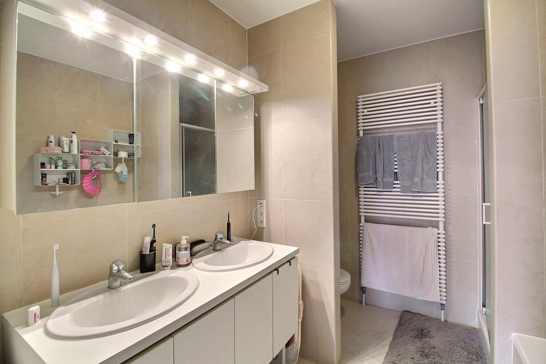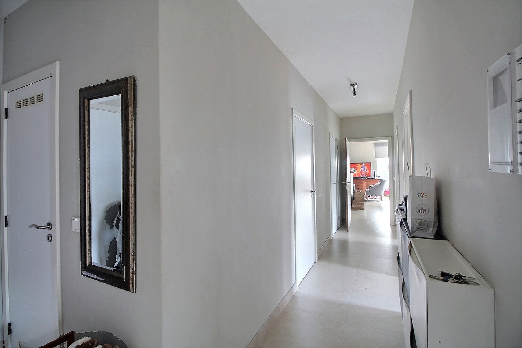 Carrelage au sol dans le séjour, la cuisine et les salles d’eau, parquet dans les chambres. PEB: C-. 1 emplacement de parking et 1 cave INCLUS. Local vélo. Local poubelle. Tous les compteurs sont individuels (gaz, électricité, eau). Loyer : 1860 euros + provisions de 150 euros/mois pour les charges communes, qui reprennent les provisions pour le nettoyage des communs, l’entretien ascenseur, l’entretien et électricité des communs, l’entretien des espaces verts, les honoraires syndic.