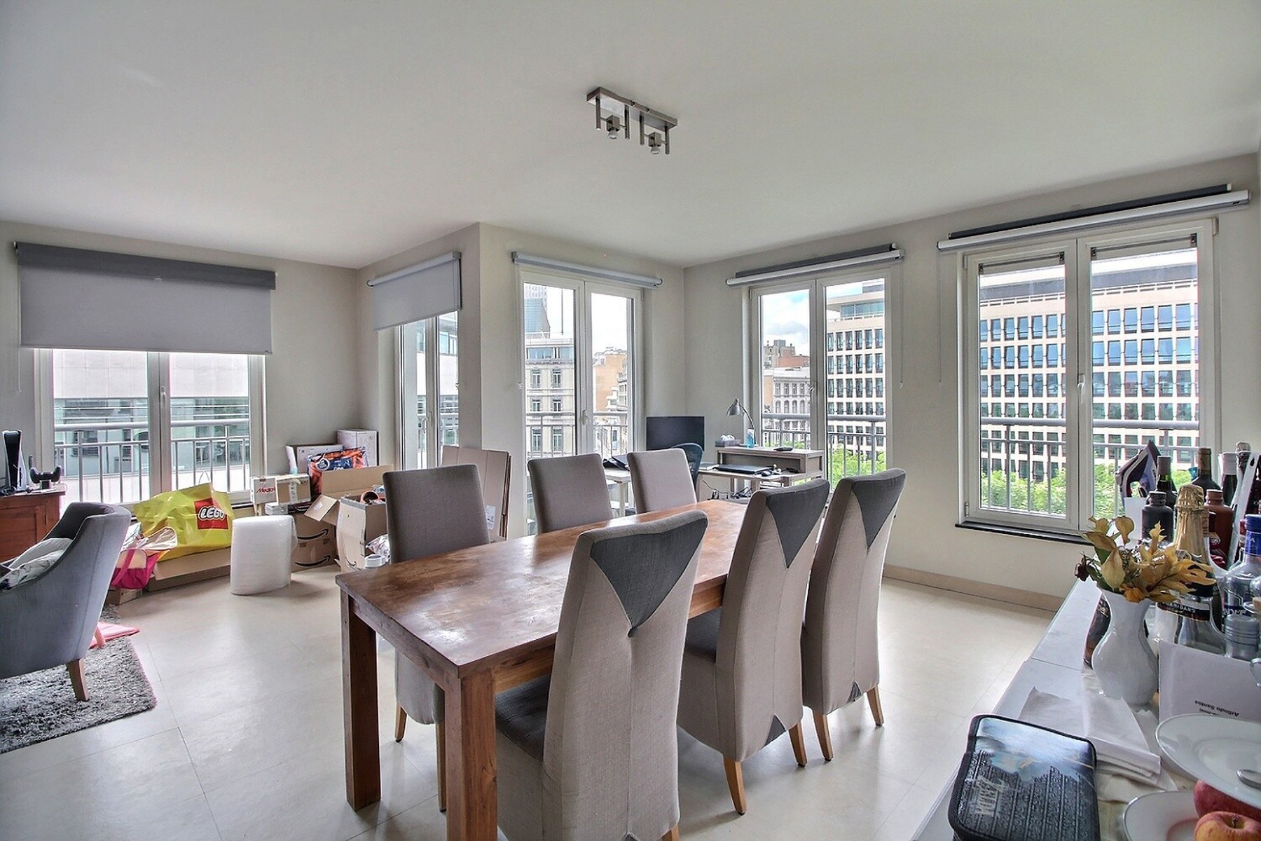 A deux pas du Square de Meeûs, By the Way vous propose ce superbe appartement 3 chambres MEUBLE de 122m2 (selon PEB) au 4er étage d’un petit immeuble de 4 étages avec ascenseur. Il se compose comme suit : un hall d’entrée avec WC séparé, un beau séjour de +/- 39m2, une cuisine super équipée de +/-19m2, 3 chambres de +/- 14, 9 et 9,50m2, une salle de bain avec douche séparée et WC, une buanderie et une salle de douche. Le living apporte une belle luminosité grâce aux grandes baies vitrées donnant accès à une petit terrasse de +/- 5m 2 orientée au nord-ouest. La cuisine est équipée d’un frigidaire, d’un four, d’une plaque de cuisson vitrocéramique, d’une hotte et d’un lave-vaisselle. La buanderie est équipée d’une machine à laver, d’un sèche linge et un congélateur.