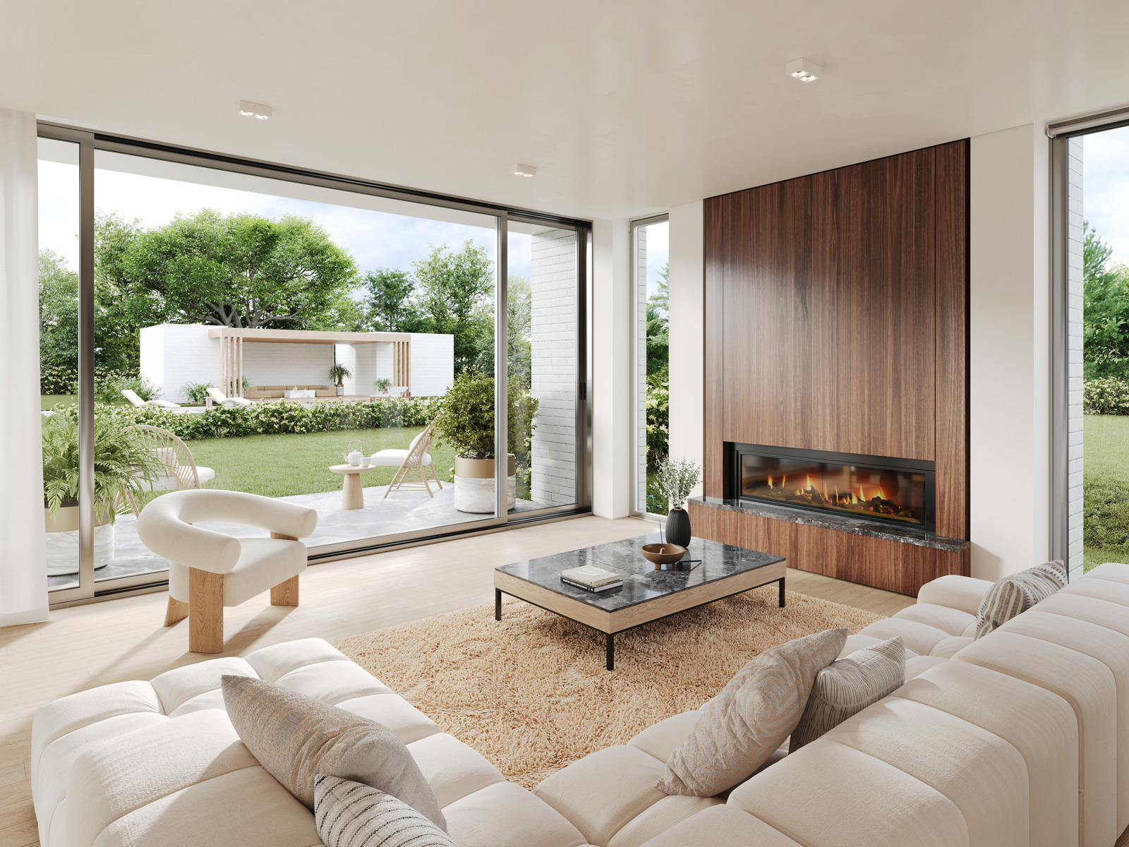 A l’étage : 4 CH dont splendide master bedroom et salles d’eau + bureau.