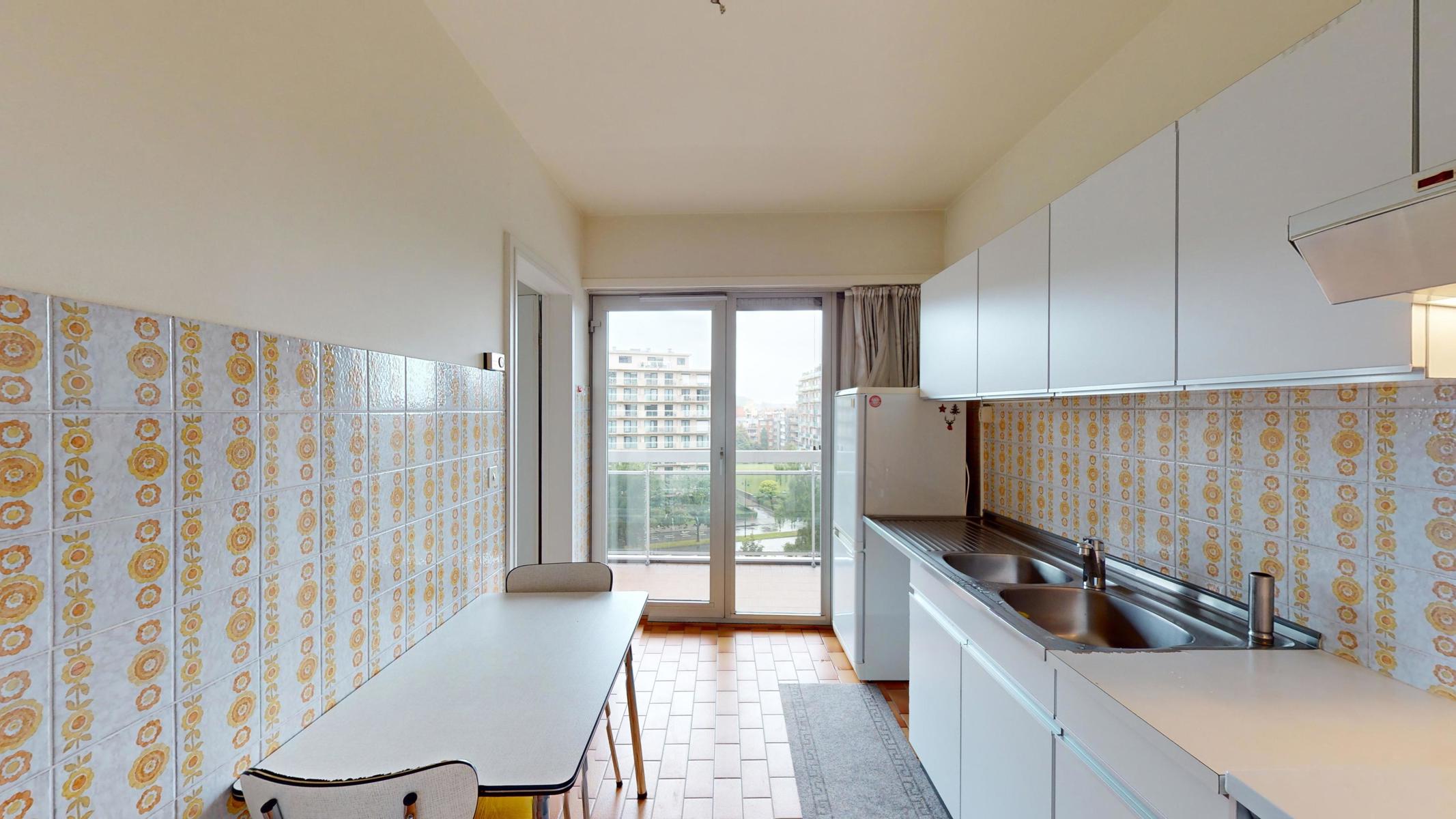 Localisé sur la commune de Molenbeek et situé à 100m du boulevard Mettewie, By the Way vous présente ce studio de 50m² avec un balcon de 13m² orienté vers le Sud. Composition de l’appartement: hall d’entrée (4m²) avec vestiaire, placard (2,5m²) et toilette séparée (1,2m²), nous passons vers le salon/salle à manger/chambre de 27m², cuisine semi équipée (9m²), salle de bains (3m²) avec bain et lavabo. Grande terrasse de 13m². Le chauffage est à l’électricité dans l’appartement. Boiler pour la salle de bains ainsi qu’un boiler dans la cuisine pour l’eau chaude (moins de consommation). Porte blindée. Électricité non-conforme. PEB: F. Châssis en double vitrage, Aluminium. Uniquement le changement des châssis peut déjà améliorer le PEB vers quasi la lettre C. L’immeuble est sécurisé par des badges. L’ascenseur est aux normes. Charges: 110€/mois (syndic, assurance, fonds de roulement et de réserve, assurance,….). Ce studio est idéal pour TOUT LE MONDE
