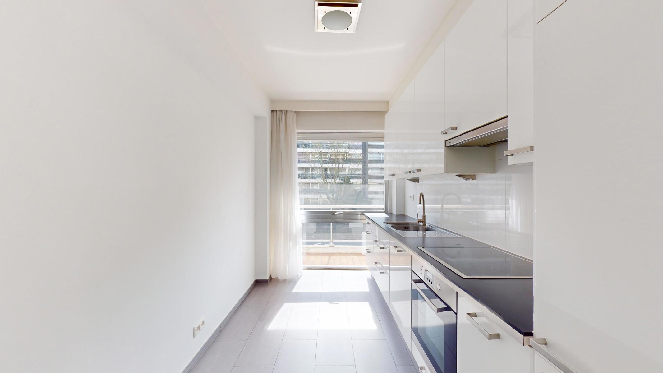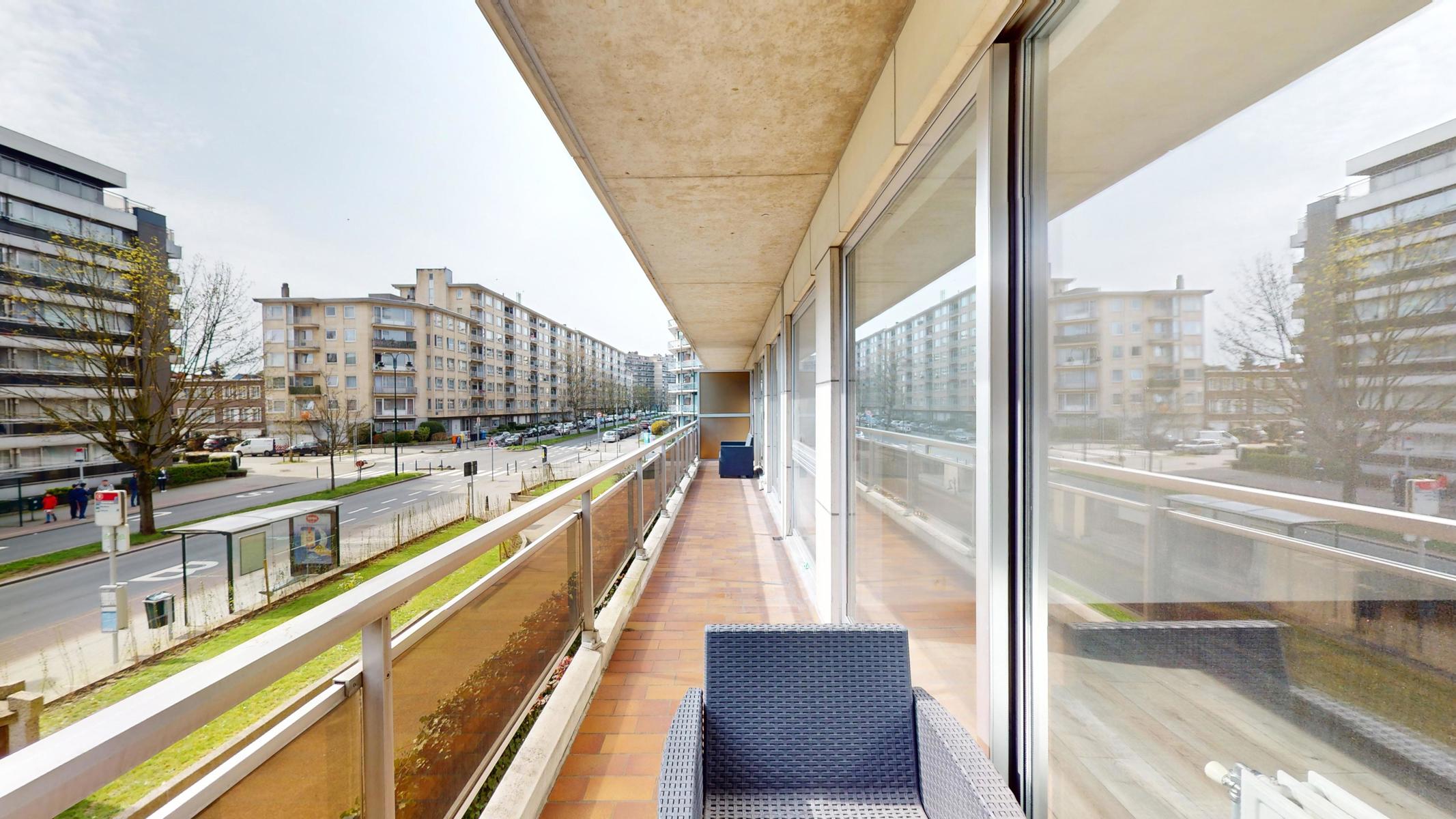 BytheWay a le privilège de vous présenter cet appartement situé dans la résidence Oxford et composé d’un hall d’entrée avec vestiaire, deux chambres, un séjour lumineux, une cuisine séparée équipée, une salle de douche, une toilette séparée, une terrasse sur toute la longueur de l’appartement, une cave. L’appartement est en très bon état. Possibilité d’acquérir un garage au prix de 30.000 euros. L’électricité est conforme . Le PEB est excellent, il est B. L’appartement se situe au premier étage d’un immeuble de 9 étages . Copropriété saine.