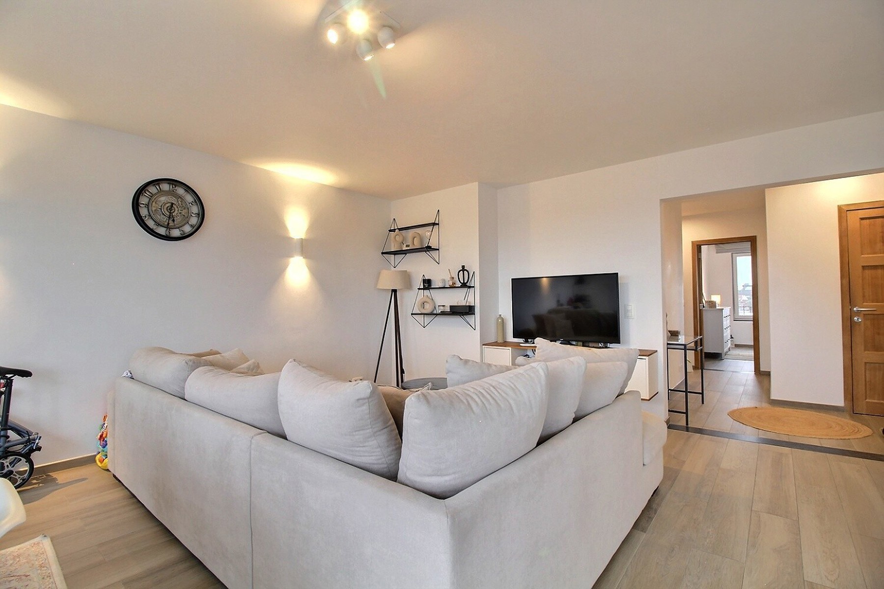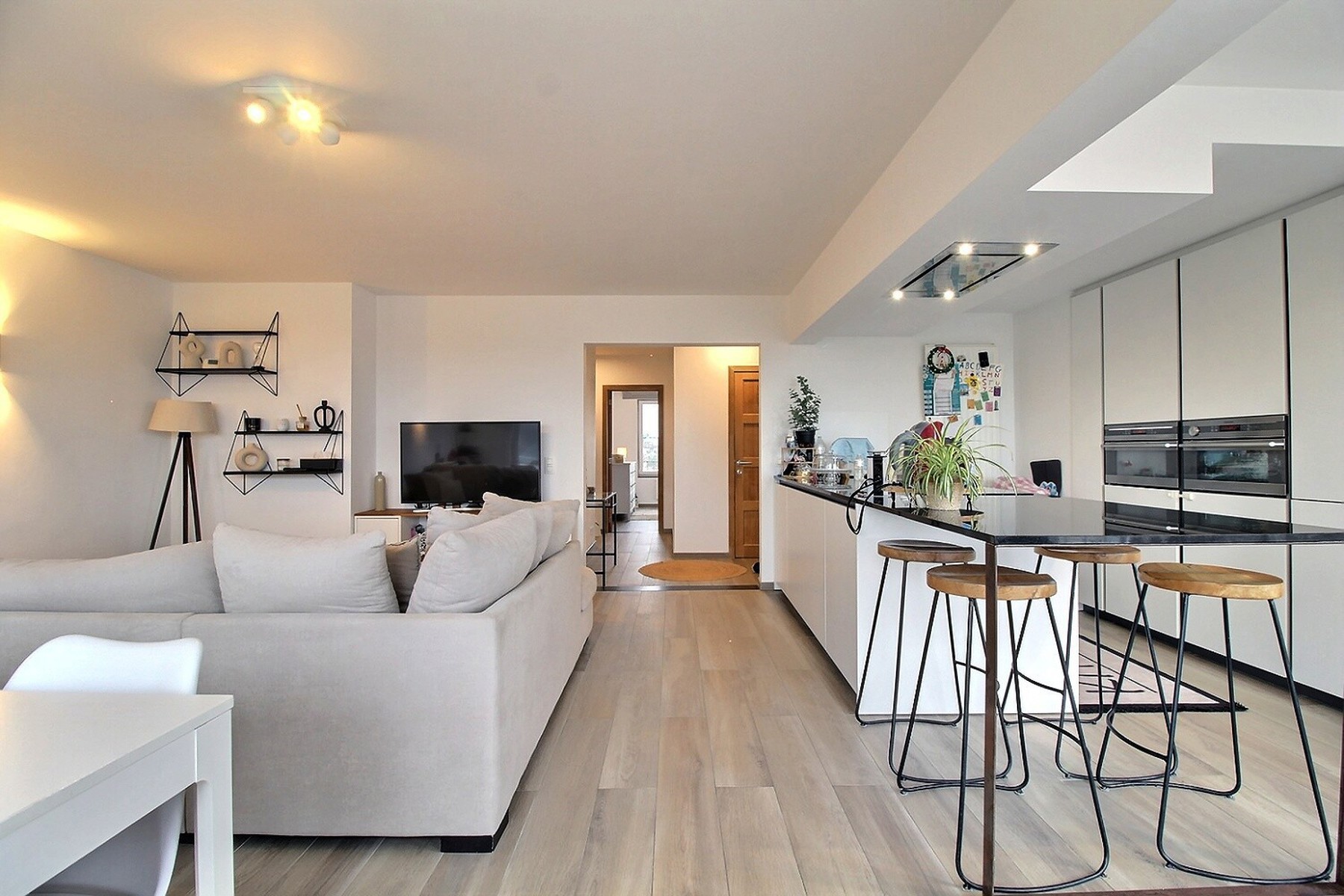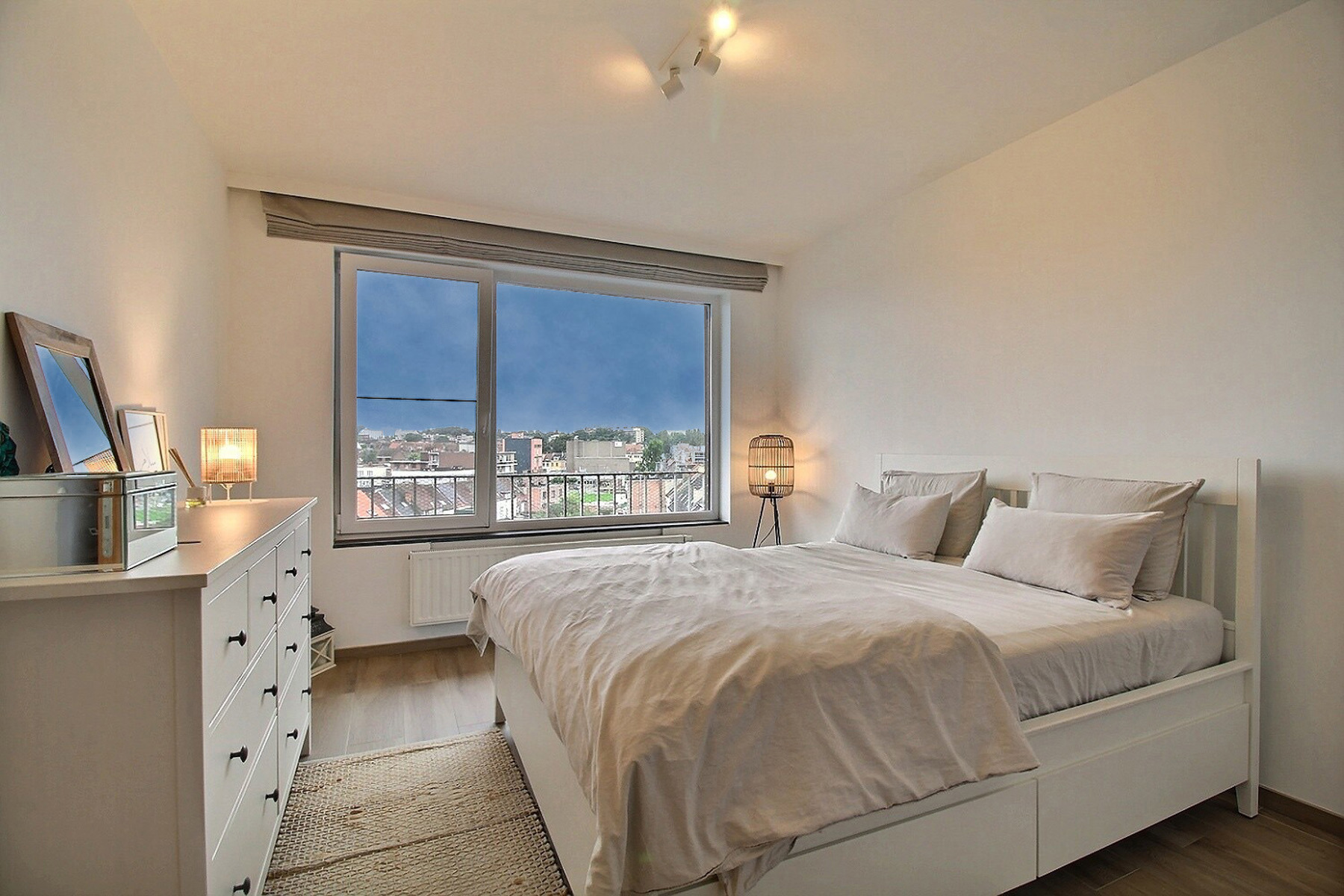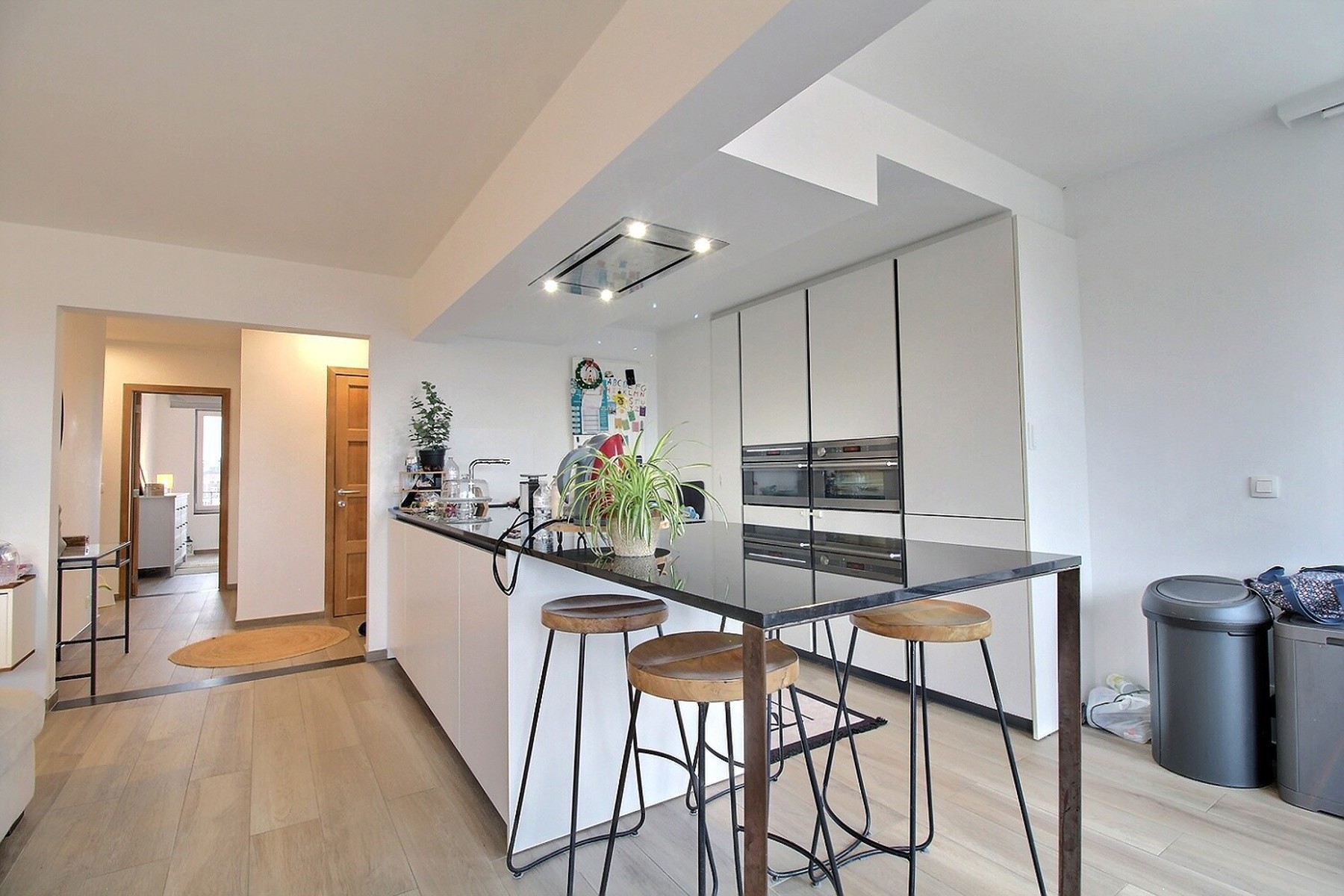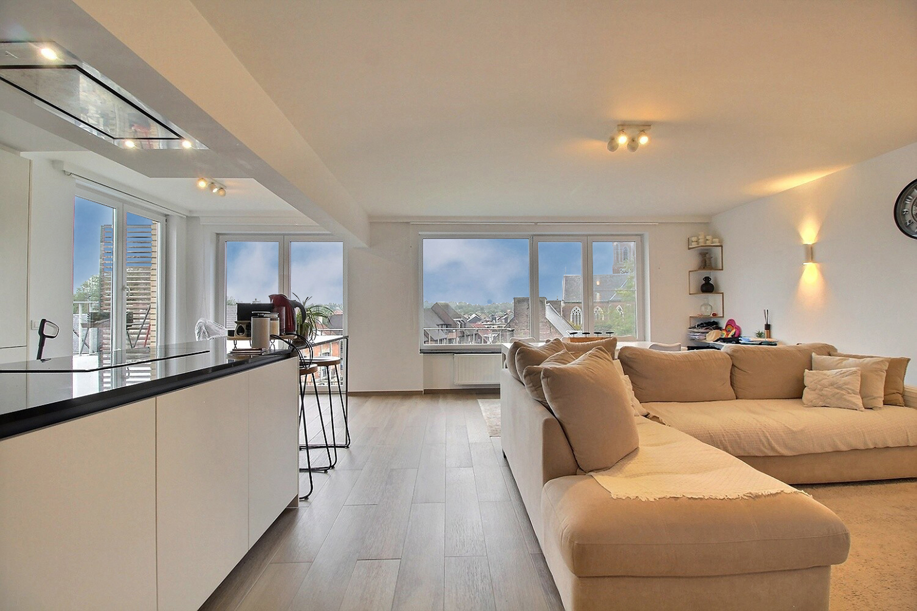 Situé à deux pas des grands axes routiers et des commerces, dans un quartier calme, By the Way vous propose ce bel appartement penthouse rénové de +/- 95m2 (selon PEB), au 5ème et dernier étage d’un immeuble bien entretenu avec ascenseur. Il se compose comme suit : Hall d’entrée avec buanderie, séjour de plus de 40m2 avec cuisine ouverte super-équipée, donnant accès à une grande terrasse à ciel ouvert, 2 chambres avec volets électriques de +/- 14,5 et 9,5m2 dont une avec balcon, salle de bain avec baignoire et douche et WC séparé. Cave privative au sous-sol. PEB B. Charges : provision de 250€/mois (charges communes de l’immeuble + consommations privatives de chauffage, eau chaude et eau froide). Divers : adoucisseur d’eau, chaudière commune au gaz récente, toiture et murs isolés. Libre le 15 octobre 2024.