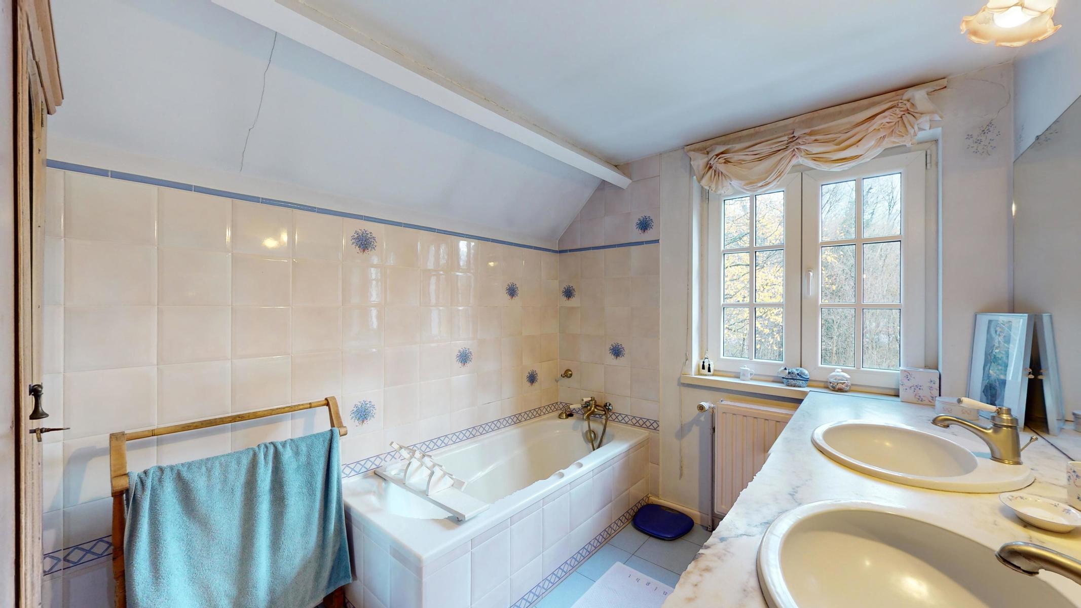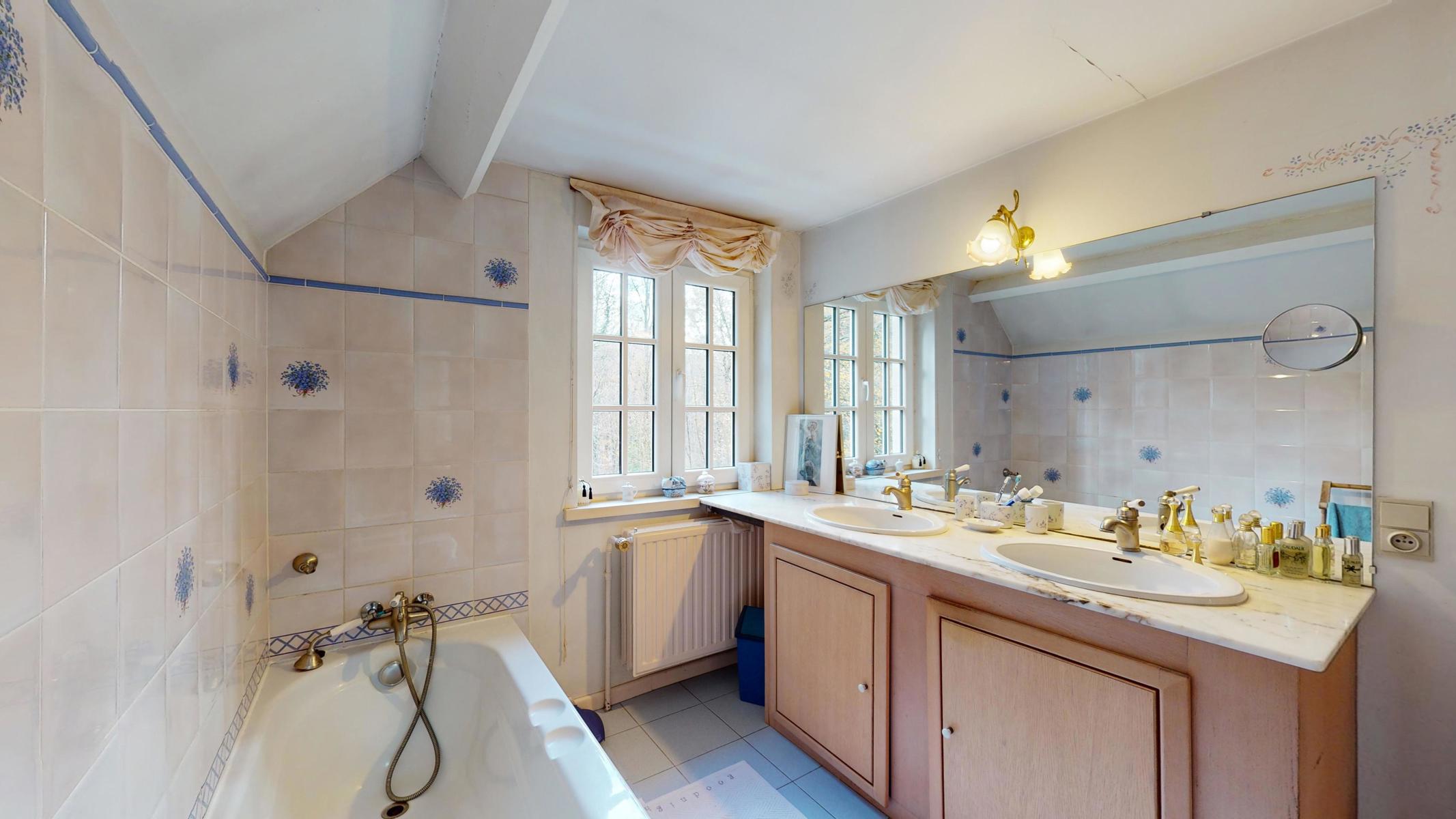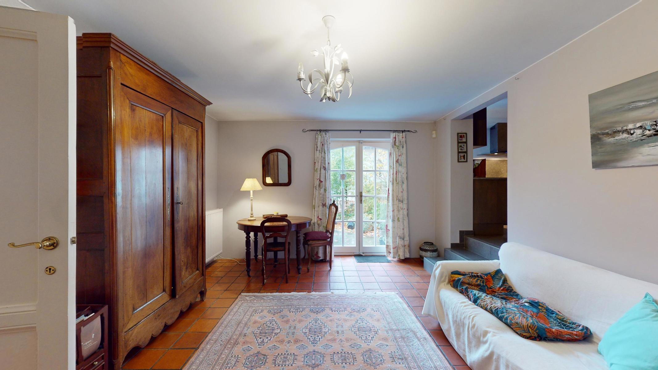 Overijse – Brabant flamand. Idéalement située à deux pas du lac de Genval et avec un accès direct à l’E411, By The Way vous propose cette charmante villa de style cottage, d’une surface habitable de 356m2 selon PEB, nichée dans un paisible écrin de verdure. Sise sur un terrain de +- 9 ares (orientation sud est) la villa, aux matériaux et prestations de qualité, se compose comme suit: Au rez-de-chaussée, un hall d’entrée avec WC séparé et vestiaire donnant sur un spacieux et lumineux espace salon de 48m2 avec feu ouvert et terrasse en L, une salle à manger et une cuisine super équipée rénovée en 2008, un grand garage. Au 1er étage, un hall de nuit desservant 5 belles chambres (29, 10, 10, 10 et 17m2) , 2 Sdb et WC. Au sous-sol, un spacieux espace de /- 90m2 avec entrée indépendante et accès au jardin pouvant convenir pour un espace professionnel ou bien à un logement séparé pour un membre de la famille (maison kangourou). Techniques: PEB D, Electricité non conforme, Attestation amiante, nouvelle chaudière gaz à condensation de 2020, alarme, garage, caves.
