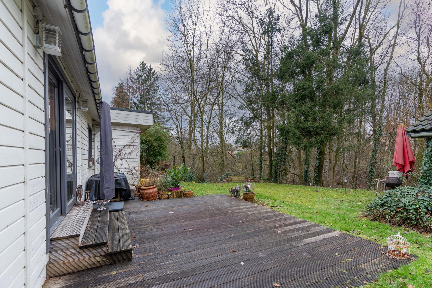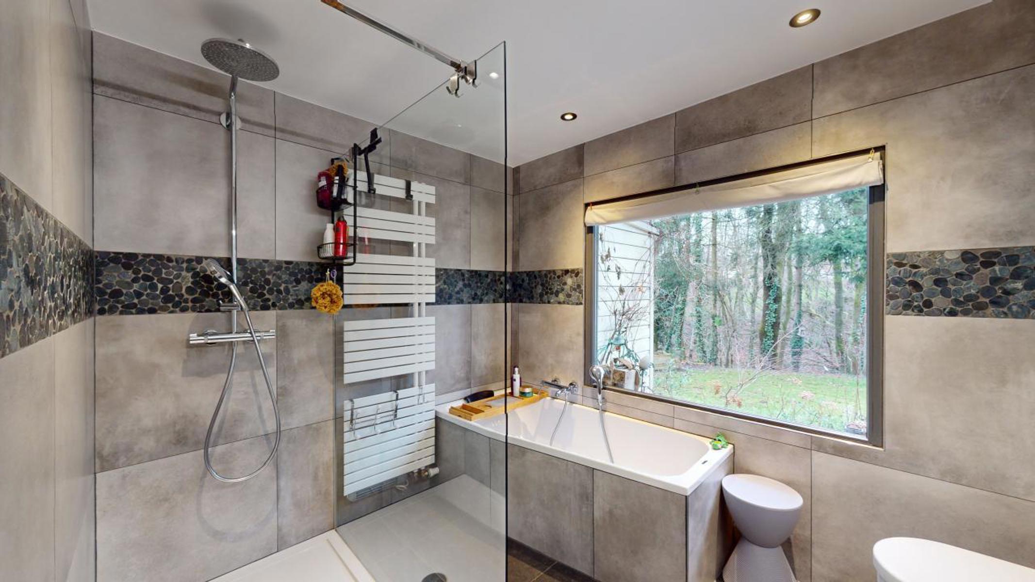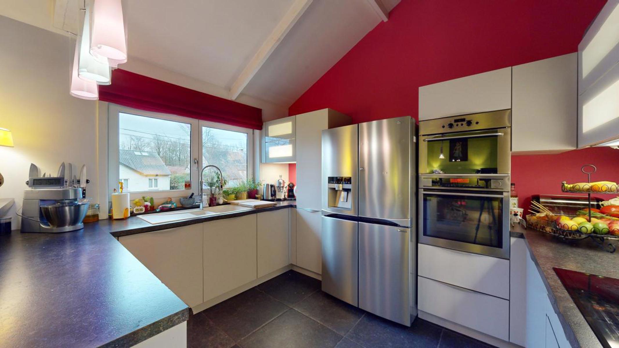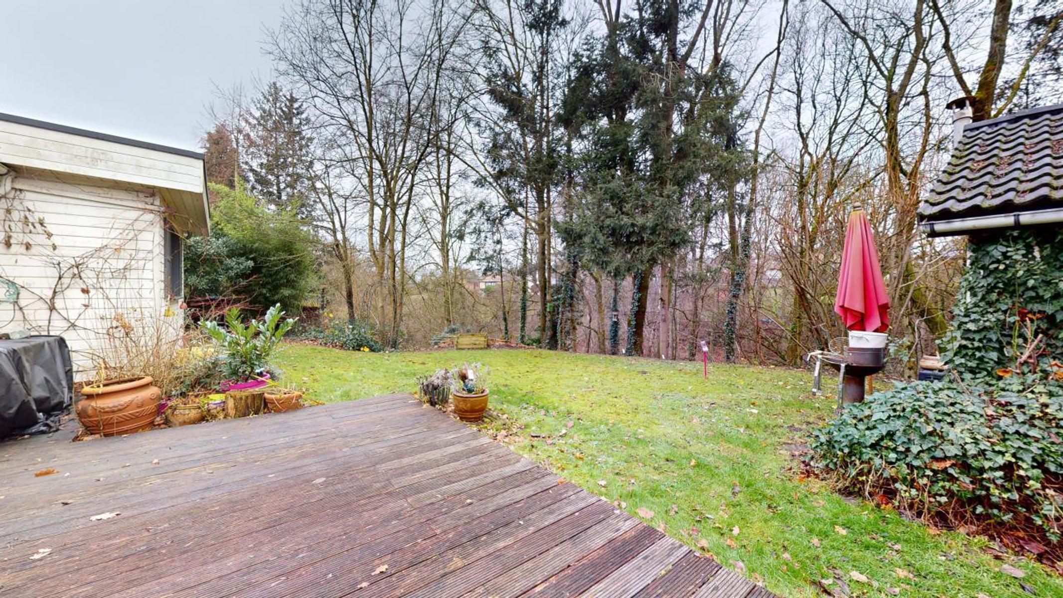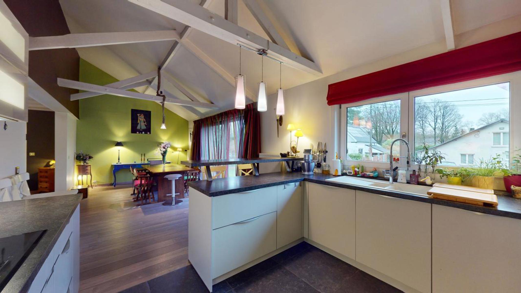 Située dans un quartier verdoyant et calme, une rue paisible en U, By the Way vous présente cette rare villa de plain-pied, 4 façades avec 3 chambres spacieuses, un studio en annexe, sise sur un joli terrain arboré (sapins, prunier, noisetiers, vignes) de +/- 15 ares. Une allée de graviers mène vers un carport éclairé pour 2 voitures et l’entrée principale, abritée par un joli porche. Il y aussi une entrée secondaire, côté terrasse. Conçue pour tirer le meilleur parti de son environnement naturel, elle bénéficie d’une terrasse en bois exotique bangkirai, orientée à l’Ouest. La villa est dotée de 16 panneaux photovoltaïques pour une production d’énergie durable avec « compteur qui tourne à l’envers ». La toiture en tuiles Fibro a été traitée en 2022. Le chauffage au mazout (cuve enterrée aux normes récentes) est régulé via le thermostat avec appli, les châssis sont en bois, double vitrage. La villa a été rénovée avec goût et des matériaux de qualité (sol plancher en chêne naturel, mobilier FACQ pour la salle de bain refaite récemment). Elle dispose également d’une citerne d’eau de pluie utilisée pour l’instant uniquement pour l’arrosage, le lavage des voitures. Elle se compose comme suit: Un hall d’entrée avec placards menant vers le salon lumineux de +/-21 m2 avec grande baie vitrée, des poutres apparentes et un chaleureux feu ouvert. Une salle à manger avec plafond cathédrale de +/- 20 m2 avec un authentique plancher naturel donnant sur une cuisine de +/- 11 m2 super équipée (plaques vitrocéramiques, four vapeur, four micro-ondes, réfrigérateur américain) ouverte conviviale avec un petit bar, évier en grès ivoire. Le couloir de nuit mène vers la salle de bain, avec douche italienne, baignoire avec vue sur le jardin privatif et deux autres belles chambres de +/- 19 et 17 m2, buanderie et studio indépendant. PEB E, électricité conforme. Toutes les informations via le lien suivant : https://biens.bytheway.immo/genets-13/