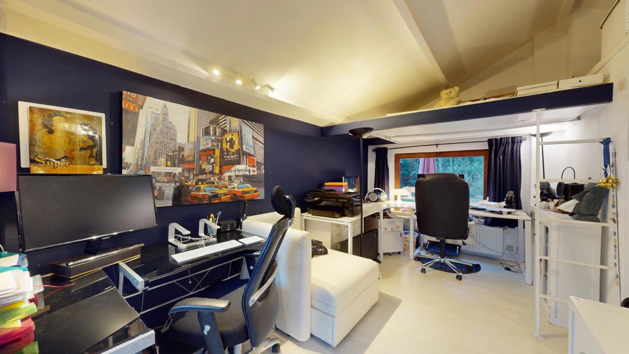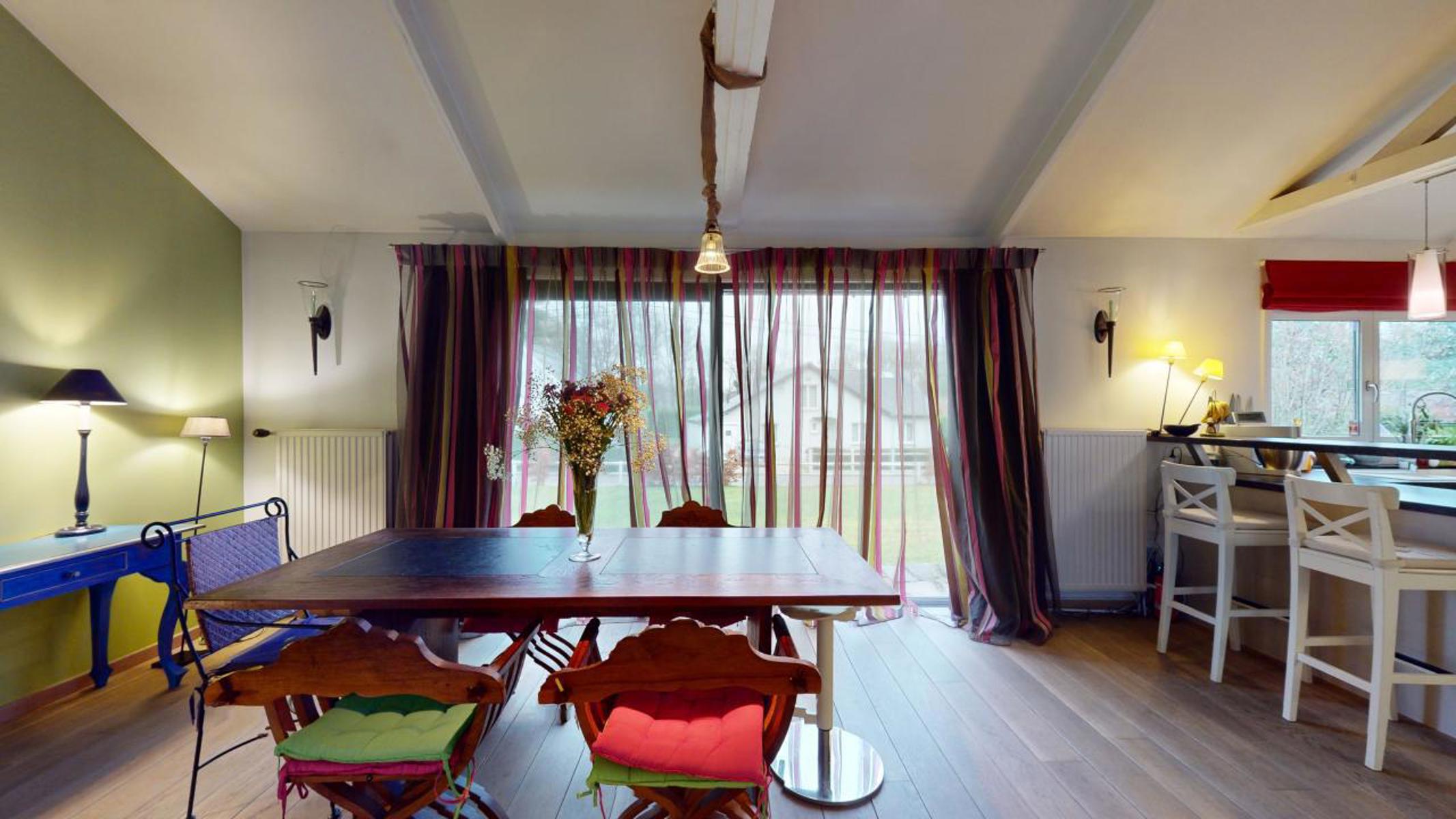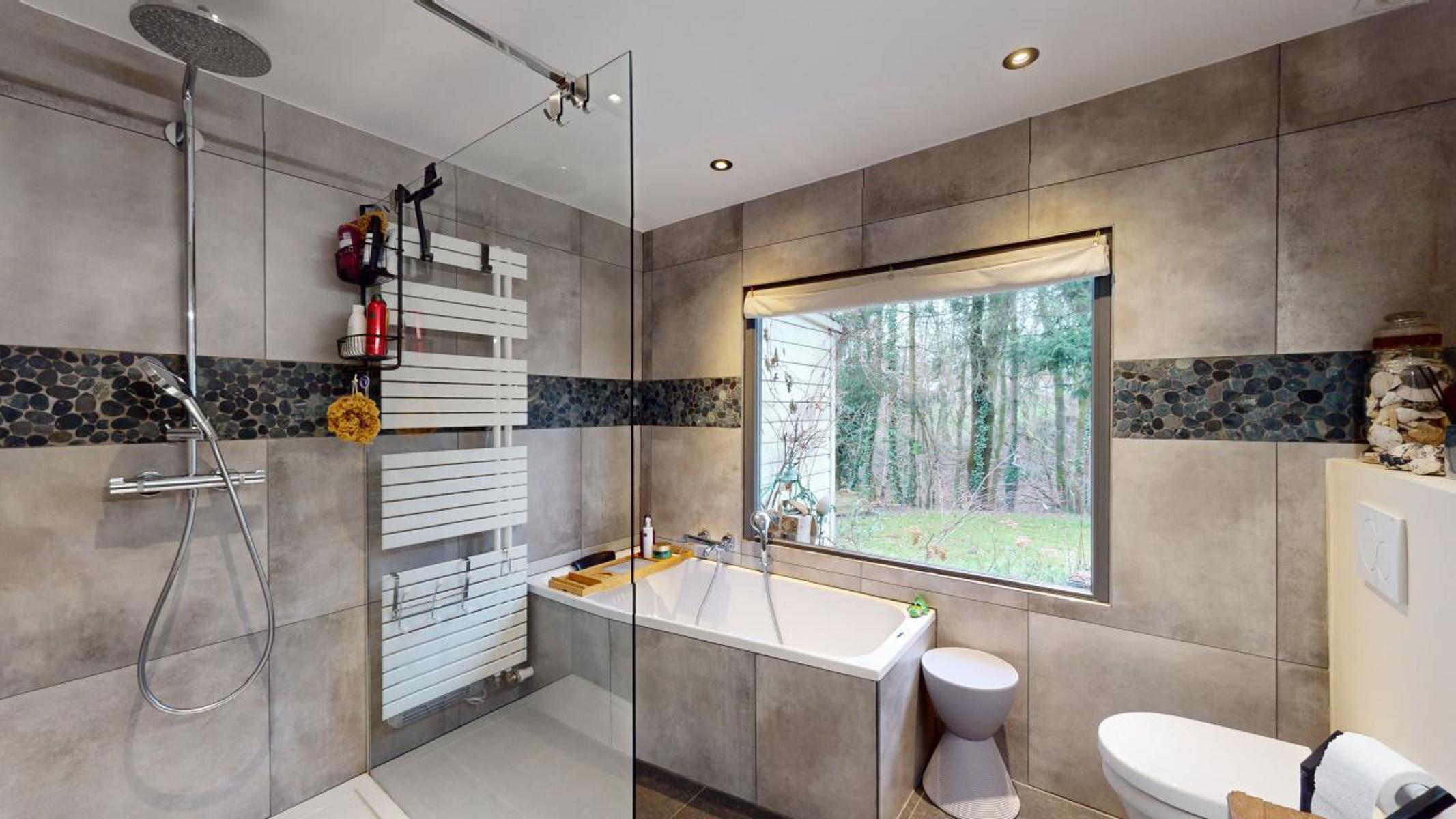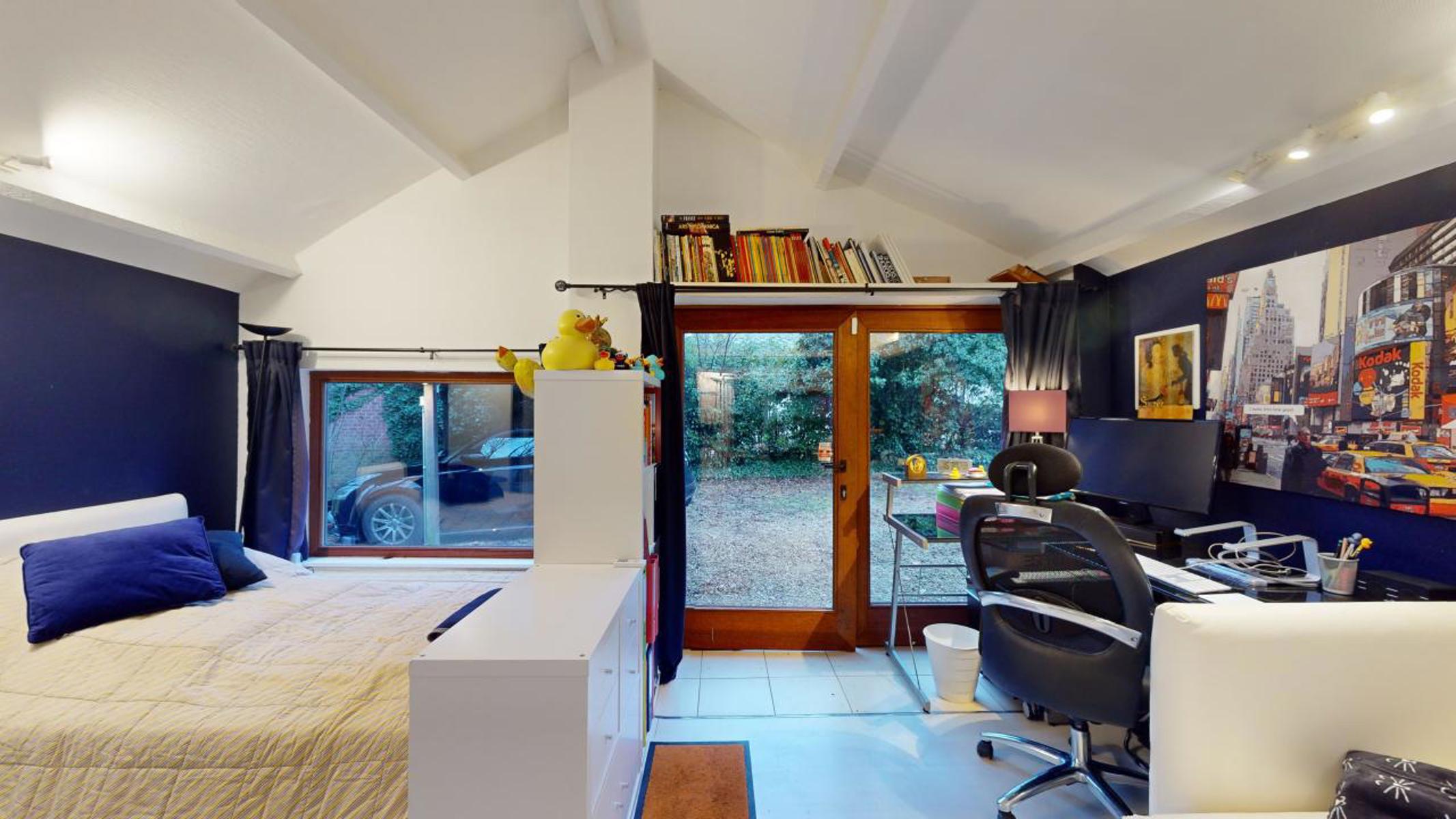 Située dans un quartier verdoyant et calme, une rue paisible en U, By the Way vous présente cette rare villa de plain-pied, 4 façades avec 3 chambres spacieuses, un studio en annexe, sise sur un joli terrain arboré (sapins, prunier, noisetiers, vignes) de +/- 15 ares. Une allée de graviers mène vers un carport éclairé pour 2 voitures et l’entrée principale, abritée par un joli porche. Il y aussi une entrée secondaire, côté terrasse. Conçue pour tirer le meilleur parti de son environnement naturel, elle bénéficie d’une terrasse en bois exotique bangkirai, orientée à l’Ouest. La villa est dotée de 16 panneaux photovoltaïques pour une production d’énergie durable avec « compteur qui tourne à l’envers ». La toiture en tuiles Fibro a été traitée en 2022. Le chauffage au mazout (cuve enterrée aux normes récentes) est régulé via le thermostat avec appli, les châssis sont en bois, double vitrage. La villa a été rénovée avec goût et des matériaux de qualité (sol plancher en chêne naturel, mobilier FACQ pour la salle de bain refaite récemment). Elle dispose également d’une citerne d’eau de pluie utilisée pour l’instant uniquement pour l’arrosage, le lavage des voitures. Elle se compose comme suit: Un hall d’entrée avec placards menant vers le salon lumineux de +/-21 m2 avec grande baie vitrée, des poutres apparentes et un chaleureux feu ouvert. Une salle à manger avec plafond cathédrale de +/- 20 m2 avec un authentique plancher naturel donnant sur une cuisine de +/- 11 m2 super équipée (plaques vitrocéramiques, four vapeur, four micro-ondes, réfrigérateur américain) ouverte conviviale avec un petit bar, évier en grès ivoire. Le couloir de nuit mène vers la salle de bain, avec douche italienne, baignoire avec vue sur le jardin privatif et deux autres belles chambres de +/- 19 et 17 m2, buanderie et studio indépendant. PEB E, électricité conforme. Toutes les informations via le lien suivant : https://biens.bytheway.immo/genets-13/