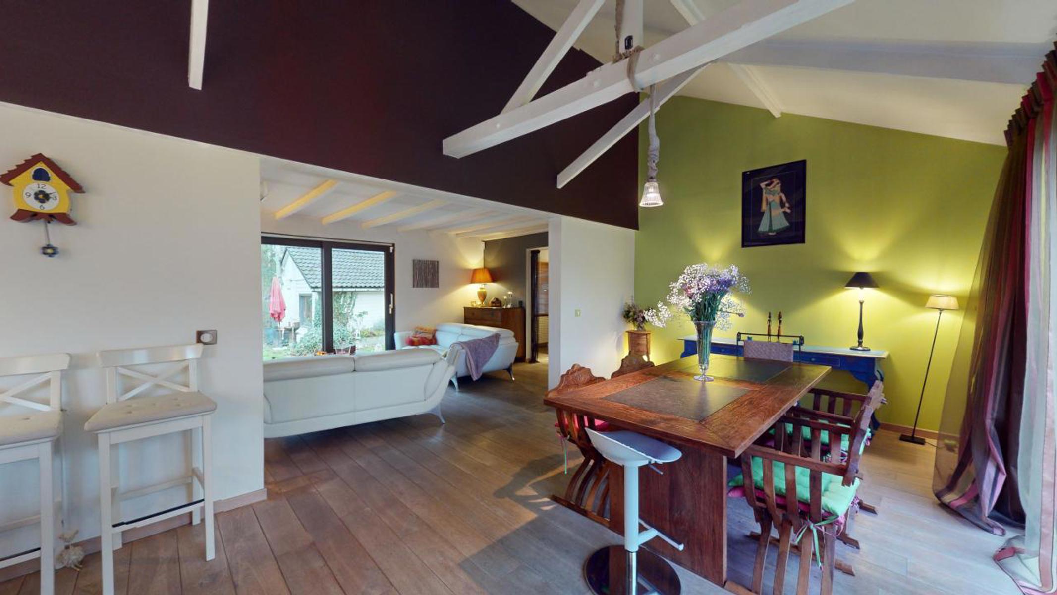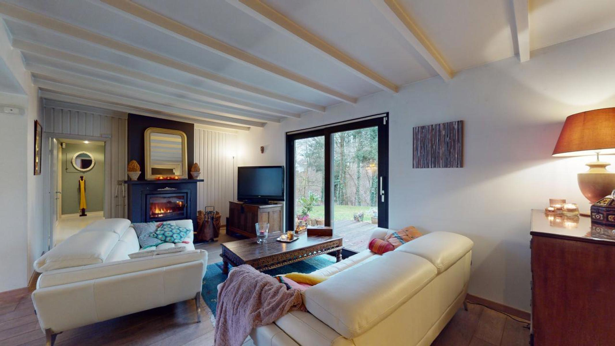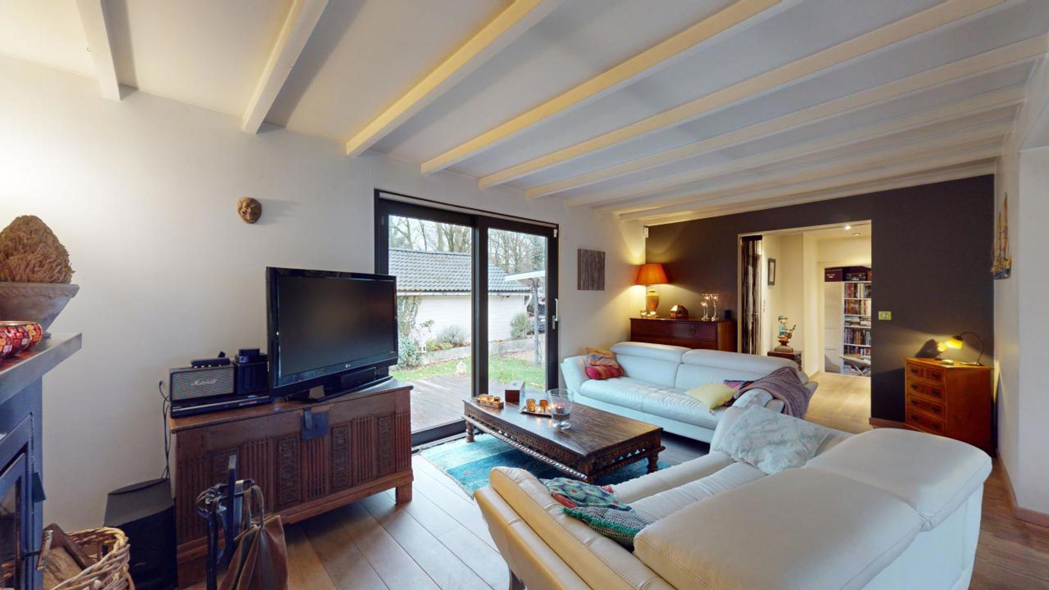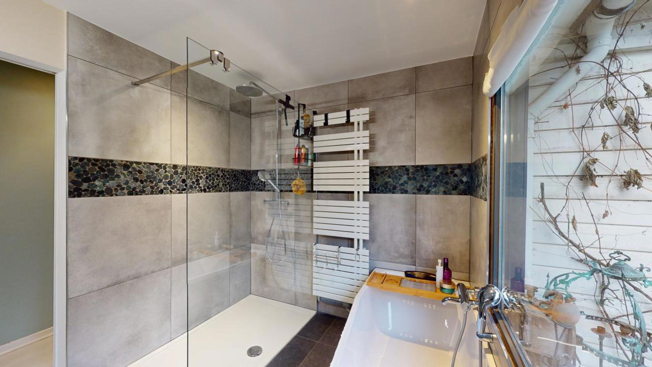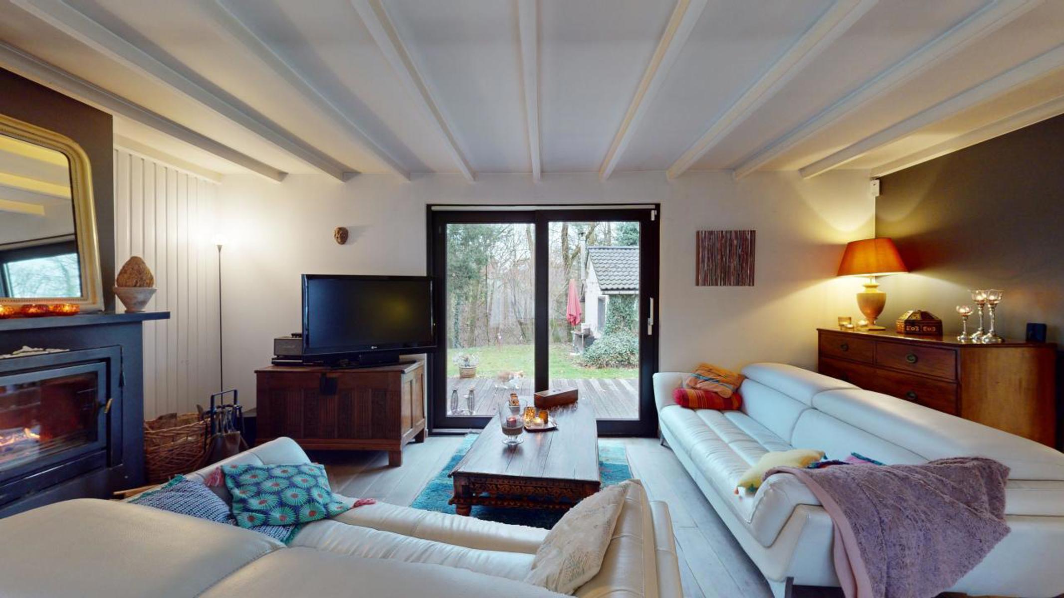 Située dans un quartier verdoyant et calme, une rue paisible en U, By the Way vous présente cette rare villa de plain-pied, 4 façades avec 3 chambres spacieuses, un studio en annexe, sise sur un joli terrain arboré (sapins, prunier, noisetiers, vignes) de +/- 15 ares. Une allée de graviers mène vers un carport éclairé pour 2 voitures et l’entrée principale, abritée par un joli porche. Il y aussi une entrée secondaire, côté terrasse. Conçue pour tirer le meilleur parti de son environnement naturel, elle bénéficie d’une terrasse en bois exotique bangkirai, orientée à l’Ouest. La villa est dotée de 16 panneaux photovoltaïques pour une production d’énergie durable avec « compteur qui tourne à l’envers ». La toiture en tuiles Fibro a été traitée en 2022. Le chauffage au mazout (cuve enterrée aux normes récentes) est régulé via le thermostat avec appli, les châssis sont en bois, double vitrage. La villa a été rénovée avec goût et des matériaux de qualité (sol plancher en chêne naturel, mobilier FACQ pour la salle de bain refaite récemment). Elle dispose également d’une citerne d’eau de pluie utilisée pour l’instant uniquement pour l’arrosage, le lavage des voitures. Elle se compose comme suit: Un hall d’entrée avec placards menant vers le salon lumineux de +/-21 m2 avec grande baie vitrée, des poutres apparentes et un chaleureux feu ouvert. Une salle à manger avec plafond cathédrale de +/- 20 m2 avec un authentique plancher naturel donnant sur une cuisine de +/- 11 m2 super équipée (plaques vitrocéramiques, four vapeur, four micro-ondes, réfrigérateur américain) ouverte conviviale avec un petit bar, évier en grès ivoire. Le couloir de nuit mène vers la salle de bain, avec douche italienne, baignoire avec vue sur le jardin privatif et deux autres belles chambres de +/- 19 et 17 m2, buanderie et studio indépendant. PEB E, électricité conforme. Toutes les informations via le lien suivant : https://biens.bytheway.immo/genets-13/