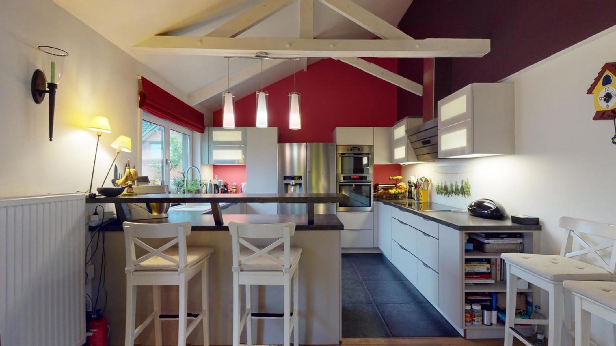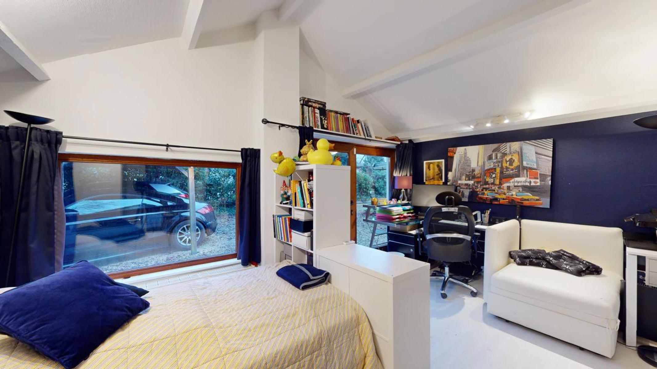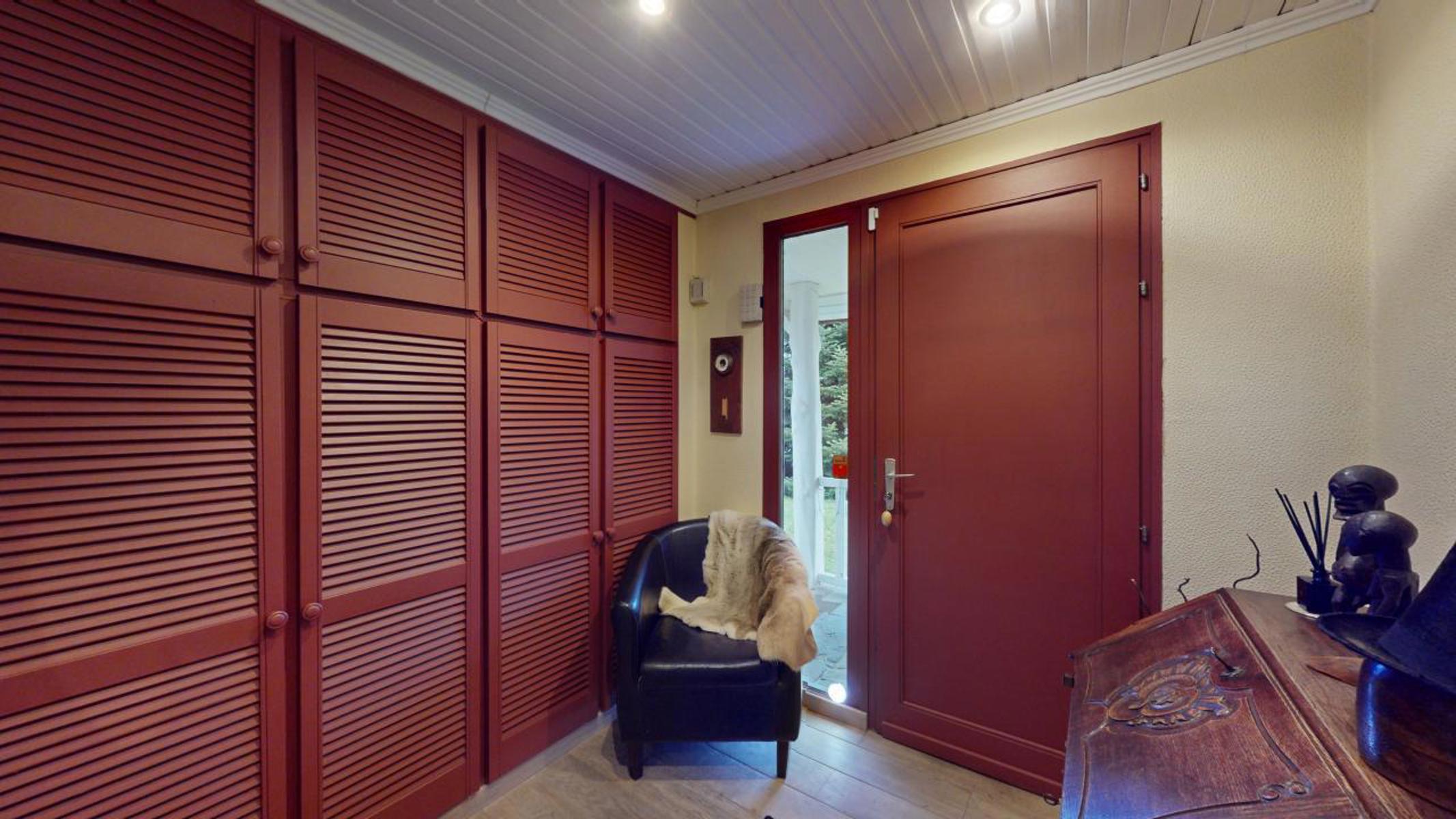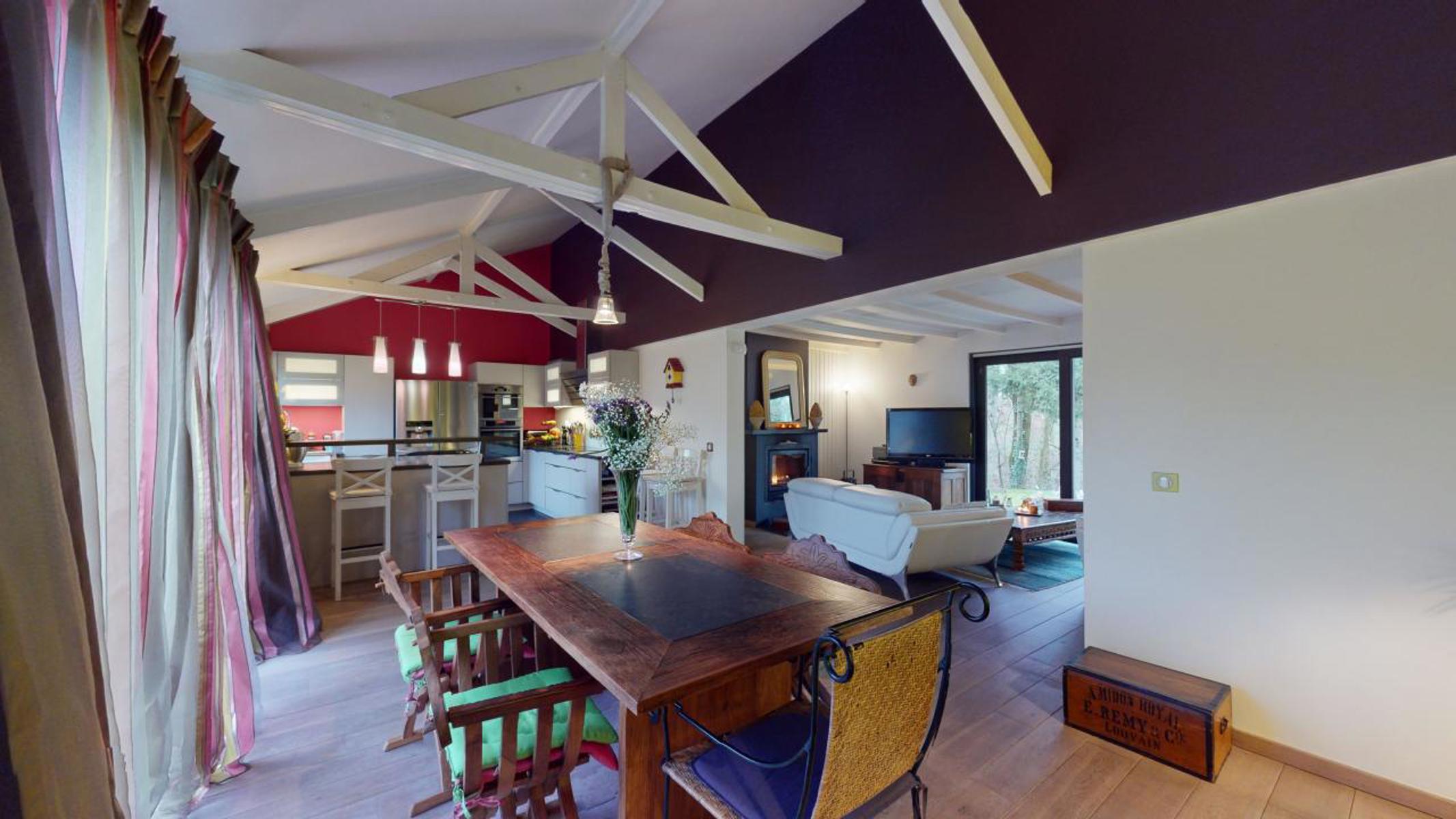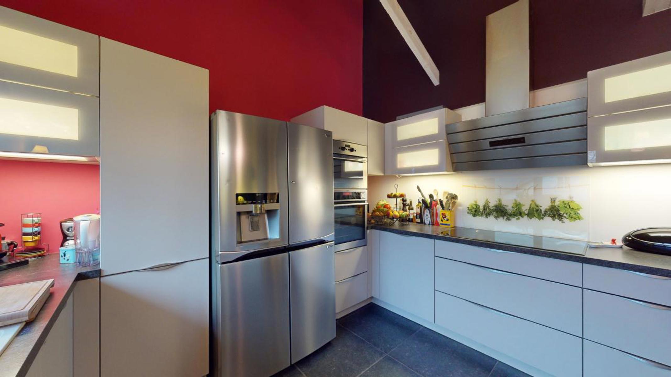 Située dans un quartier verdoyant et calme, une rue paisible en U, By the Way vous présente cette rare villa de plain-pied, 4 façades avec 3 chambres spacieuses, un studio en annexe, sise sur un joli terrain arboré (sapins, prunier, noisetiers, vignes) de +/- 15 ares. Une allée de graviers mène vers un carport éclairé pour 2 voitures et l’entrée principale, abritée par un joli porche. Il y aussi une entrée secondaire, côté terrasse. Conçue pour tirer le meilleur parti de son environnement naturel, elle bénéficie d’une terrasse en bois exotique bangkirai, orientée à l’Ouest. La villa est dotée de 16 panneaux photovoltaïques pour une production d’énergie durable avec « compteur qui tourne à l’envers ». La toiture en tuiles Fibro a été traitée en 2022. Le chauffage au mazout (cuve enterrée aux normes récentes) est régulé via le thermostat avec appli, les châssis sont en bois, double vitrage. La villa a été rénovée avec goût et des matériaux de qualité (sol plancher en chêne naturel, mobilier FACQ pour la salle de bain refaite récemment). Elle dispose également d’une citerne d’eau de pluie utilisée pour l’instant uniquement pour l’arrosage, le lavage des voitures. Elle se compose comme suit: Un hall d’entrée avec placards menant vers le salon lumineux de +/-21 m2 avec grande baie vitrée, des poutres apparentes et un chaleureux feu ouvert. Une salle à manger avec plafond cathédrale de +/- 20 m2 avec un authentique plancher naturel donnant sur une cuisine de +/- 11 m2 super équipée (plaques vitrocéramiques, four vapeur, four micro-ondes, réfrigérateur américain) ouverte conviviale avec un petit bar, évier en grès ivoire. Le couloir de nuit mène vers la salle de bain, avec douche italienne, baignoire avec vue sur le jardin privatif et deux autres belles chambres de +/- 19 et 17 m2, buanderie et studio indépendant. PEB E, électricité conforme. Toutes les informations via le lien suivant : https://biens.bytheway.immo/genets-13/