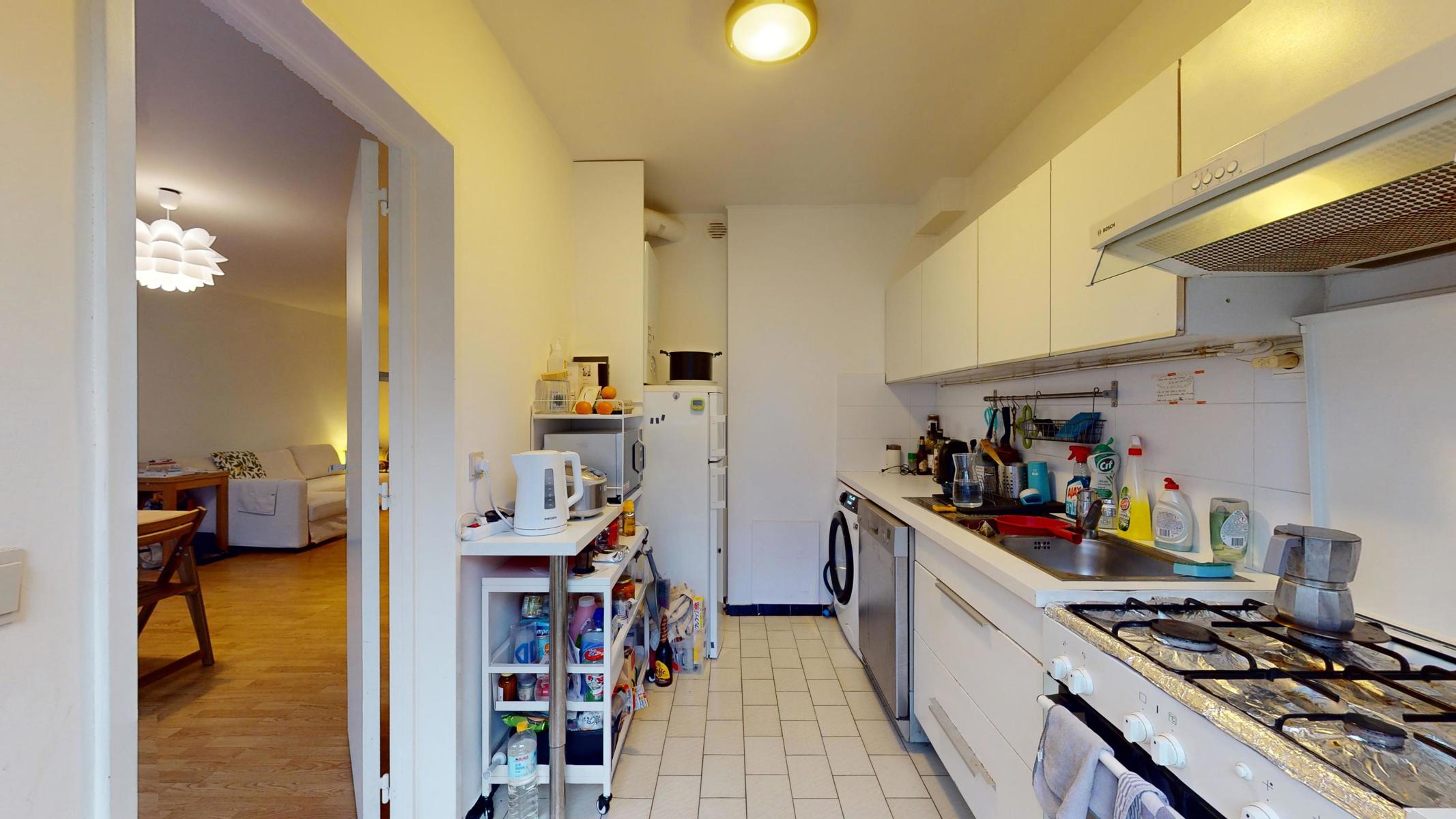 WOLUWE-SAINT-LAMBERT – Quartier Gribaumont. Idéalement situé à proximité du square Montgomery, dans un quartier calme et résidentiel, By The Way vous propose ce bel appartement traversant de +/- 96m2 (selon PEB). L’appartement est situé au 2ème étage (avec ascenseur) d’une petite copropriété et se compose comme suit: Grand et lumineux séjour de 40m2, une cuisine équipée séparée, hall d’entrée, Wc séparé, salle de bains et 2 chambres à l’arrière dont une avec terrasse. Une cave et un box garage fermés viennent compléter l’ensemble. ​​Éléments techniques : PEB D+, Electricité non conforme, chaudière individuelle gaz, Charges +-160€/mois (communs, ascenseurs, syndic et fonds de réserve), cave et garage.