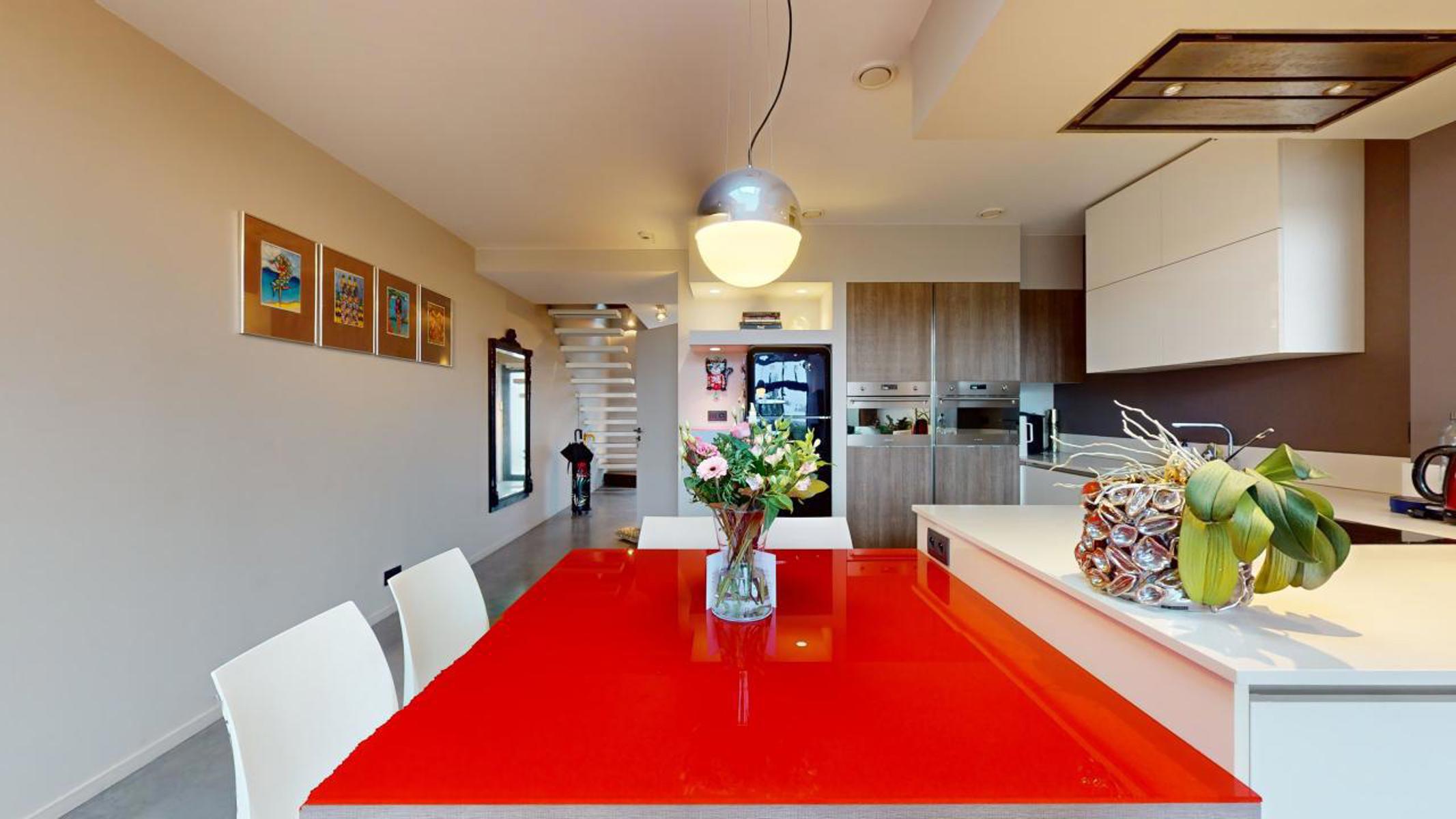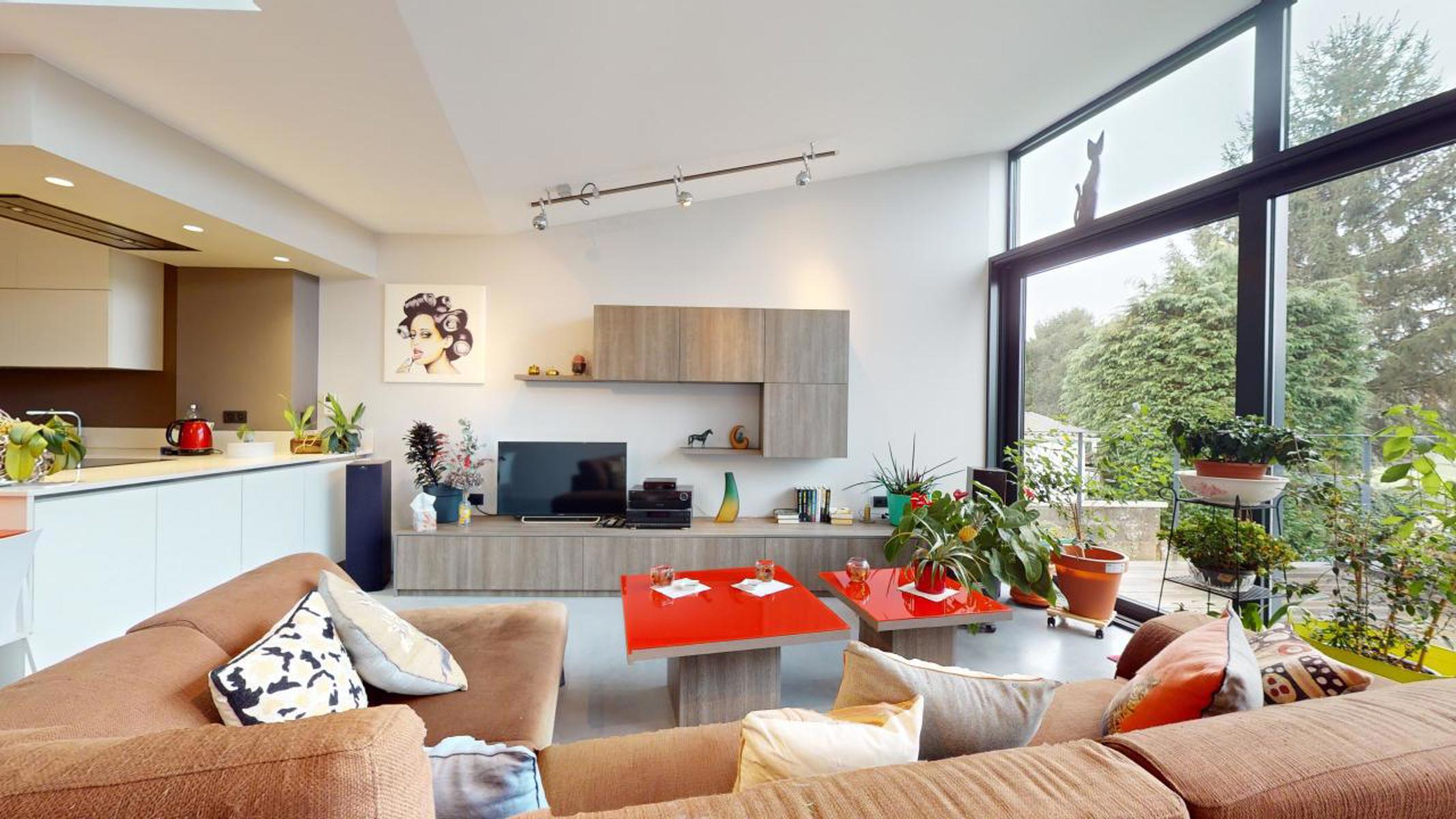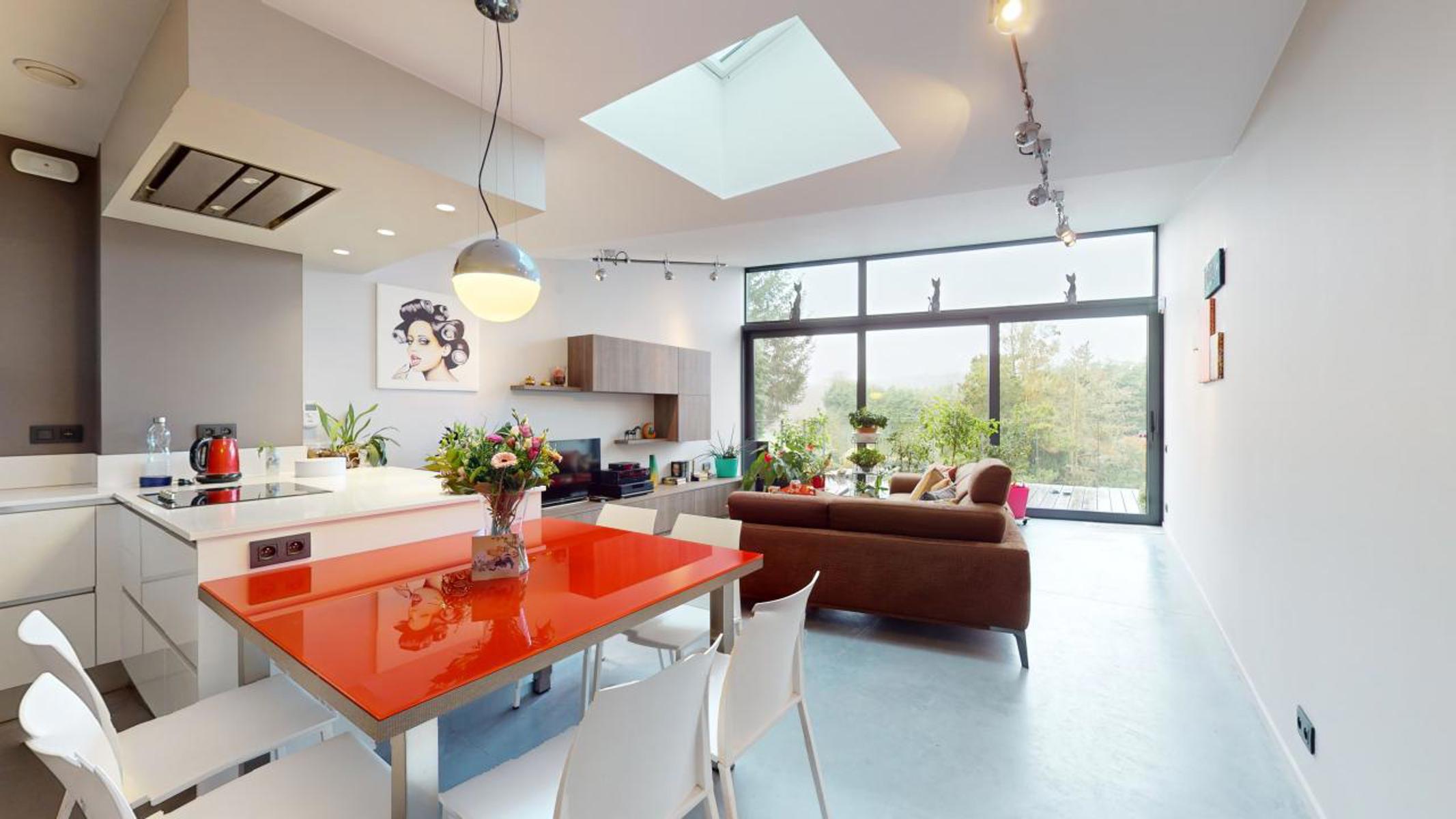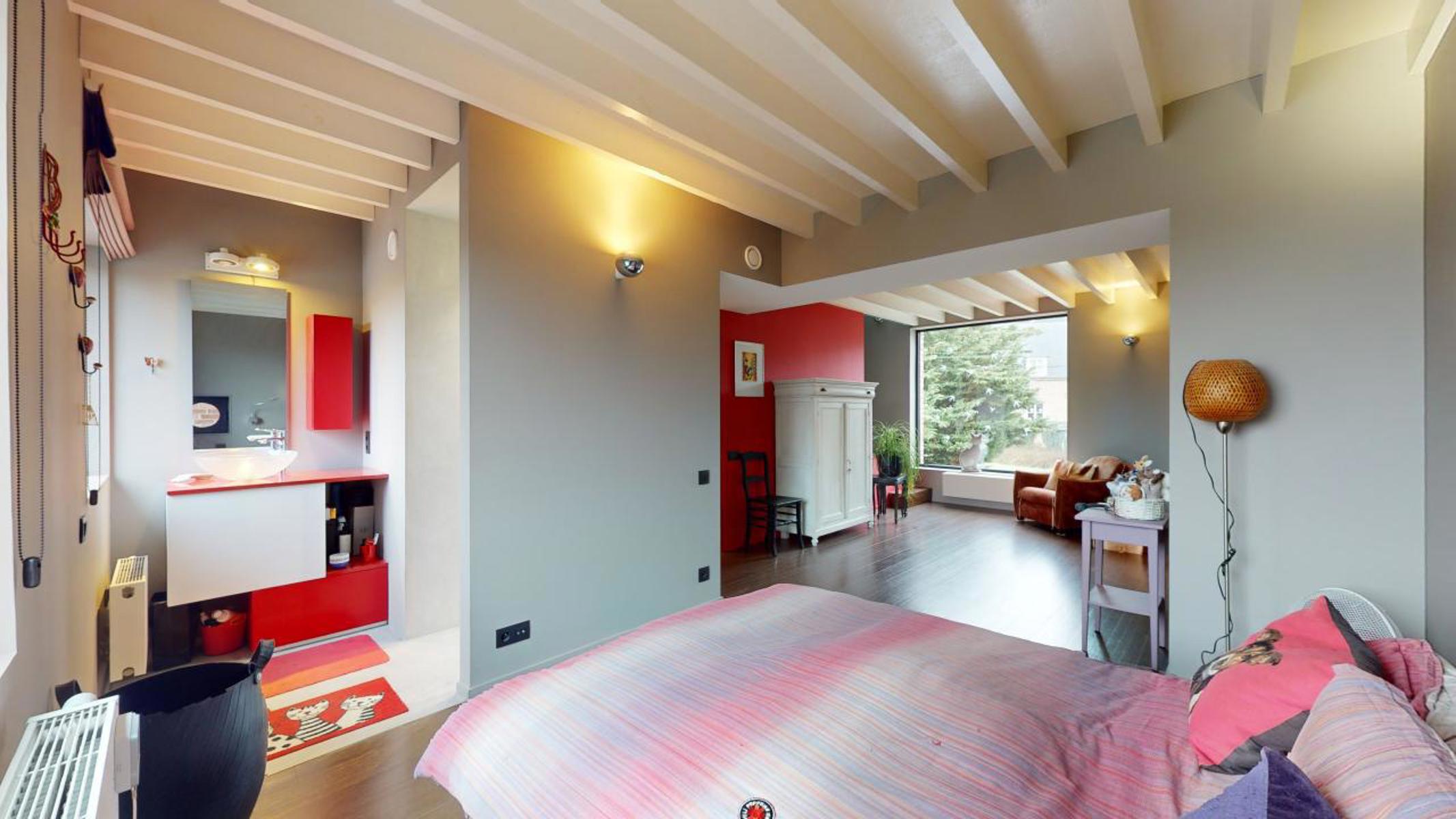 Dans un environnement calme et verdoyant de Wauthier-Braine, By the Way vous présente cette charmante maison 4 façades, entièrement rénovée avec goût, d’une superficie net habitable de +/-131 m2 sise sur un terrain de 3 ares 67 ca. Elle est composée comme suit : Au Rez-de-chaussée : Hall d’entrée avec WC, grande et lumineuse pièce de séjour de +/-44m2 avec cuisine ouverte, s’ouvrant sur une belle terrasse de +/- 25m2, avec accès au jardin, tous deux orientés au sud-ouest. Au 1er étage : Hall de nuit avec WC, grande chambre de +/- 27m2, salle de douche avec douche à l’italienne. Au 2ème étage : grande chambre de +/- 33m2 (potentiellement 2 chambres). Au sous-sol : caves avec coin buanderie et chaufferie. La maison bénéficie d’un très bon PEB B. Isolation par l’intérieur. VMC double flux. Nouvelle toiture (acier Corten). Châssis à double vitrage en alu. Chaudière à condensation au mazout (chauffage par le sol au rez-de-chaussée). Citerne d’eau de pluie. Electricité conforme. 2 emplacements de parking et 1 carport. Alarme. Revenu cadastral : 936€. Précompte immobilier : 827,53€. A découvrir sans tarder !