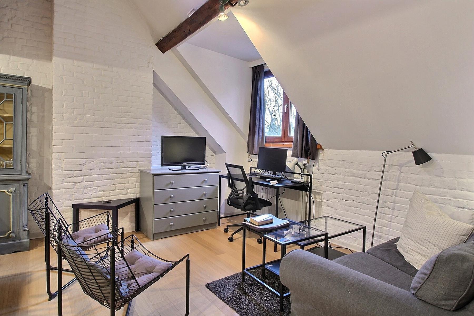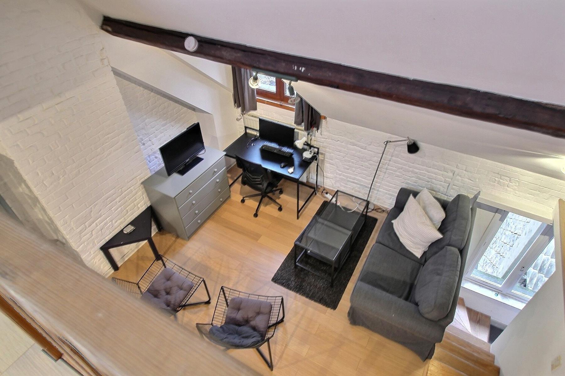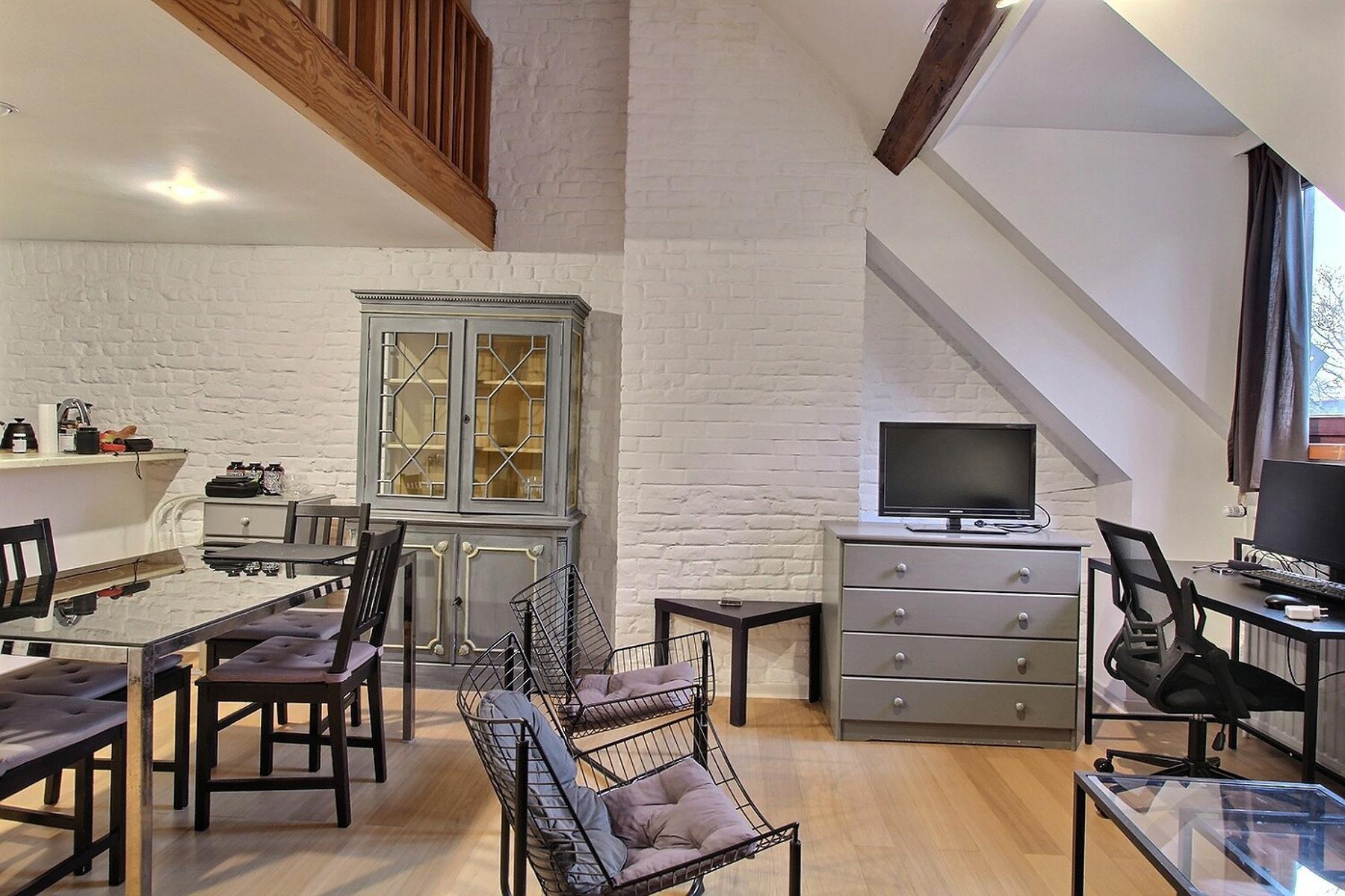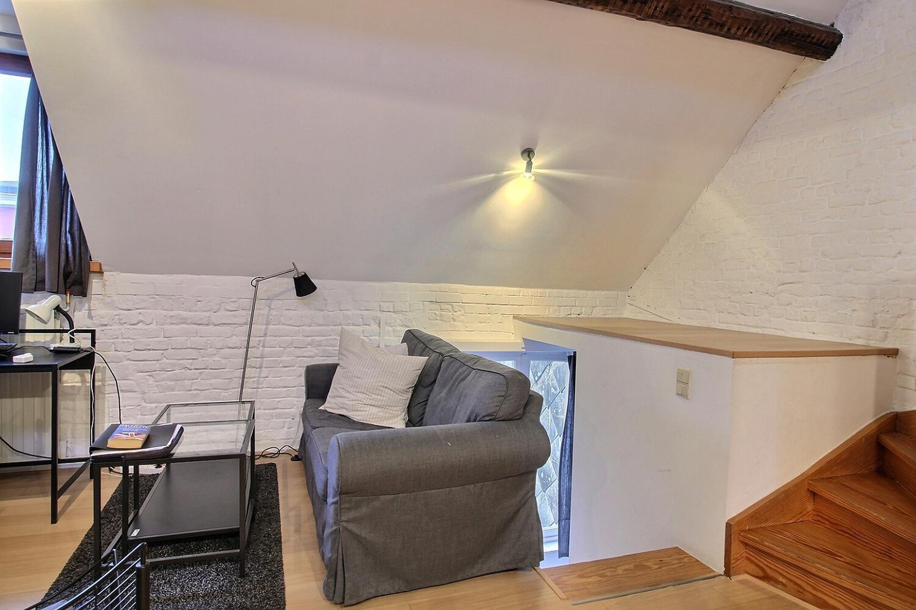 Rue du Président 33 – 1050 Ixelles. A proximité de la place Stéphanie, By the Way vous présente ce bel appartement duplex MEUBLÉ de 2 chambres au 3e étage d’un immeuble de 3 étages sans ascenseur. Composition : Séjour lumineux avec cuisine ouverte équipée et une chambre avec sa salle de douche et Wc. A l’étage, une chambre en mezzanine avec également sa salle de douche et Wc. L’immeuble dispose d’une buanderie commune située au sous-sol. L’appartement jouit d’une localisation idéale grâce à sa bonne accessibilité à pied, à vélo, en voiture et à sa proximité des transports en commun (tram et bus). Charges: Forfait de 120 €/mois comprenant : la production d’eau chaude, chauffage, commun et frais copropriété privatifs imputables au locataire. L’eau froide, l’électricité et la connexion internet sont à charge du locataire de manière individuelle. Disponible le 1/2/25. PEB G