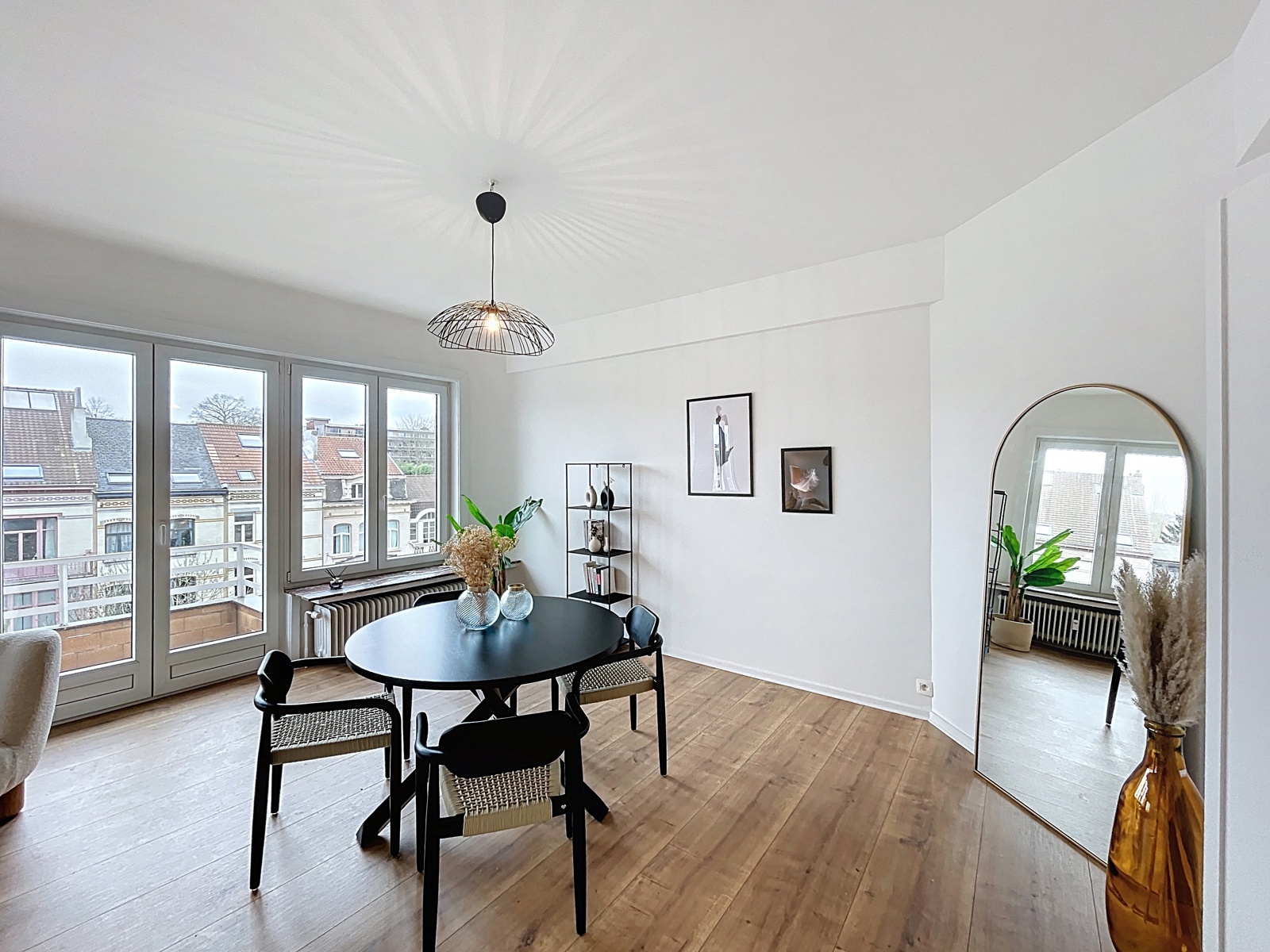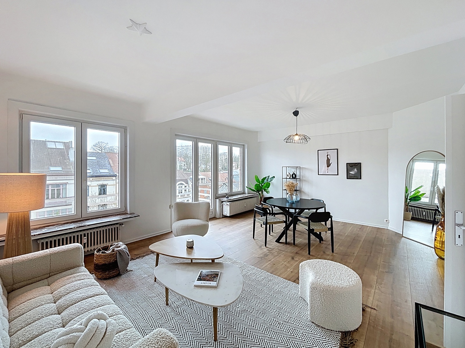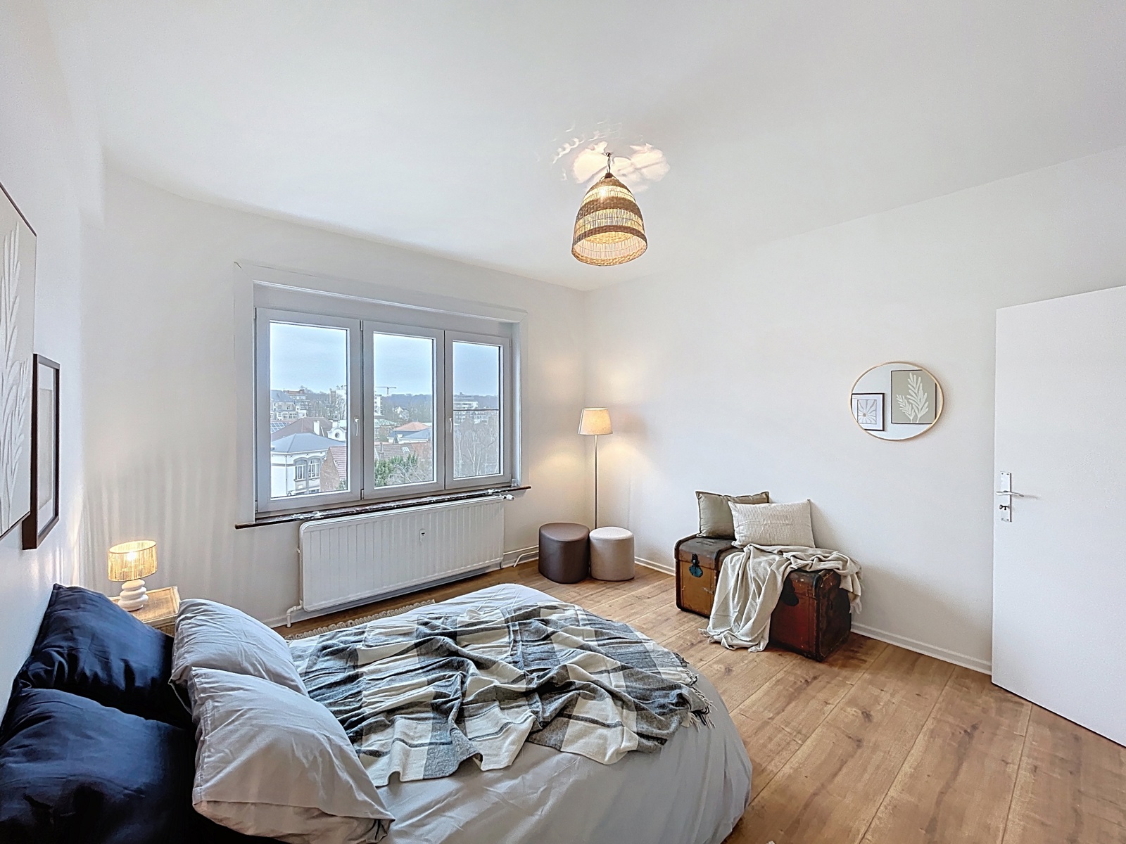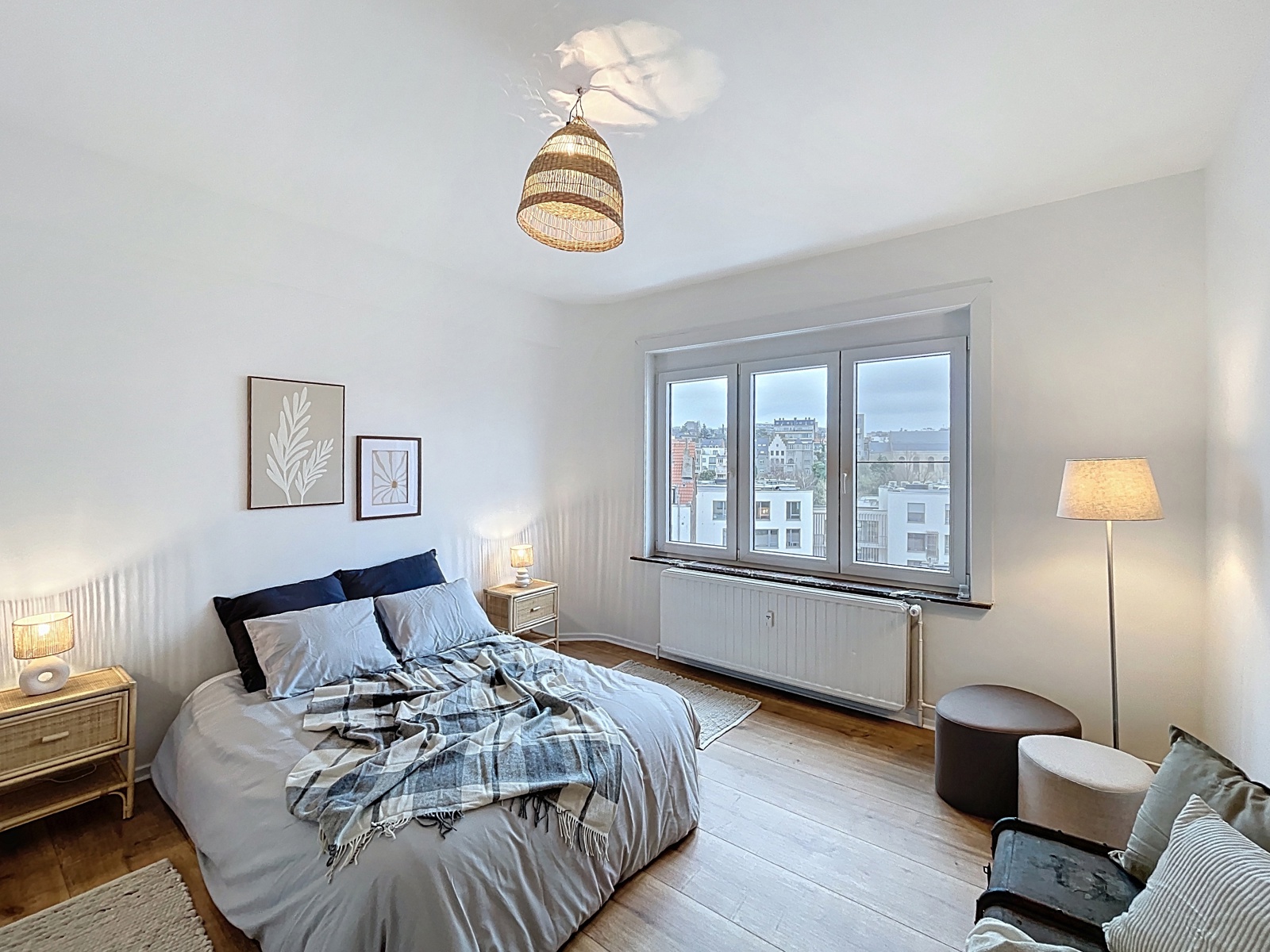 Situé sur la Chaussée d’Alsemberg à Uccle, à proximité du parc de Wolvendael (1km), des axes routiers et des transports en commun (trams, bus) au 5e étage avec ascenseur, By the Way vous propose ce charmant appartement 1 chambre de +/- 75m2 bruts entièrement rénové. L’appartement se compose comme suit : hall d’entrée, vaste et lumineux séjour de +/- 30m2 , une salle de douche, WC séparé, une chambre de +/- 15m2, une cuisine super-équipée et deux balcons avec une vue totalement dégagée. Une cave privative vient compléter ce bien. Techniques : Toiture rénovée en 2024, châssis de 2014 double vitrage PVC, adoucisseur d’eau, moustiquaires, antenne Proximus sur le toit, électricité conforme jusqu’en 2039. Charges +/- 190€ par mois comprenant, les frais administratifs, chauffage, eau, électricité des communs, entretien des communs, ascenseur. PEB F, chaudière commune au gaz de 2010, RU disponibles. Pour plus d’informations, veuillez contacter : Charlotte Arrobio +32 471 27 72 52 charlotte@bytheway.be – https://biens.bytheway.immo/alphonse-602/