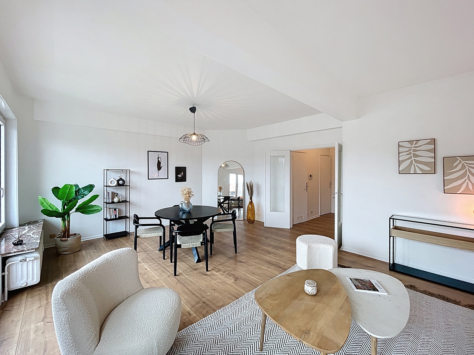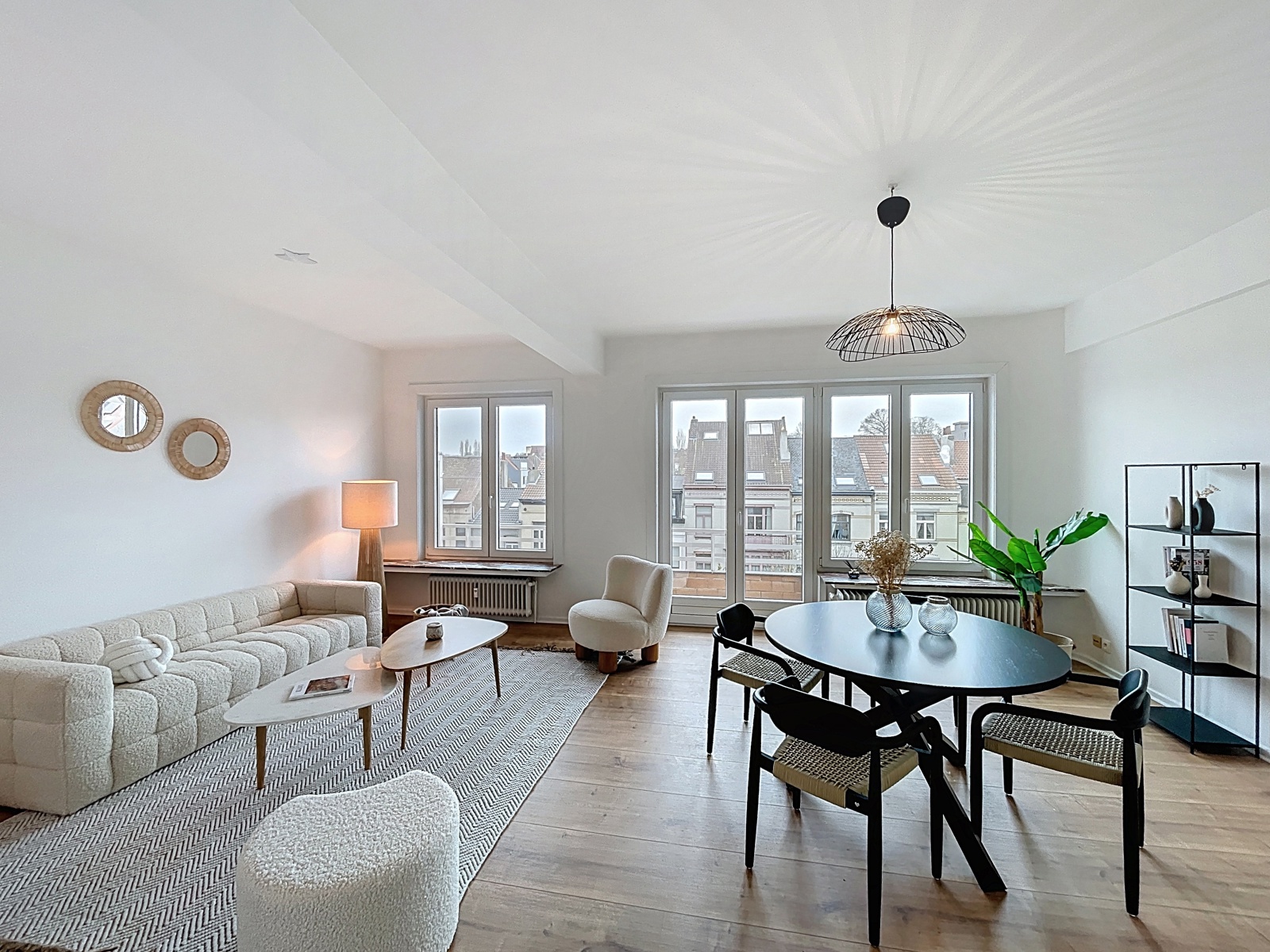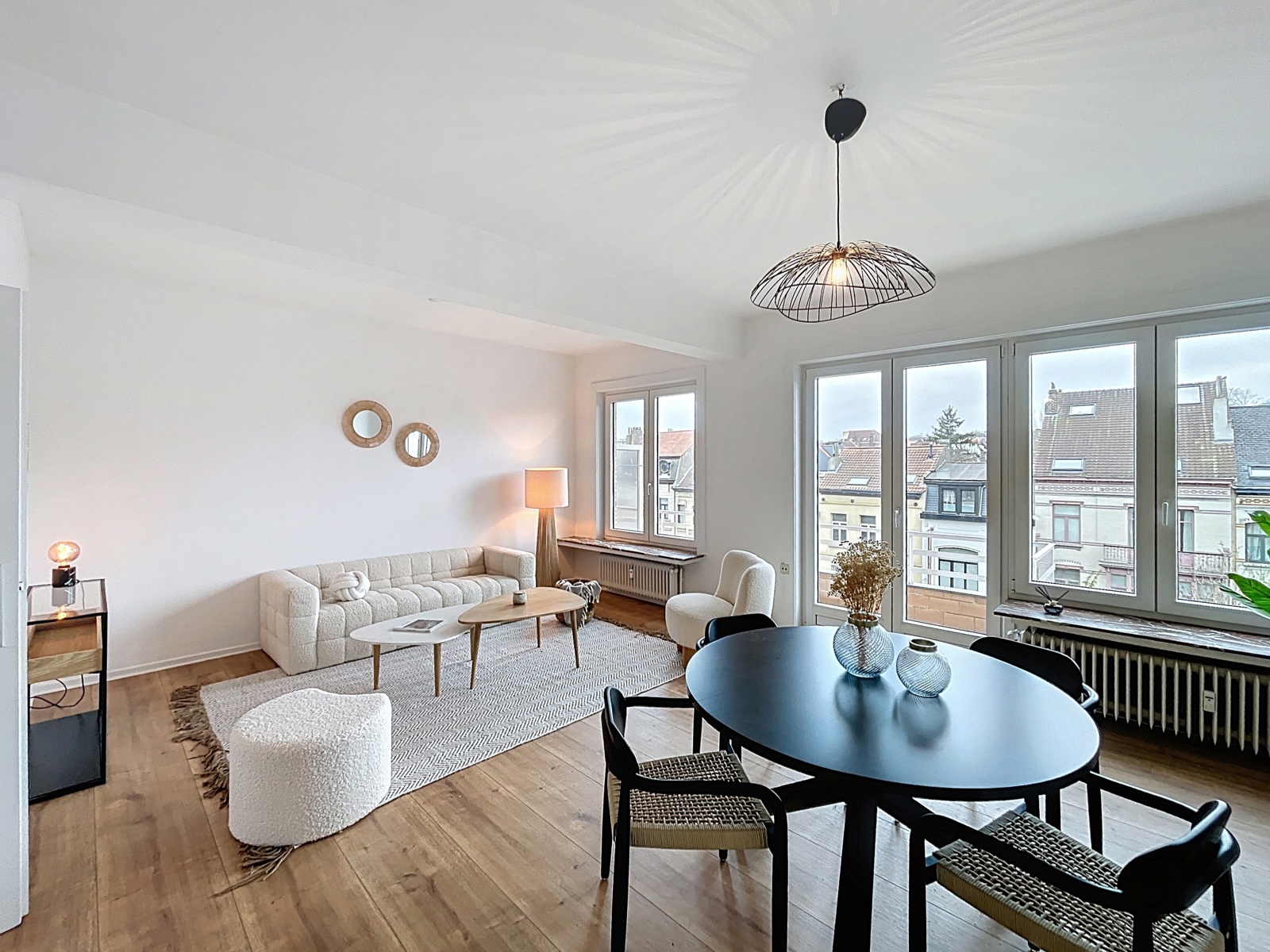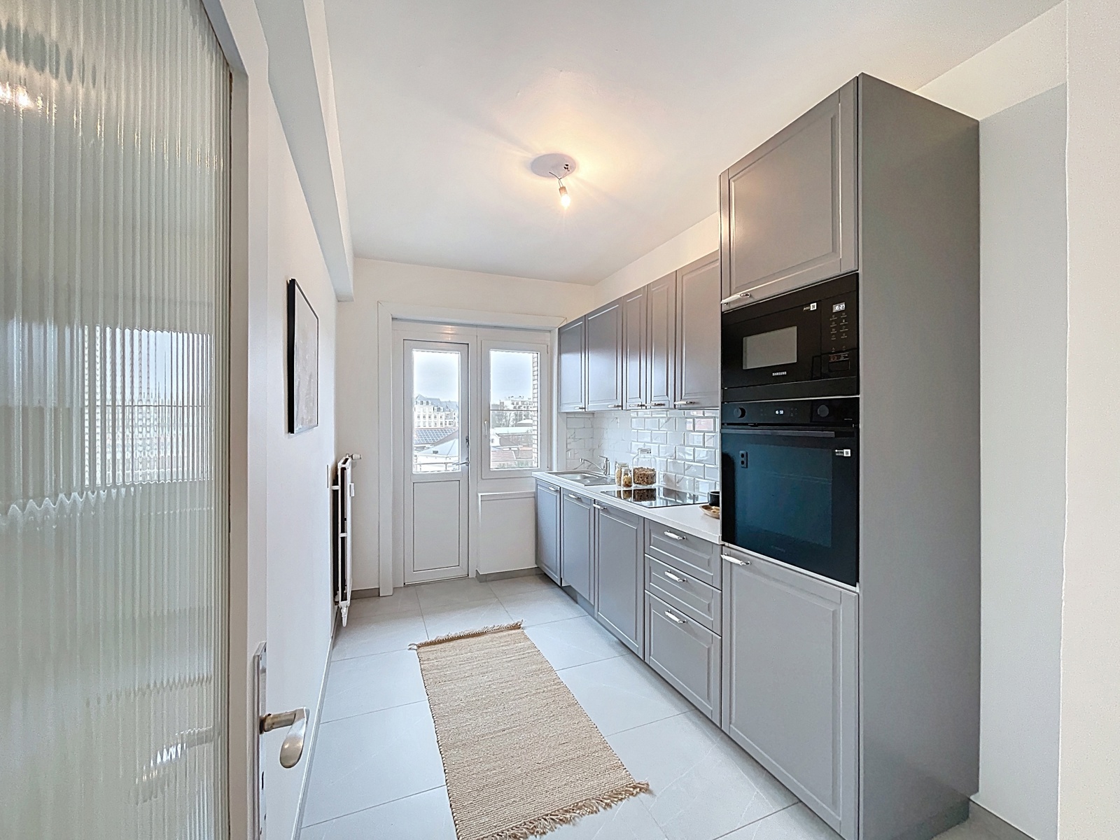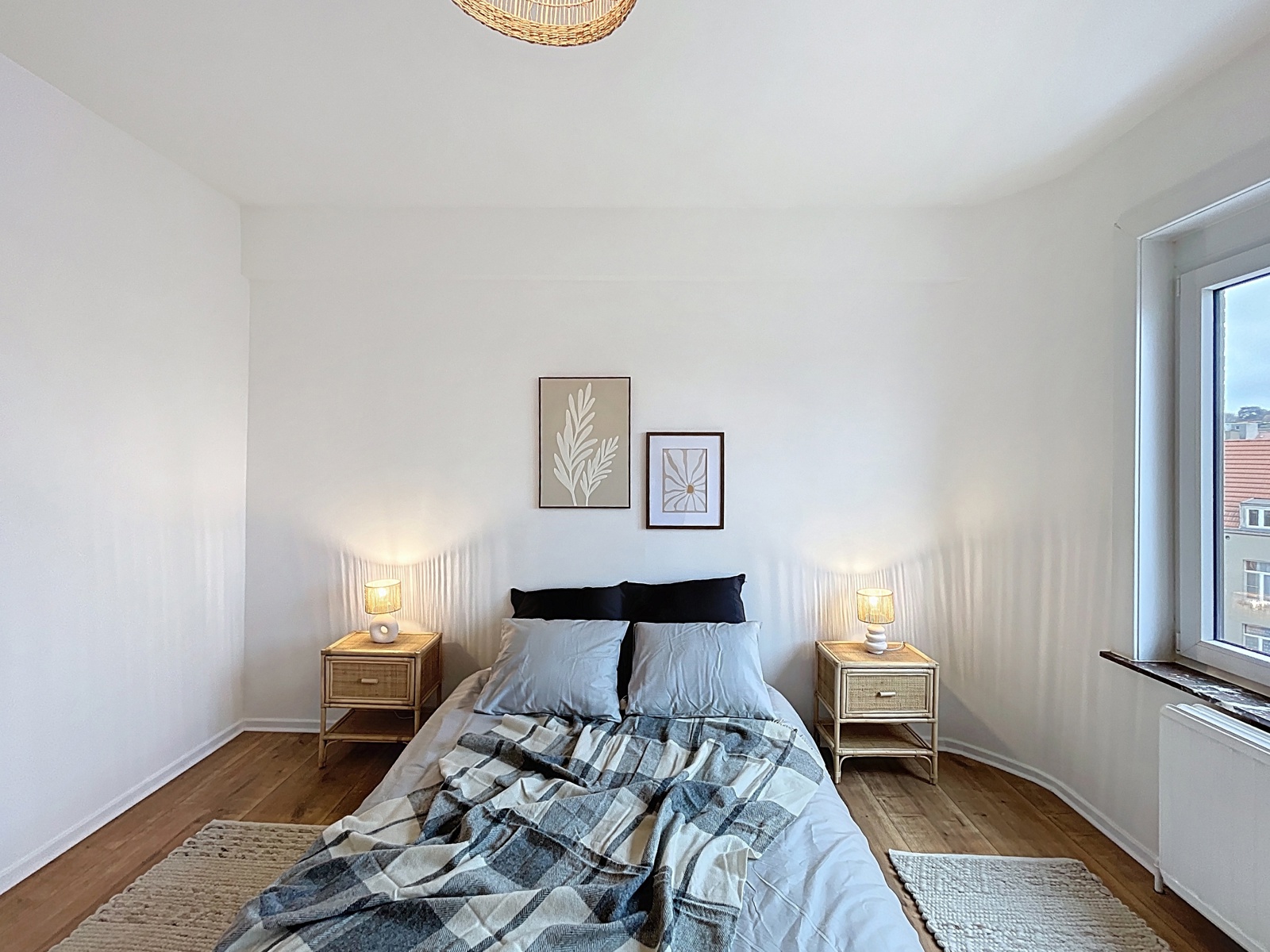 Situé sur la Chaussée d’Alsemberg à Uccle, à proximité du parc de Wolvendael (1km), des axes routiers et des transports en commun (trams, bus) au 5e étage avec ascenseur, By the Way vous propose ce charmant appartement 1 chambre de +/- 75m2 bruts entièrement rénové. L’appartement se compose comme suit : hall d’entrée, vaste et lumineux séjour de +/- 30m2 , une salle de douche, WC séparé, une chambre de +/- 15m2, une cuisine super-équipée et deux balcons avec une vue totalement dégagée. Une cave privative vient compléter ce bien. Techniques : Toiture rénovée en 2024, châssis de 2014 double vitrage PVC, adoucisseur d’eau, moustiquaires, antenne Proximus sur le toit, électricité conforme jusqu’en 2039. Charges +/- 190€ par mois comprenant, les frais administratifs, chauffage, eau, électricité des communs, entretien des communs, ascenseur. PEB F, chaudière commune au gaz de 2010, RU disponibles. Pour plus d’informations, veuillez contacter : Charlotte Arrobio +32 471 27 72 52 charlotte@bytheway.be – https://biens.bytheway.immo/alphonse-602/