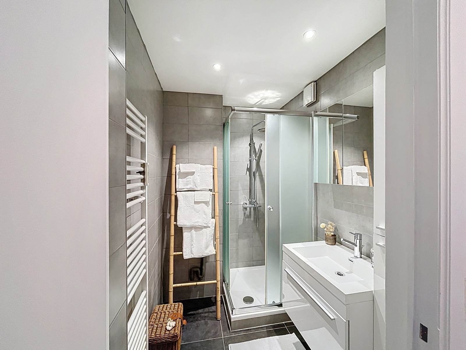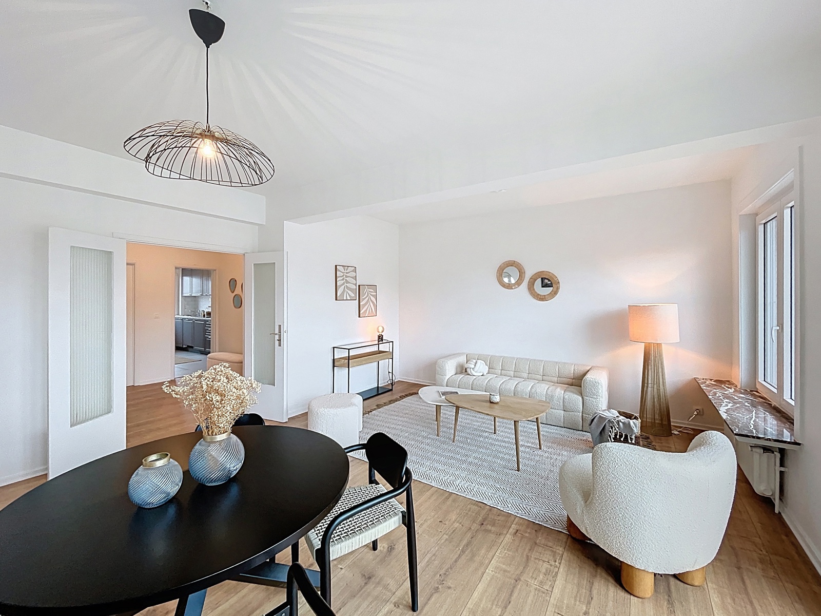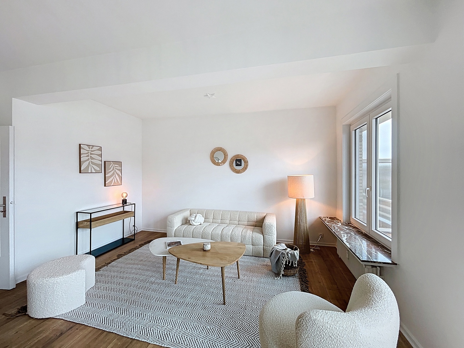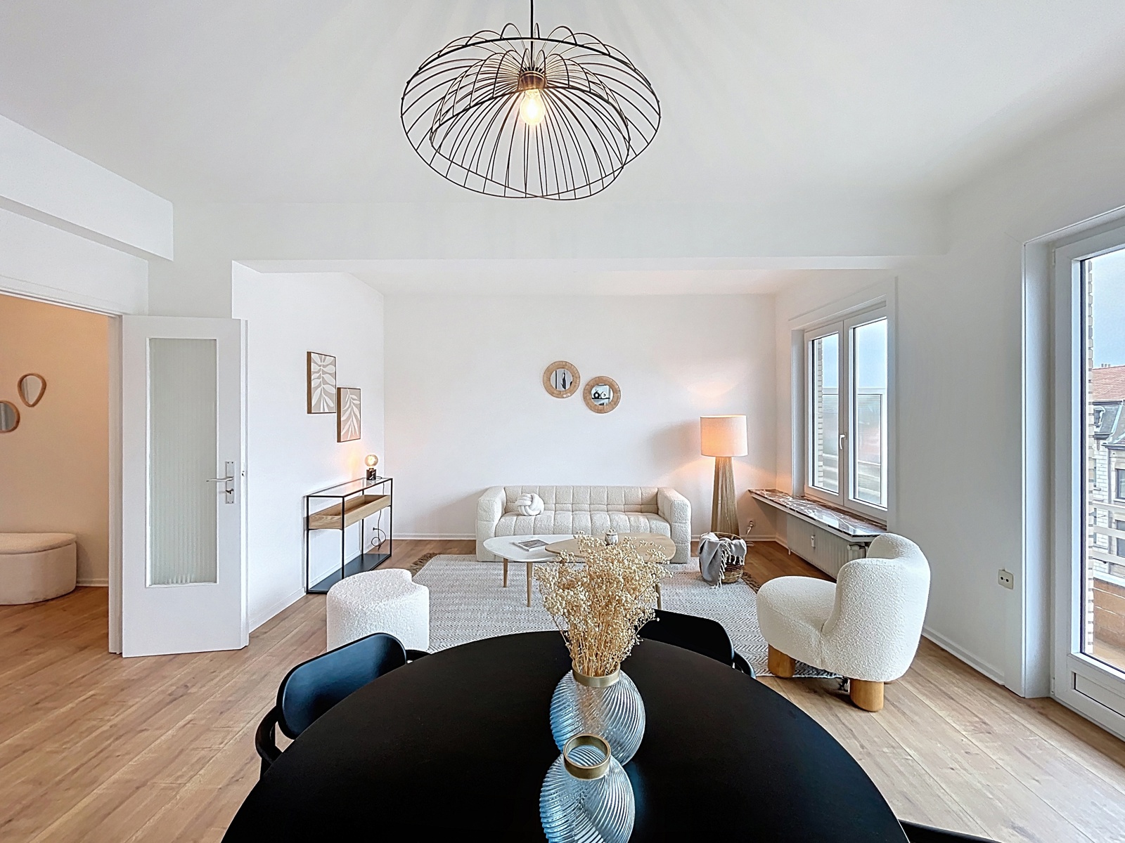 Situé sur la Chaussée d’Alsemberg à Uccle, à proximité du parc de Wolvendael (1km), des axes routiers et des transports en commun (trams, bus) au 5e étage avec ascenseur, By the Way vous propose ce charmant appartement 1 chambre de +/- 75m2 bruts entièrement rénové. L’appartement se compose comme suit : hall d’entrée, vaste et lumineux séjour de +/- 30m2 , une salle de douche, WC séparé, une chambre de +/- 15m2, une cuisine super-équipée et deux balcons avec une vue totalement dégagée. Une cave privative vient compléter ce bien. Techniques : Toiture rénovée en 2024, châssis de 2014 double vitrage PVC, adoucisseur d’eau, moustiquaires, antenne Proximus sur le toit, électricité conforme jusqu’en 2039. Charges +/- 190€ par mois comprenant, les frais administratifs, chauffage, eau, électricité des communs, entretien des communs, ascenseur. PEB F, chaudière commune au gaz de 2010, RU disponibles. Pour plus d’informations, veuillez contacter : Charlotte Arrobio +32 471 27 72 52 charlotte@bytheway.be – https://biens.bytheway.immo/alphonse-602/