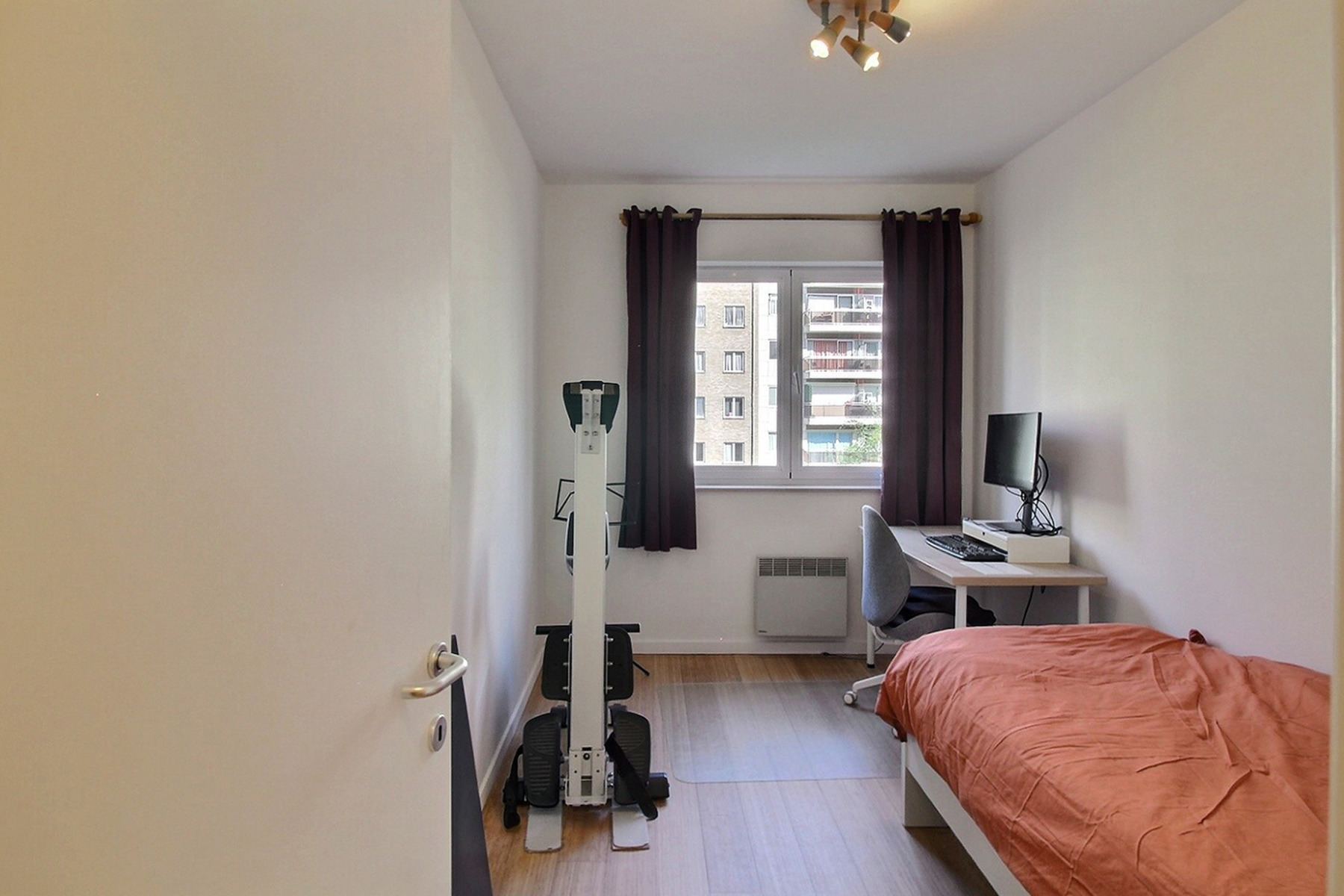 En attente de la signature du bail. Situé sur la commune de Molenbeek, non loin de la Basilique Nationale du Sacré-Cœur, proche de toutes commodités et des transports en commun (bus, trams, métros), By the Way vous propose ce bel appartement de caractère de +/- 110m2 bruts MEUBLÉ, au 3ème étage avec ascenseur d’un immeuble de 9ème étage. L’appartement se compose comme suit : un grand et lumineux séjour avec du parquet en bambou massif, de +/- 30m2, donnant accès à une terrasse orientée Sud-Est, une cuisine ouverte totalement équipée, rénovée en 2025, deux premières chambres de +/- 9m2 et une chambre parentale de +/- 14m2 avec une vue dégagée, une salle d’eau avec douche à l’italienne rénovée en 2024. Techniques : PEB E, électricité conforme, charges +/- 100 euros, chauffage électrique, boiler à eau chaude, visiophone, Internet Haut débit – Fibre optique, entrée sécurisée. Pour plus d’informations, veuillez contacter Charlotte Arrobio – 0471 27 72 52 – charlotte@bytheway.be