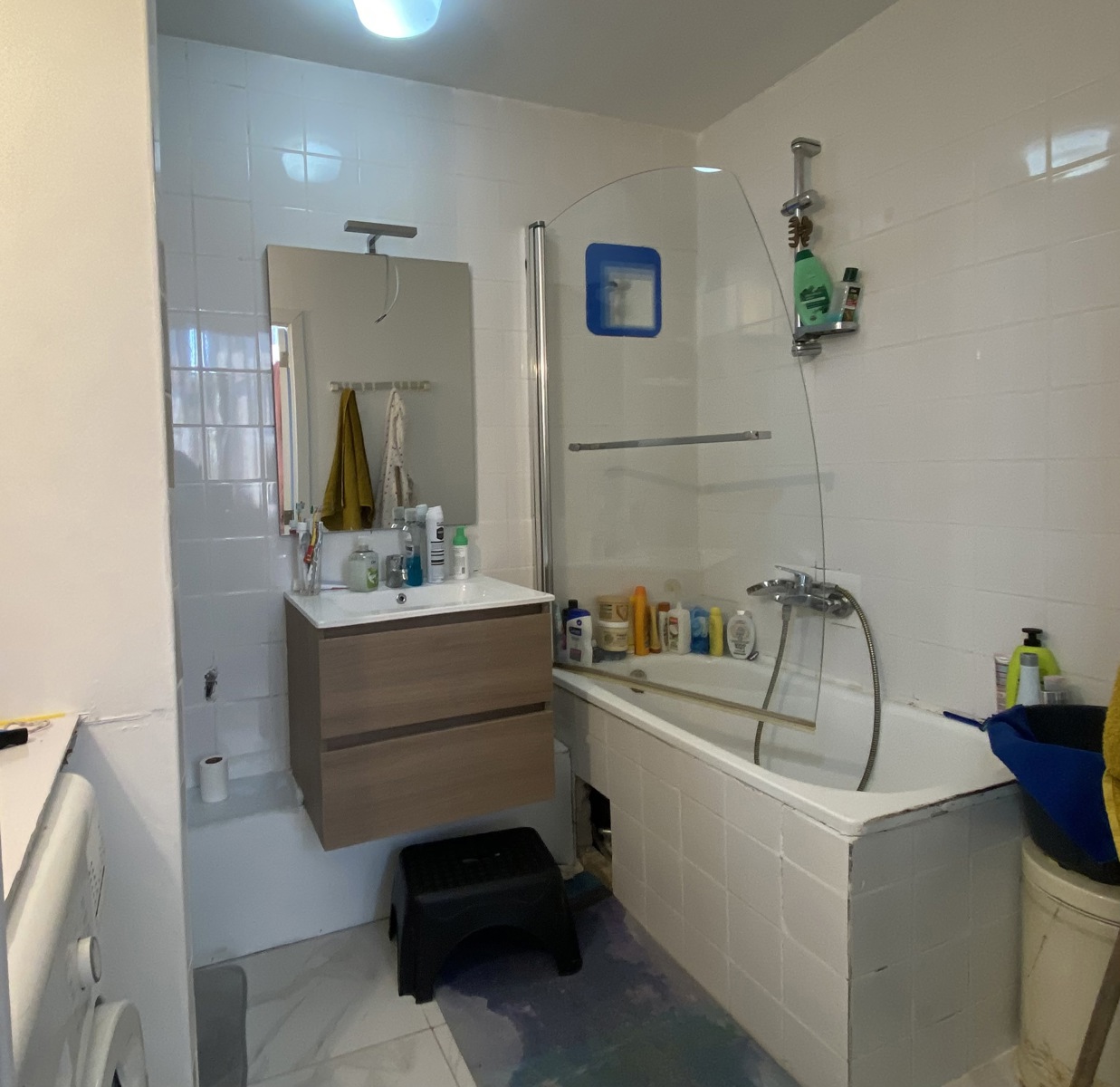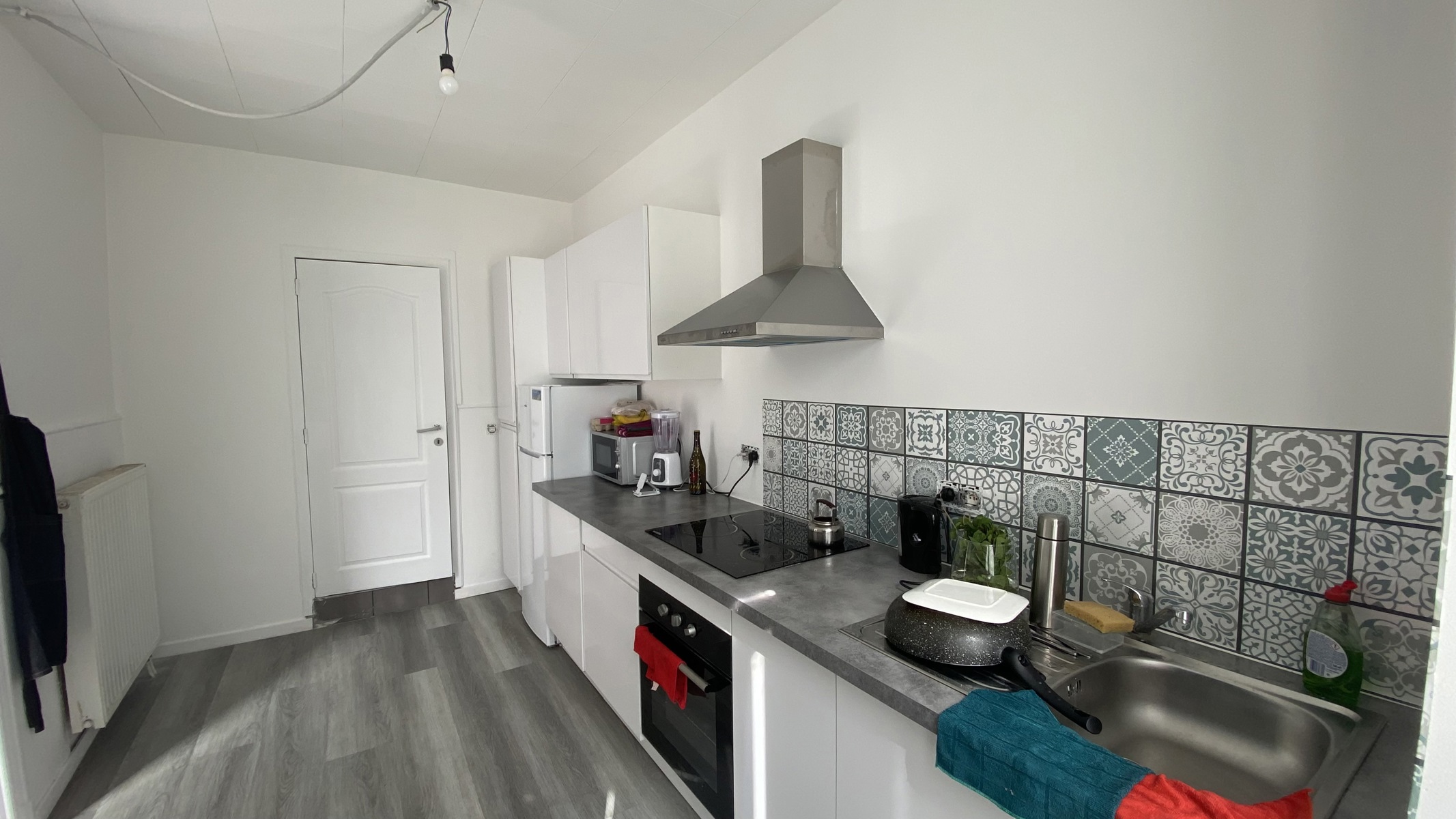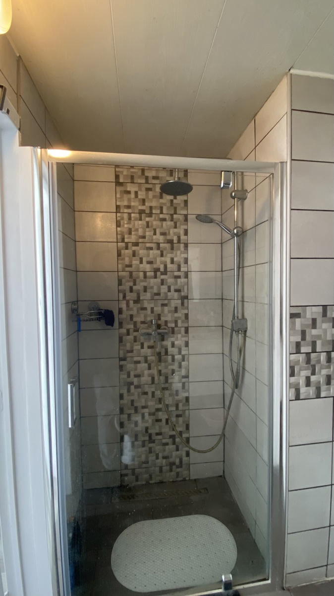 3ème étage : appartement 59m² 1 chambre, salon, cuisine équipée, salle de douche, terrasse 15m², loyer 900€, PEB = G.