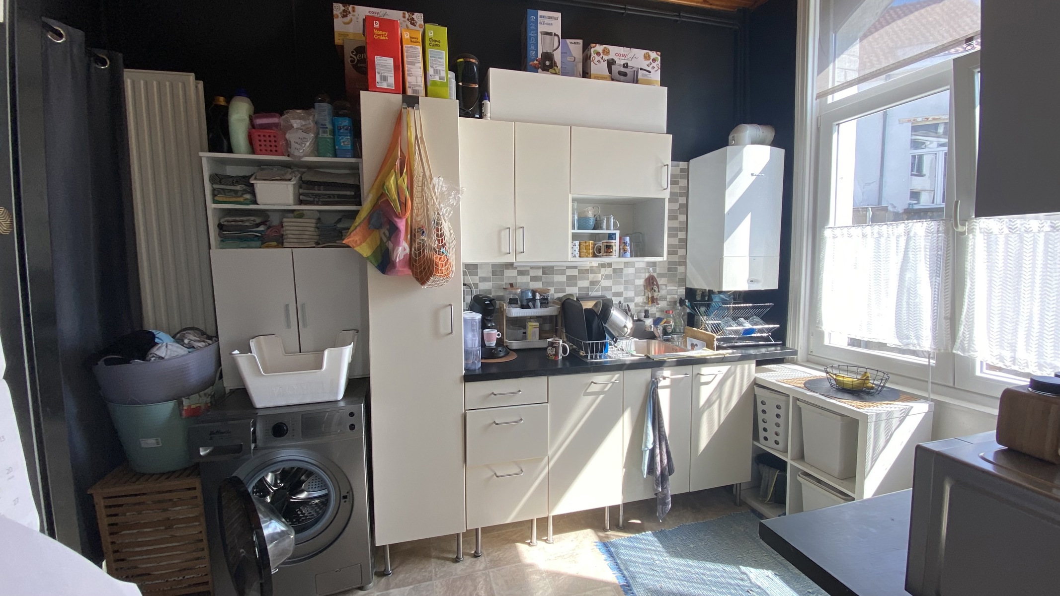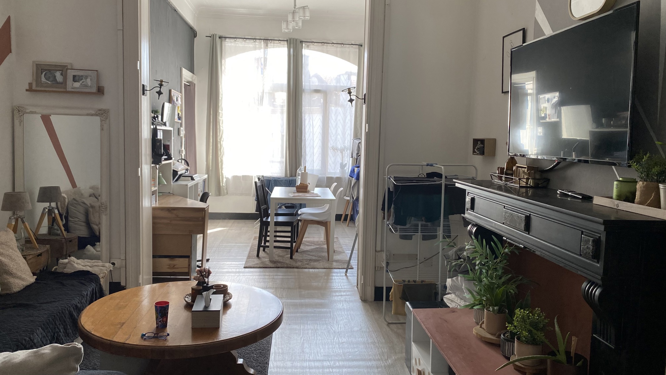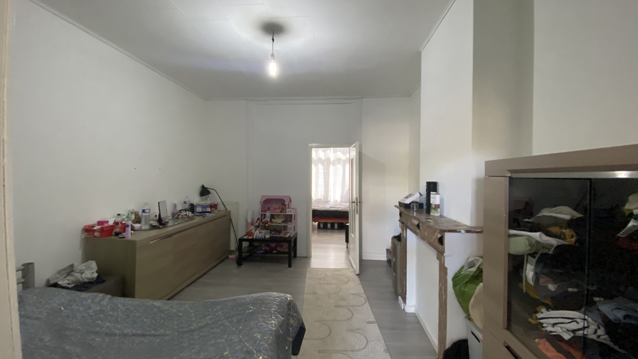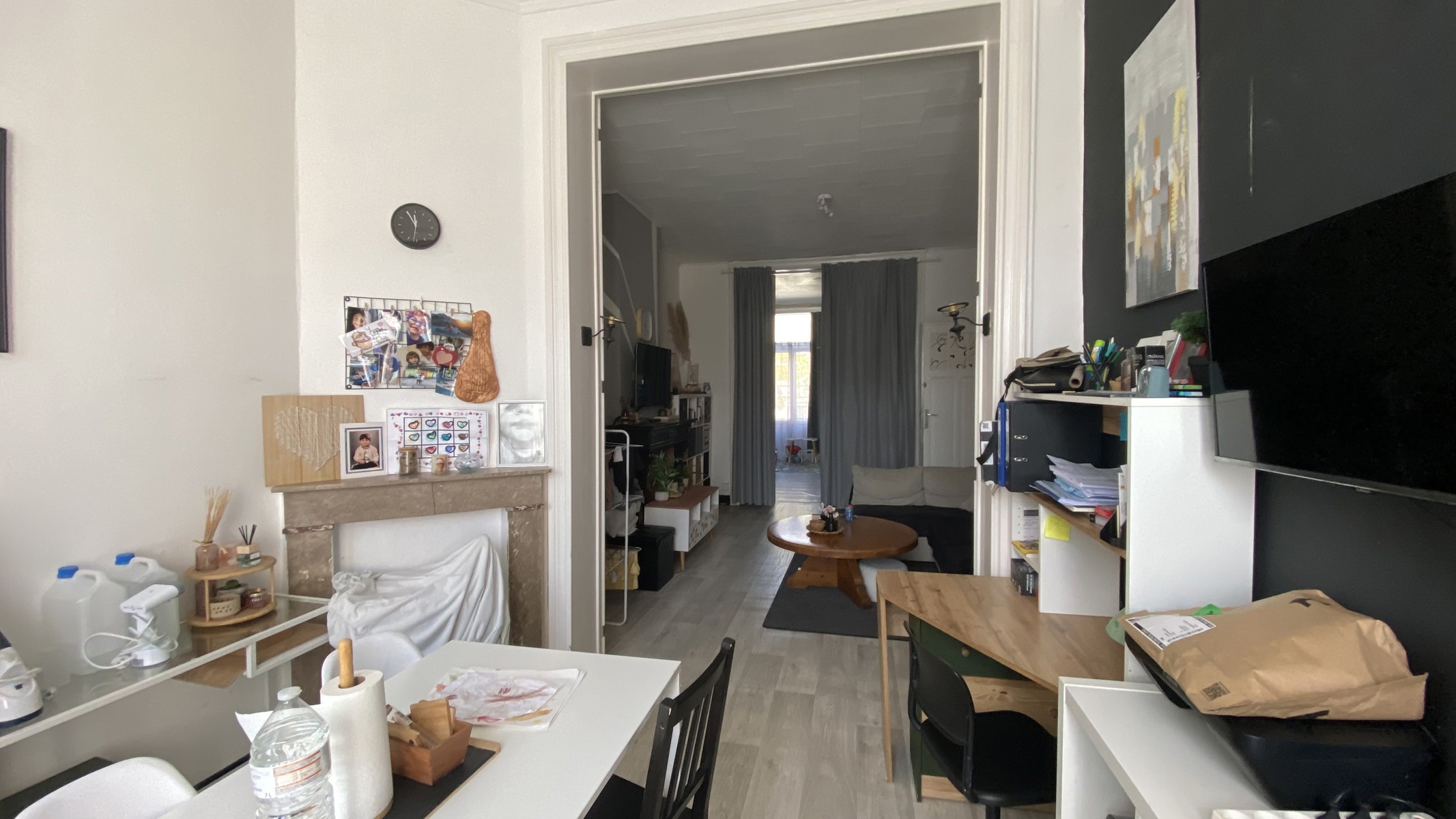 Sous-sol : 4 caves privatives pour chaque appartement, grande cave de rangement, pièce pour les compteurs eau et gaz. Rez-de-chaussée : appartement 79m² 1 chambre, salon, salle à manger, cuisine equipée, salle de douche, terrasse et jardin 55m², loyer 850€, PEB = G.