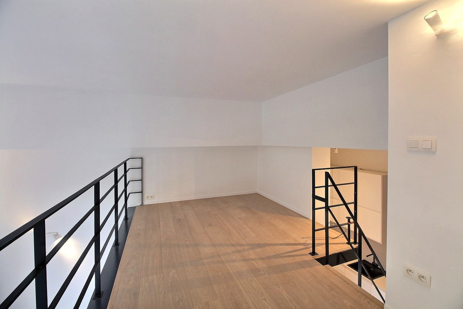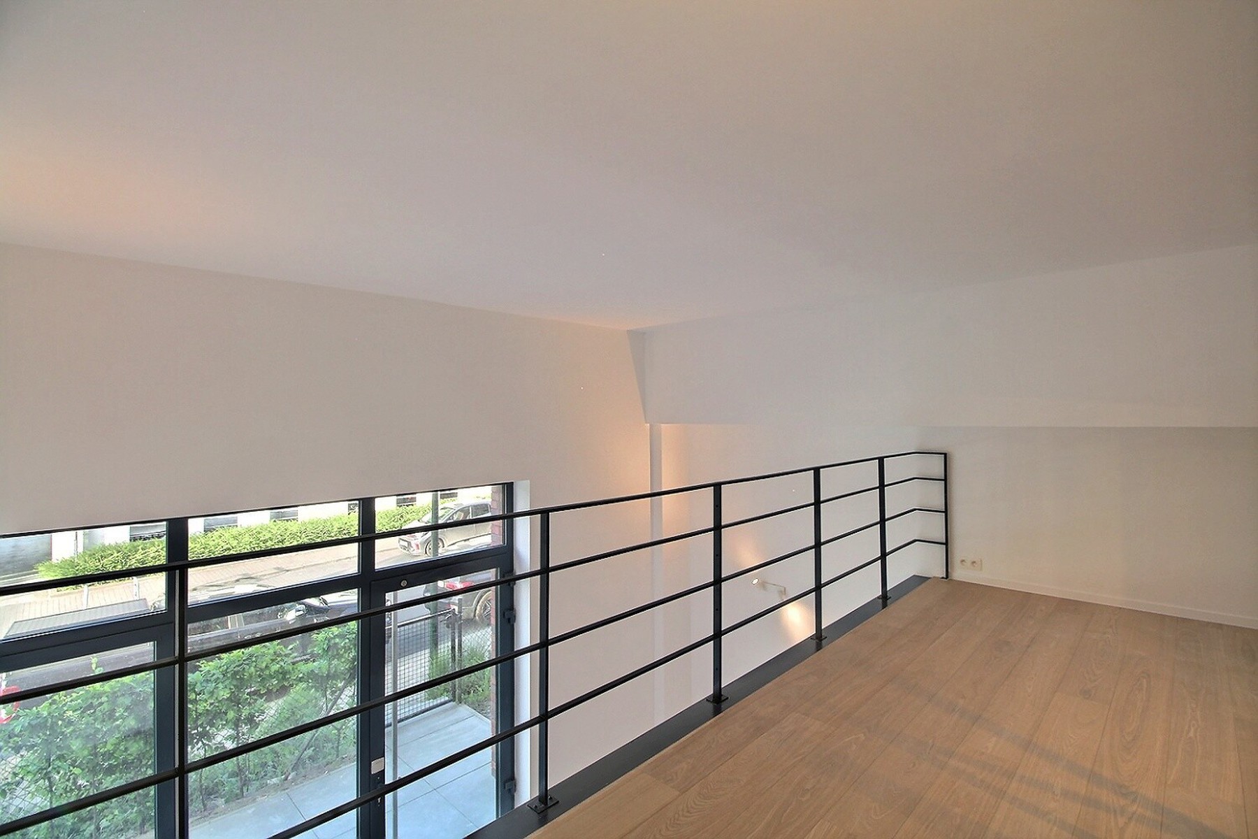 Il se compose comme suit : un lumineux séjour de +/- 32m2 grâce à la grande baie vitrée s’ouvrant sur une jolie terrasse avant arborée de 14,5m2, une cuisine super équipée de +/- 9m2, une salle de douche avec WC de 5,5m2, une buanderie équipée de raccordements pour la machine à laver, un espace vestiaire et rangement. En mezzanine, un espace chambre de +/-12m2. L’appartement est pourvu de luminaires, de stores et tentures. L’appartement bénéficie d’un très bon PEB prévisionnel (B+). Chaudière à condensation au gaz. Chauffage au sol. Système de ventilation double flux. Châssis aluminium à double vitrage. Compteurs individuels (eau, gaz et électricité). Loyer : 1075€/mois + 75€/mois de provision pour les charges communes (honoraires du Syndic, assurance, entretien des jardins, entretien des communs). Disponible immédiatement !