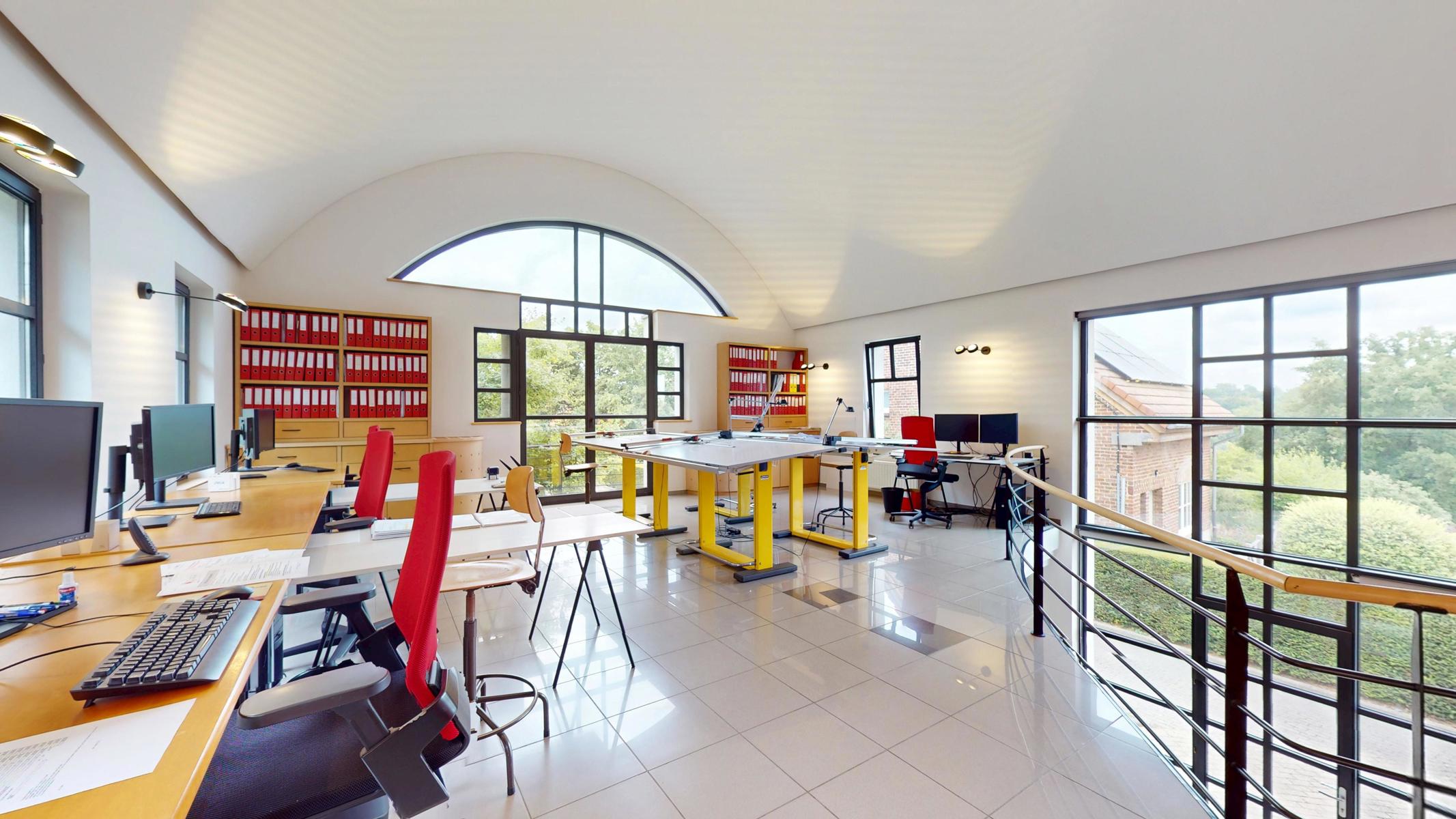 IVilla moderne spacieuse aménagée actuellement en bureaux en très bon état général et avec des matériaux de qualité (sols en carrelage et plancher de chêne, balustrades en métal peintes). Possibilité de reconversion en 4 chambres, 2 salles d’eau avec plans projetés. Jardin actuellement offrant la possibilité d’ un parking de 10 voitures. Il y a également un emplacement extérieur pour deux voitures à l’avant de la maison. Elle se situe dans un quartier calme de type résidentiel en zone rurale. L’accessibilité des moyens de communication est aisée avec le bus à 300m et la gare de Genval proche. La villa est aussi bien située par rapport aux écoles et aux Papeteries de Genval. Elle se compose comme suit: Au rez de chaussée: Hall, vestiaire, cage d’escaliers, accueil, secrétariat, grand bureau paysager de +/- 80 m2 avec escalier vers le sous-sol . Au premier étage: Cage d’escalier, deux grandes salles de réunion de +/- 24 et 16 m2 avec mezzanine vers bureau paysager. Grenier aménagé en deux grandes pièces avec WC. Sous-sols: Une cuisine équipée (frigo, hotte, taque, évier) pour le personnel, locaux techniques, logette WC. Alarme. Téléphone, télédistribution. Reliée aux égouts, les murs et la toiture du grenier sont isolés, le chauffage central est au gaz (Chaudière à condensation) avec des radiateurs équipés de vannes thermostatiques. Bon PEB C. Toutes les informations (plans, vidéo, visite 3D) via le lien suivant : https://bytheway.immo/bien/6964781-jb-stouffs-31/. Infos et visites, contactez – Frédérique : 0497 469 556 – frederique@bytheway.be.