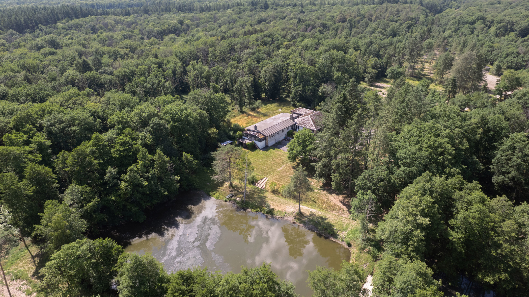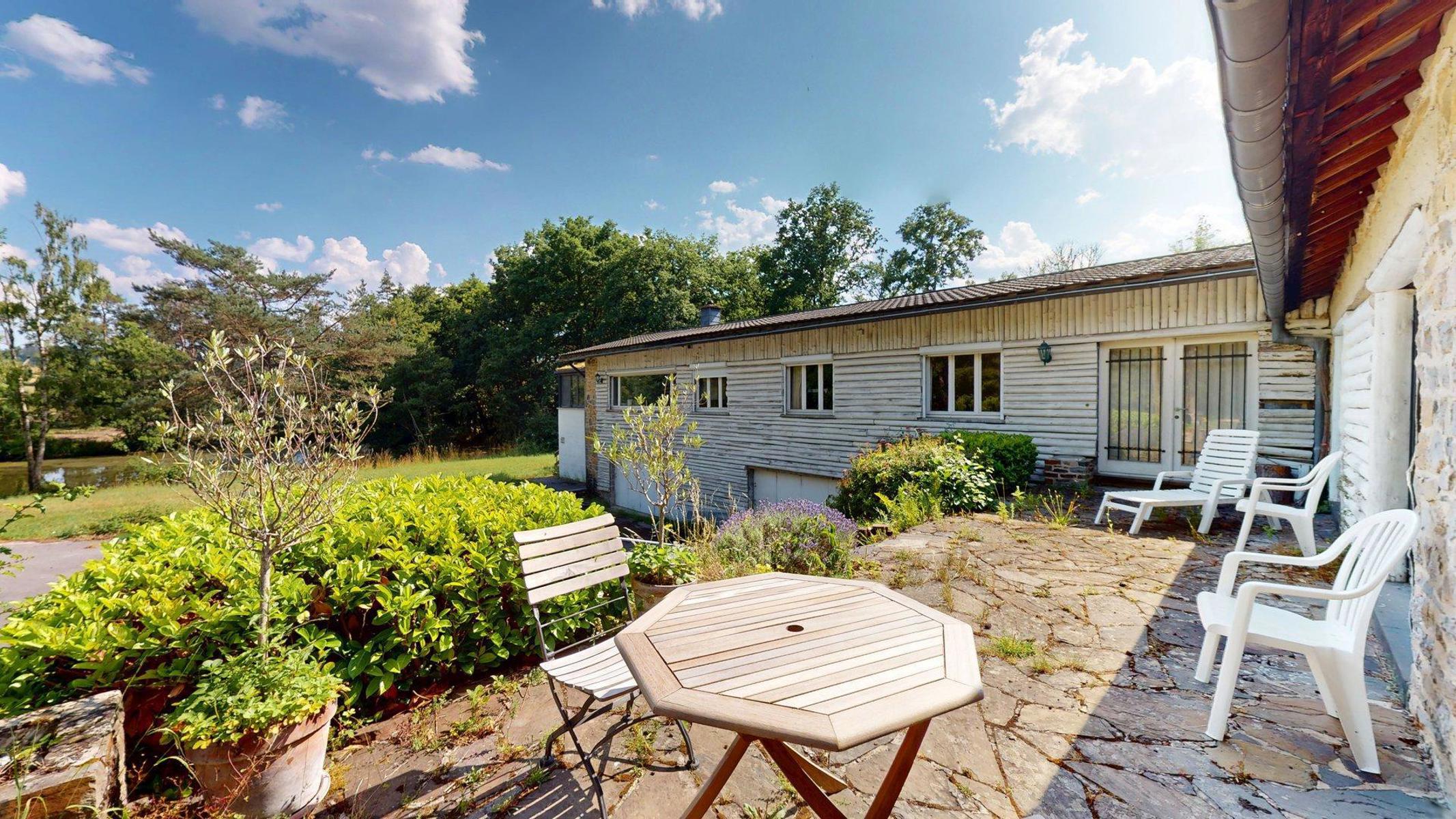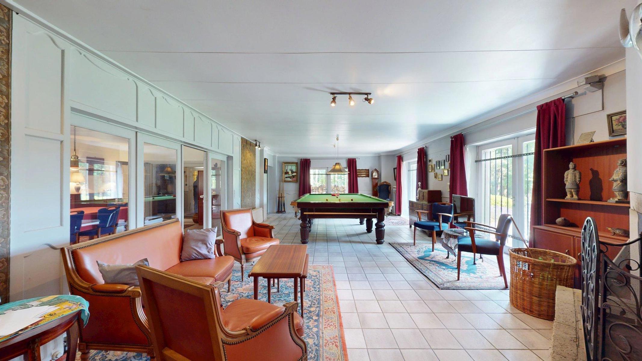 À quelques minutes de Marche-en-Famenne, au bout d’une impasse et à l’abri des regards, ce domaine exceptionnel s’étend sur + de 10 ha au cœur d’un environnement naturel remarquable et préservé. Véritable havre de paix en pleine nature, il se compose d’une vaste habitation de +- 514 m² (selon PEB), d’une dépendance cadastrée de 72 m², de 2 étangs, de zones boisées sur plus de 7 ha et de 3 ha supplémentaires en zone agricole. Partiellement situé en zone Natura 2000, le site bénéficie d’un potentiel d’exploitation varié: résidence familiale ou secondaire, hébergement touristique, relais de chasse ou encore projet immobilier à caractère unique (sous réserve d’autorisations). L’habitation actuelle, scindable en 2 unités indépendantes, propose une configuration généreuse avec 33 pièces, dont 8 chambres, 3 salles de bains, 2 grands salons avec feu ouvert, salle de billard, 2 cuisines, 2 salles à manger, bureaux, nombreux espaces de rangement, atelier, caves et un garage fermé pour 3 véhicules. Un bien aussi rare qu’authentique, aux possibilités multiples, niché dans un écrin de verdure au cœur de la Famenne. TECHNIQUE: chaudière au mazout, électricité non conforme, 2 fosses sceptiques, puits privé pour l’alimentation en eau. PEB F, le logement nécessite une rénovation globale mais promet, à terme, une valorisation exceptionnelle.
