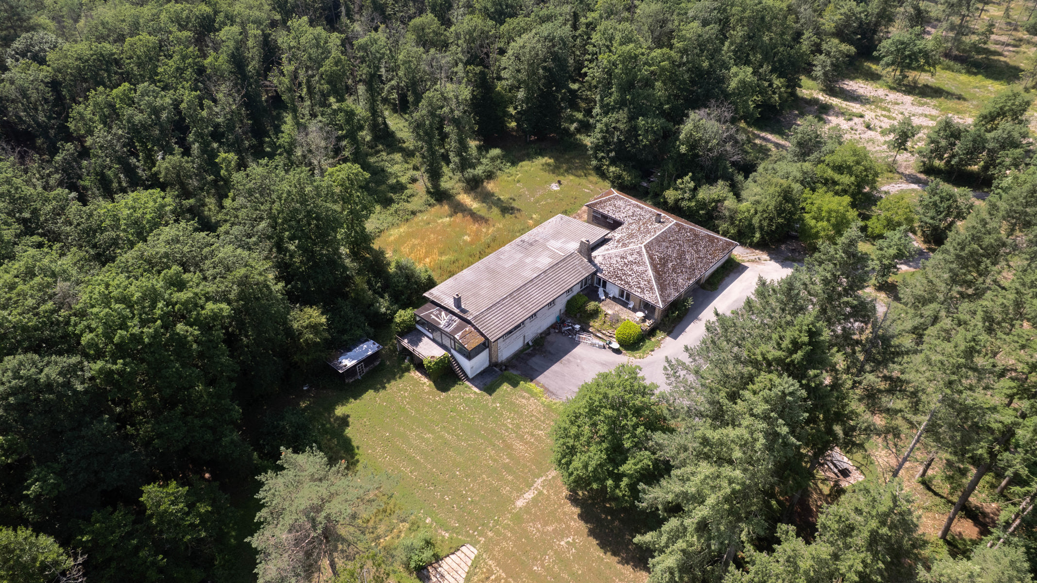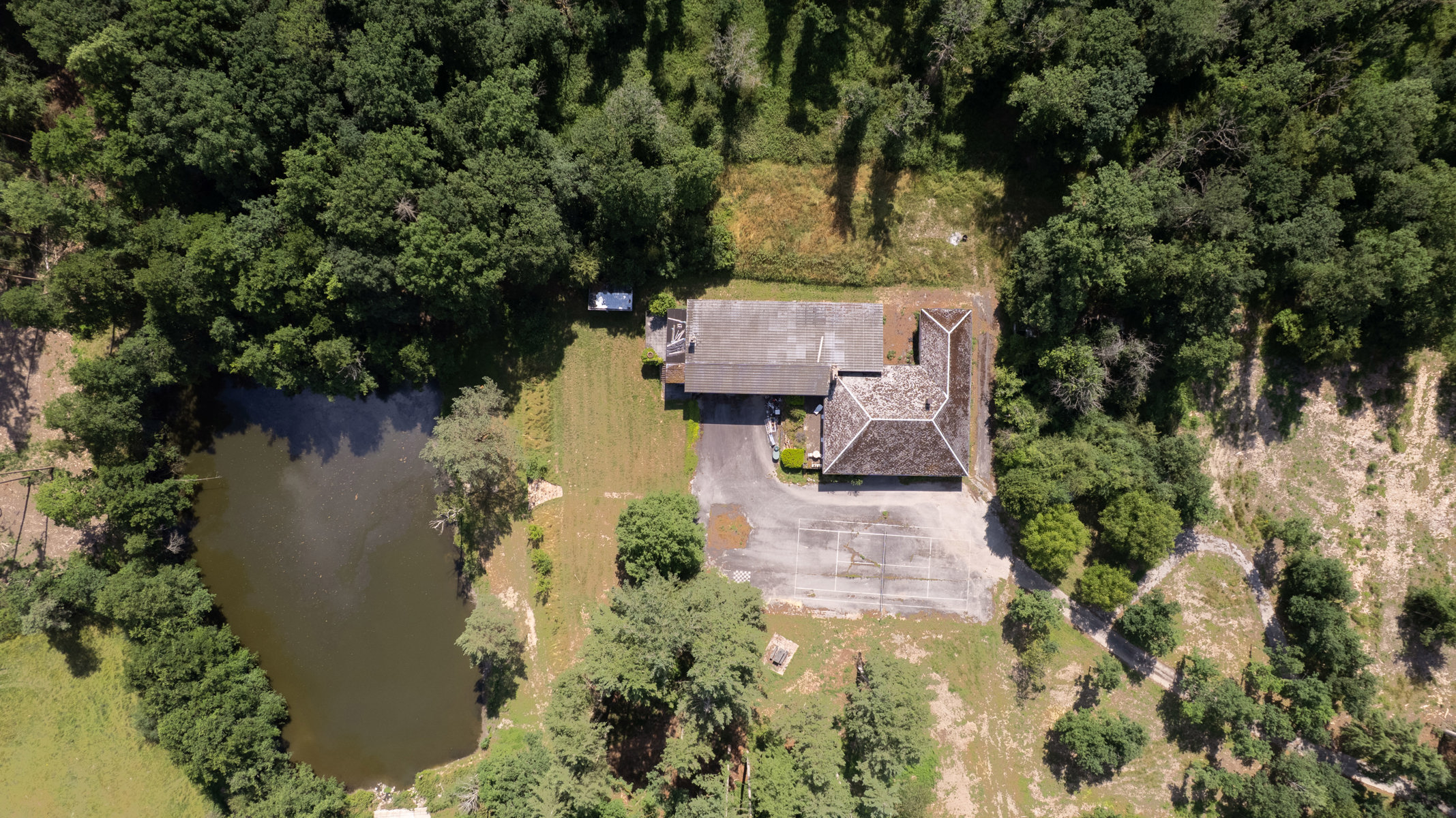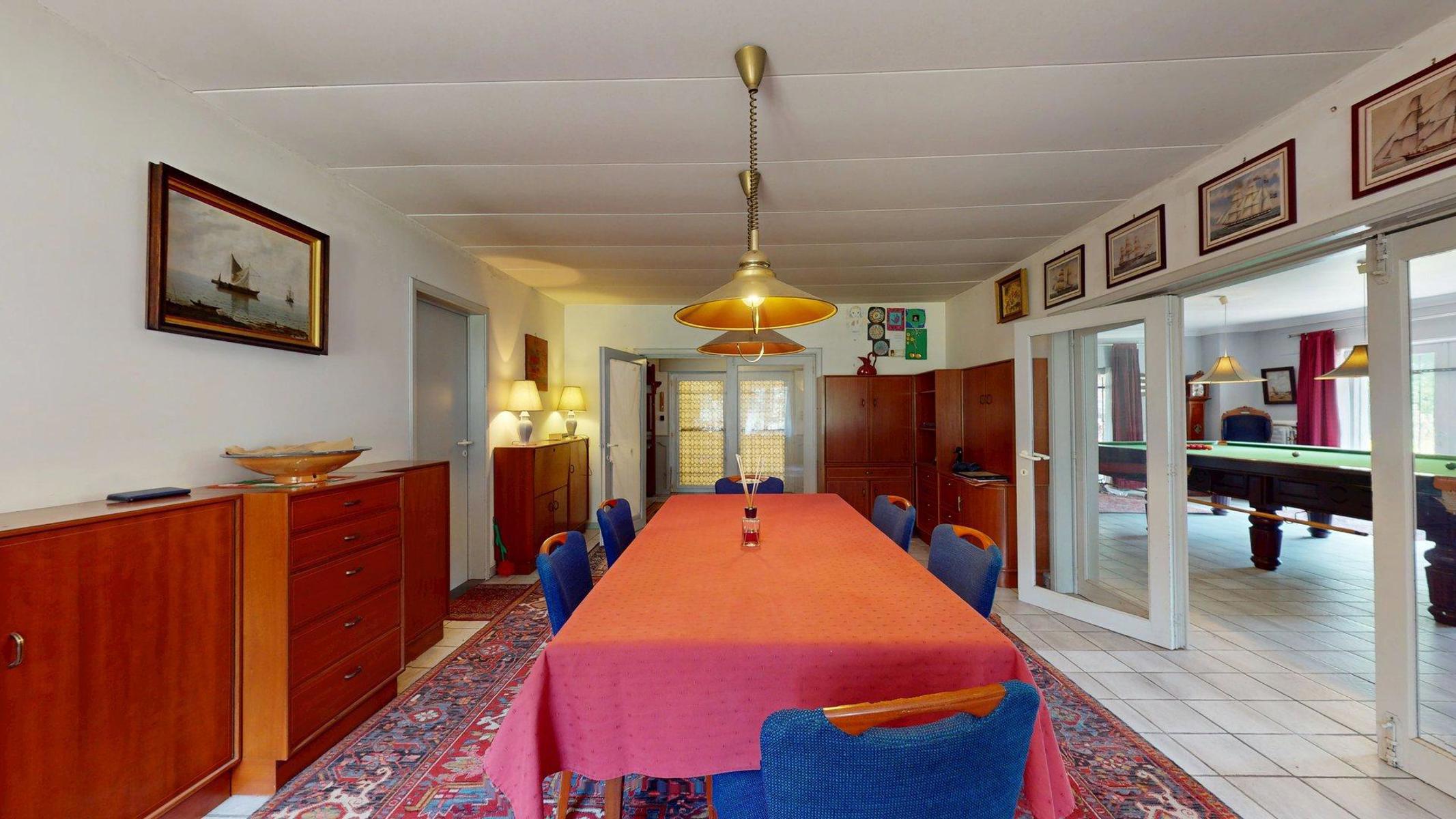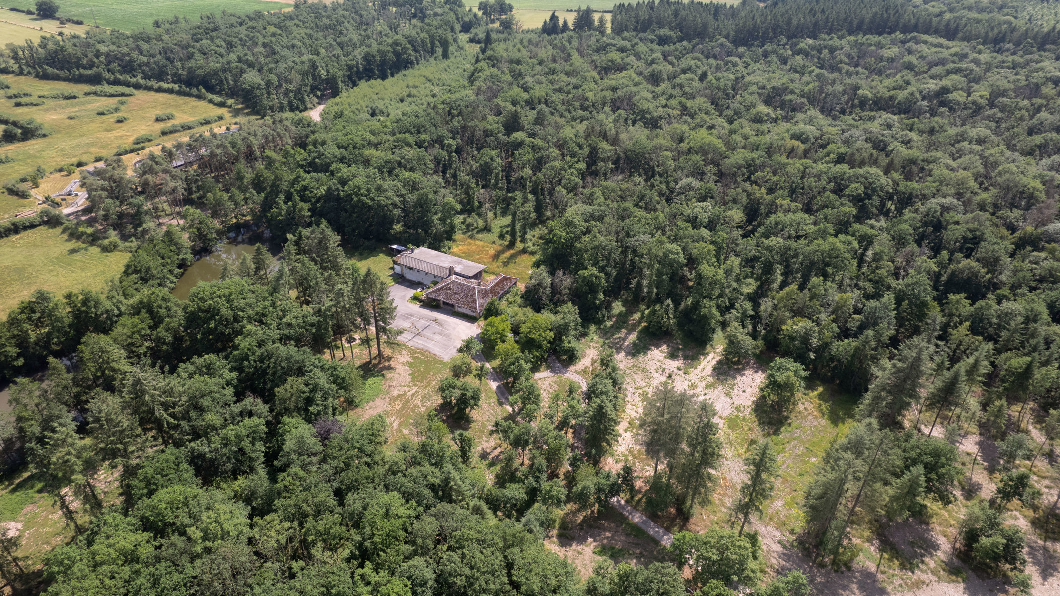 À quelques minutes de Marche-en-Famenne, au bout d’une impasse et à l’abri des regards, ce domaine exceptionnel s’étend sur + de 10 ha au cœur d’un environnement naturel remarquable et préservé. Véritable havre de paix en pleine nature, il se compose d’une vaste habitation de +- 514 m² (selon PEB), d’une dépendance cadastrée de 72 m², de 2 étangs, de zones boisées sur plus de 7 ha et de 3 ha supplémentaires en zone agricole. Partiellement situé en zone Natura 2000, le site bénéficie d’un potentiel d’exploitation varié: résidence familiale ou secondaire, hébergement touristique, relais de chasse ou encore projet immobilier à caractère unique (sous réserve d’autorisations). L’habitation actuelle, scindable en 2 unités indépendantes, propose une configuration généreuse avec 33 pièces, dont 8 chambres, 3 salles de bains, 2 grands salons avec feu ouvert, salle de billard, 2 cuisines, 2 salles à manger, bureaux, nombreux espaces de rangement, atelier, caves et un garage fermé pour 3 véhicules. Un bien aussi rare qu’authentique, aux possibilités multiples, niché dans un écrin de verdure au cœur de la Famenne. TECHNIQUE: chaudière au mazout, électricité non conforme, 2 fosses sceptiques, puits privé pour l’alimentation en eau. PEB F, le logement nécessite une rénovation globale mais promet, à terme, une valorisation exceptionnelle.