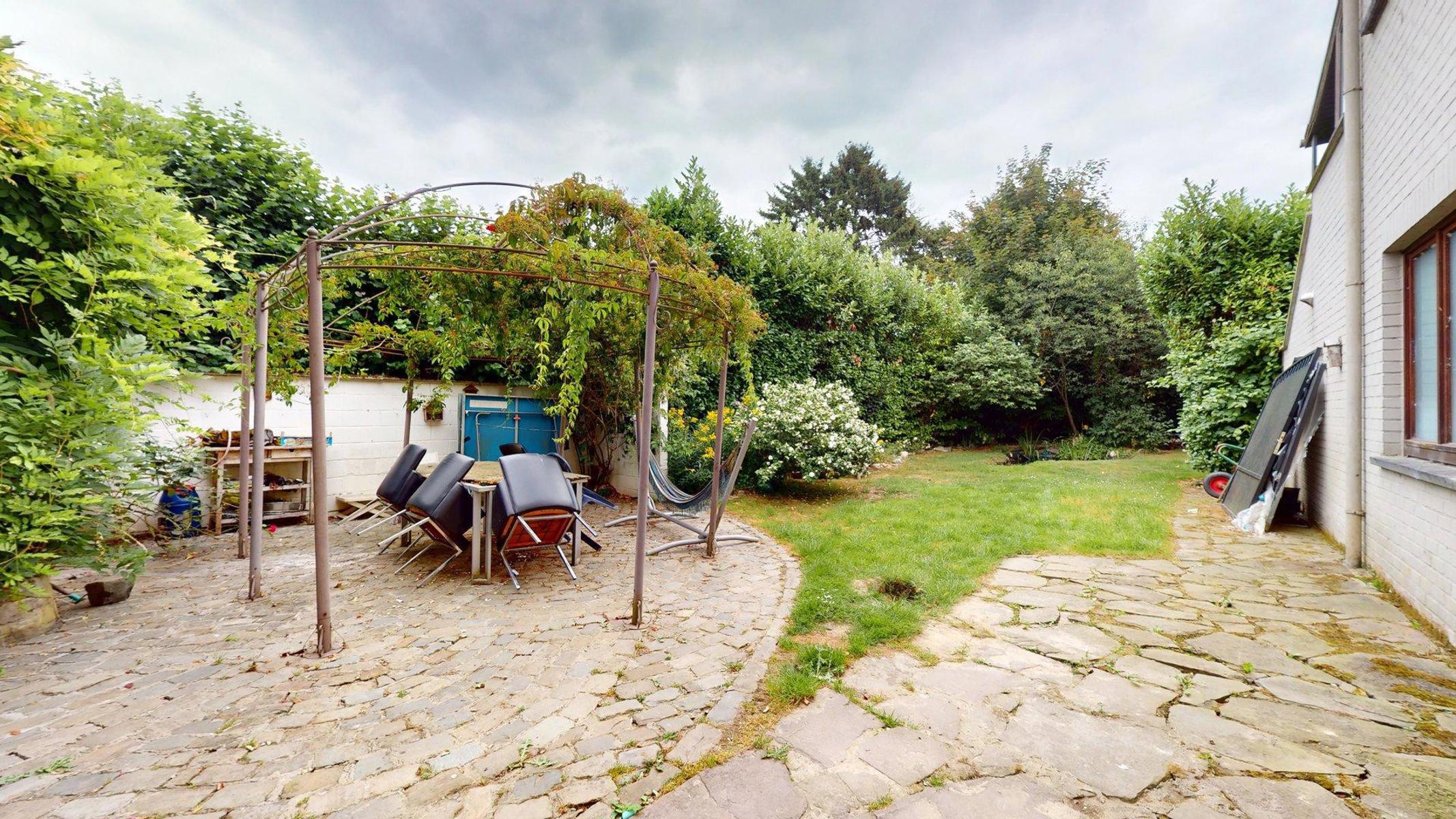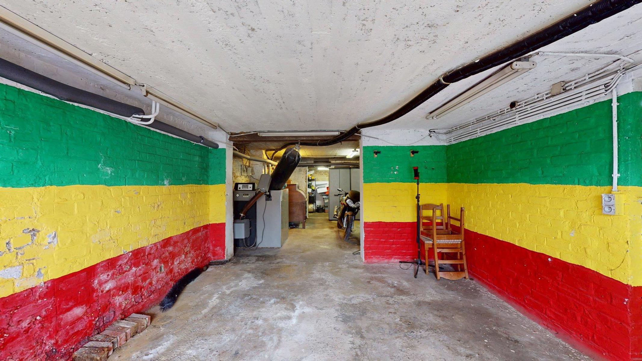 Au sous-sol, de nombreuses caves et un garage pour une voiture. Un jardin avec terrasse est orienté au est sud-est. Un cabanon de jardin permet le rangement des différents outils.