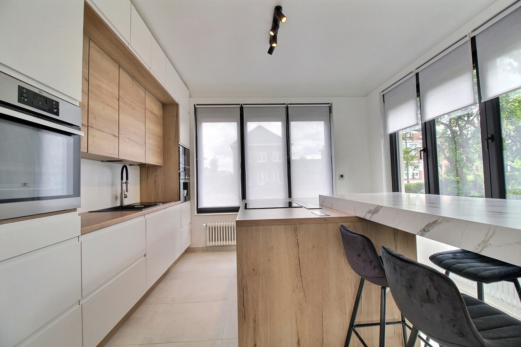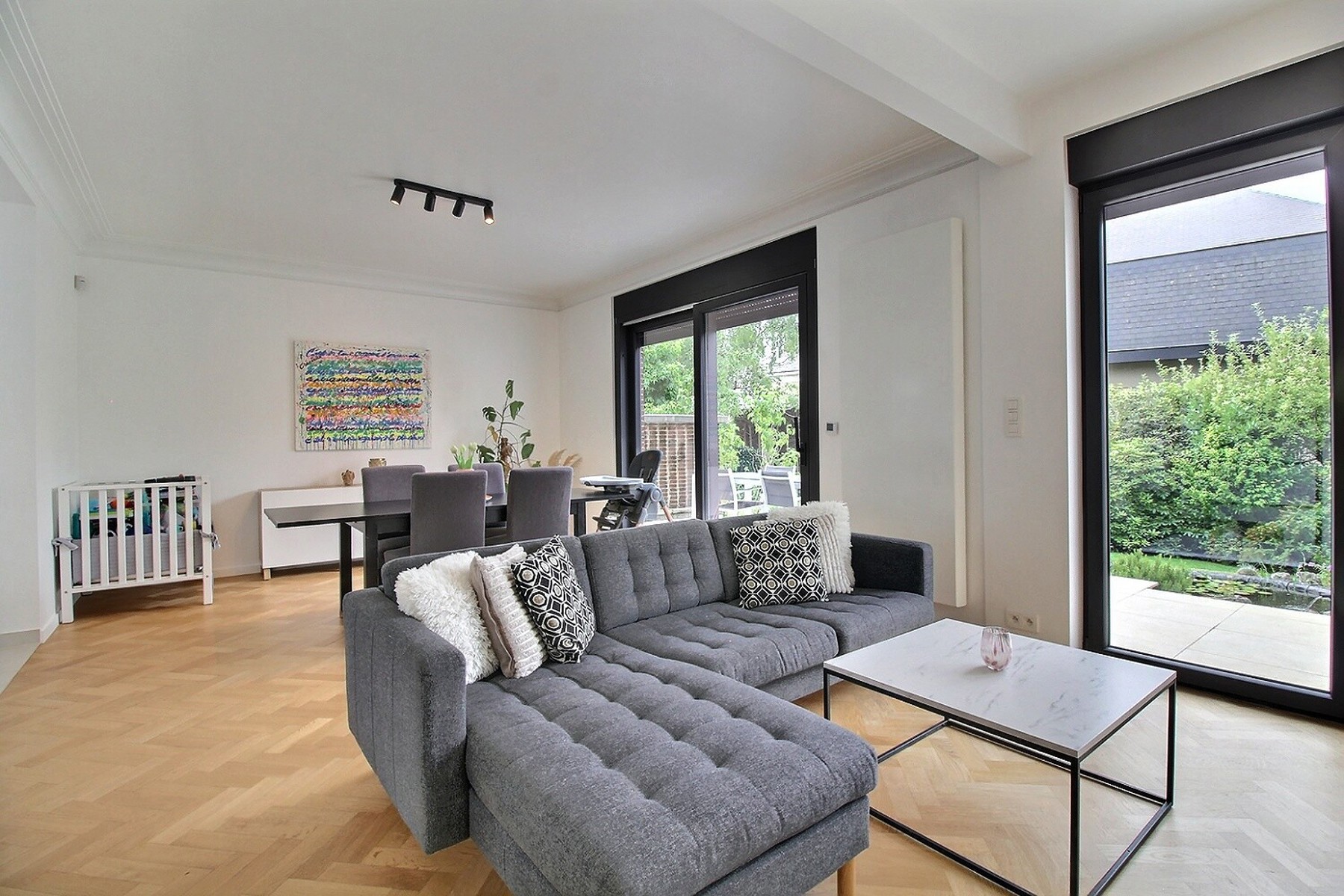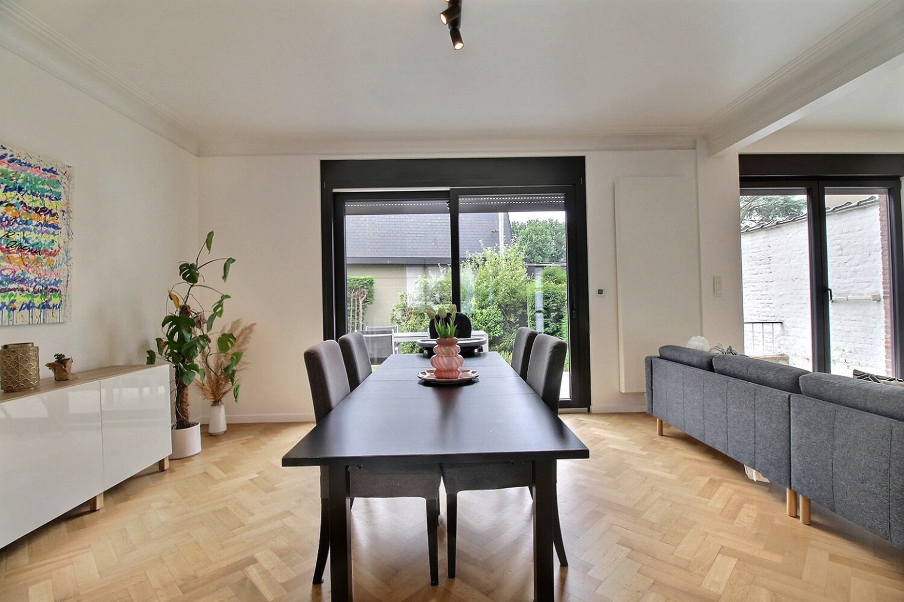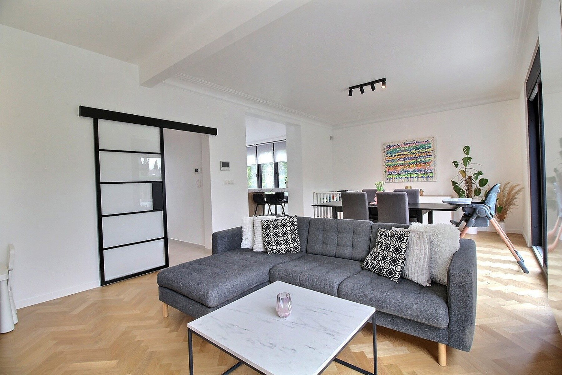 By The Way vous présente cette superbe maison 3 façades entièrement rénovée en 2021 de ±236㎡, proche des transports, des écoles, des commerces et du Ring de Bruxelles. Le bien se compose comme suit, RDC: Hall d’entrée avec espace vestiaire et WC invités, séjour de +/- 32,5㎡ donnant accès à la terrasse de +/-18㎡, la cuisine de +/- 15㎡ entièrement équipée est également ouverte sur le séjour. 1ER ETAGE: hall de nuit donnant accès aux 3 chambres de 17, 15 et 13 ㎡, salle de bains avec douche dans le bains, évier double vasque et un WC. GRENIER sur toute la surface de la maison, possibilité d’aménagement (électricité, eau et évacuation en place). SOUS-SOL: cave n°1 de 5,5 ㎡, cave n°2 +/- 8 ㎡, garage de +/- 23㎡, cave n°3 +/- 32㎡. DIVERS: PEB « B », électricité conforme, jardin de +/- 400㎡, parquet en chêne massif, volets au RDC, 15 panneaux solaires avec batterie de 7,5KW