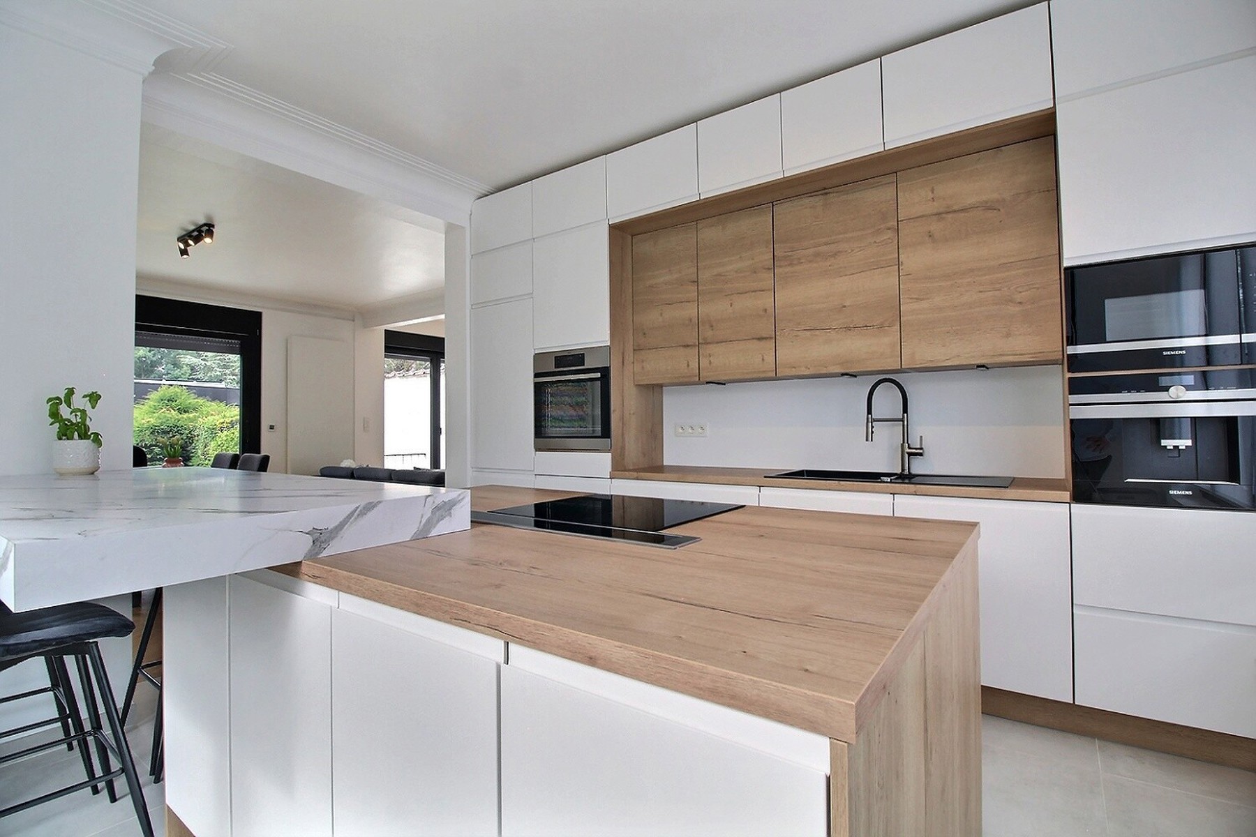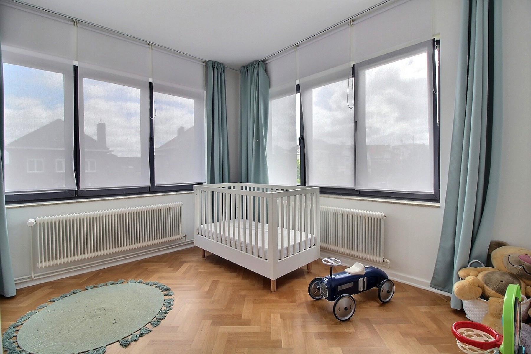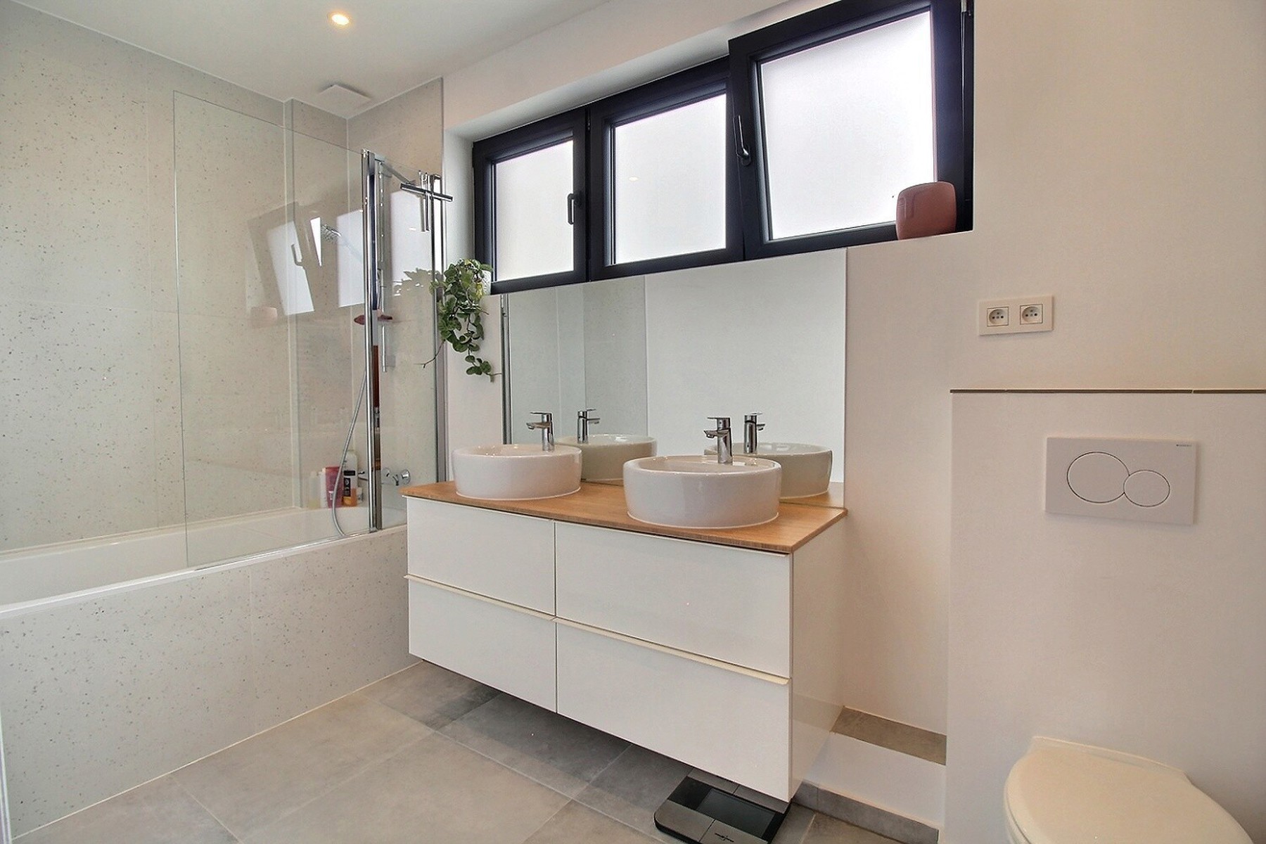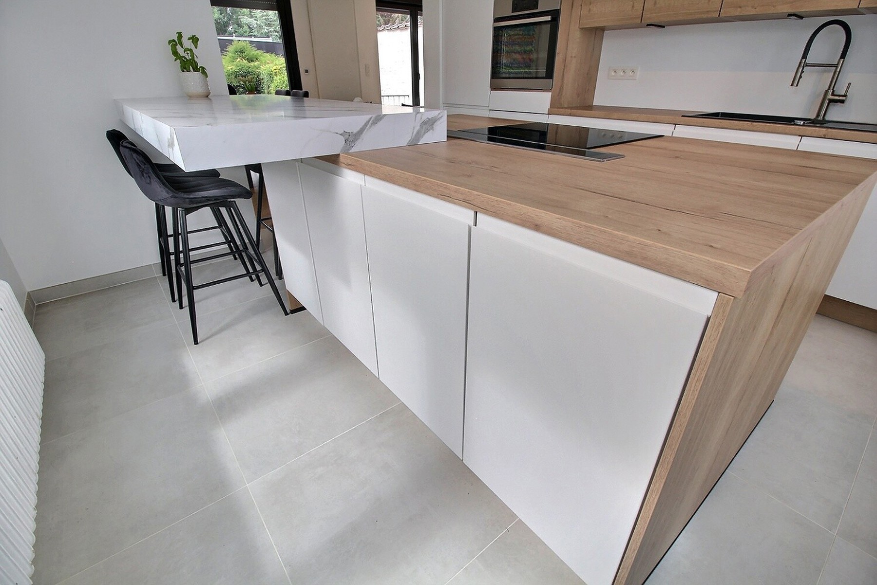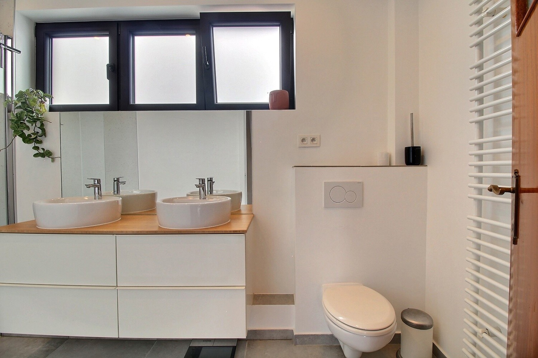 By The Way vous présente cette superbe maison 3 façades entièrement rénovée en 2021 de ±236㎡, proche des transports, des écoles, des commerces et du Ring de Bruxelles. Le bien se compose comme suit, RDC: Hall d’entrée avec espace vestiaire et WC invités, séjour de +/- 32,5㎡ donnant accès à la terrasse de +/-18㎡, la cuisine de +/- 15㎡ entièrement équipée est également ouverte sur le séjour. 1ER ETAGE: hall de nuit donnant accès aux 3 chambres de 17, 15 et 13 ㎡, salle de bains avec douche dans le bains, évier double vasque et un WC. GRENIER sur toute la surface de la maison, possibilité d’aménagement (électricité, eau et évacuation en place). SOUS-SOL: cave n°1 de 5,5 ㎡, cave n°2 +/- 8 ㎡, garage de +/- 23㎡, cave n°3 +/- 32㎡. DIVERS: PEB « B », électricité conforme, jardin de +/- 400㎡, parquet en chêne massif, volets au RDC, 15 panneaux solaires avec batterie de 7,5KW