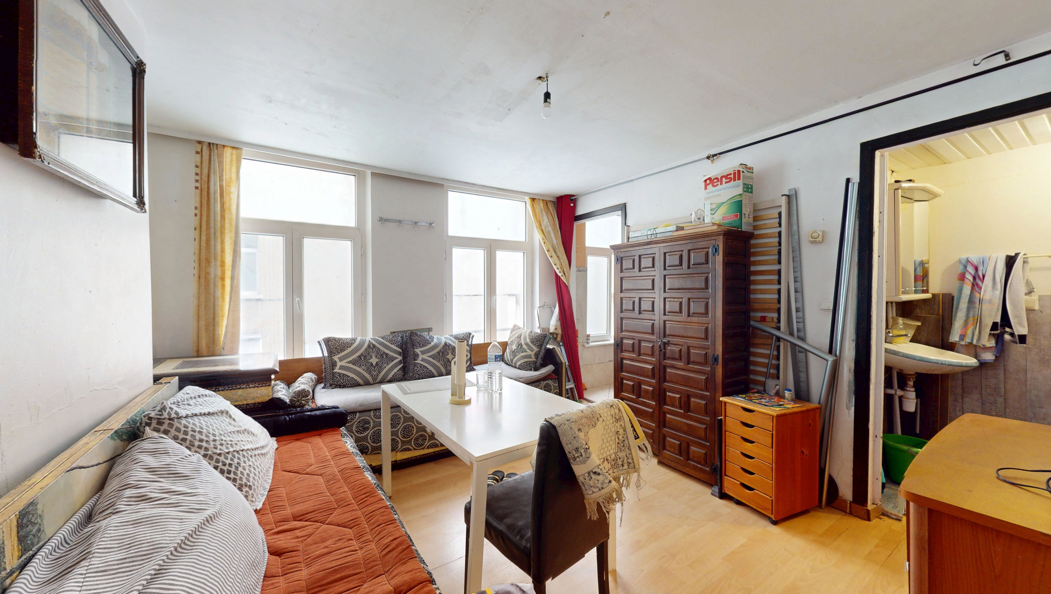 BBRUXELLES – Marolles – Situation au cœur des Marolles de Bruxelles, cet immeuble (235m²) divisé en 4 unités (1 par étage) avec 2 logements.