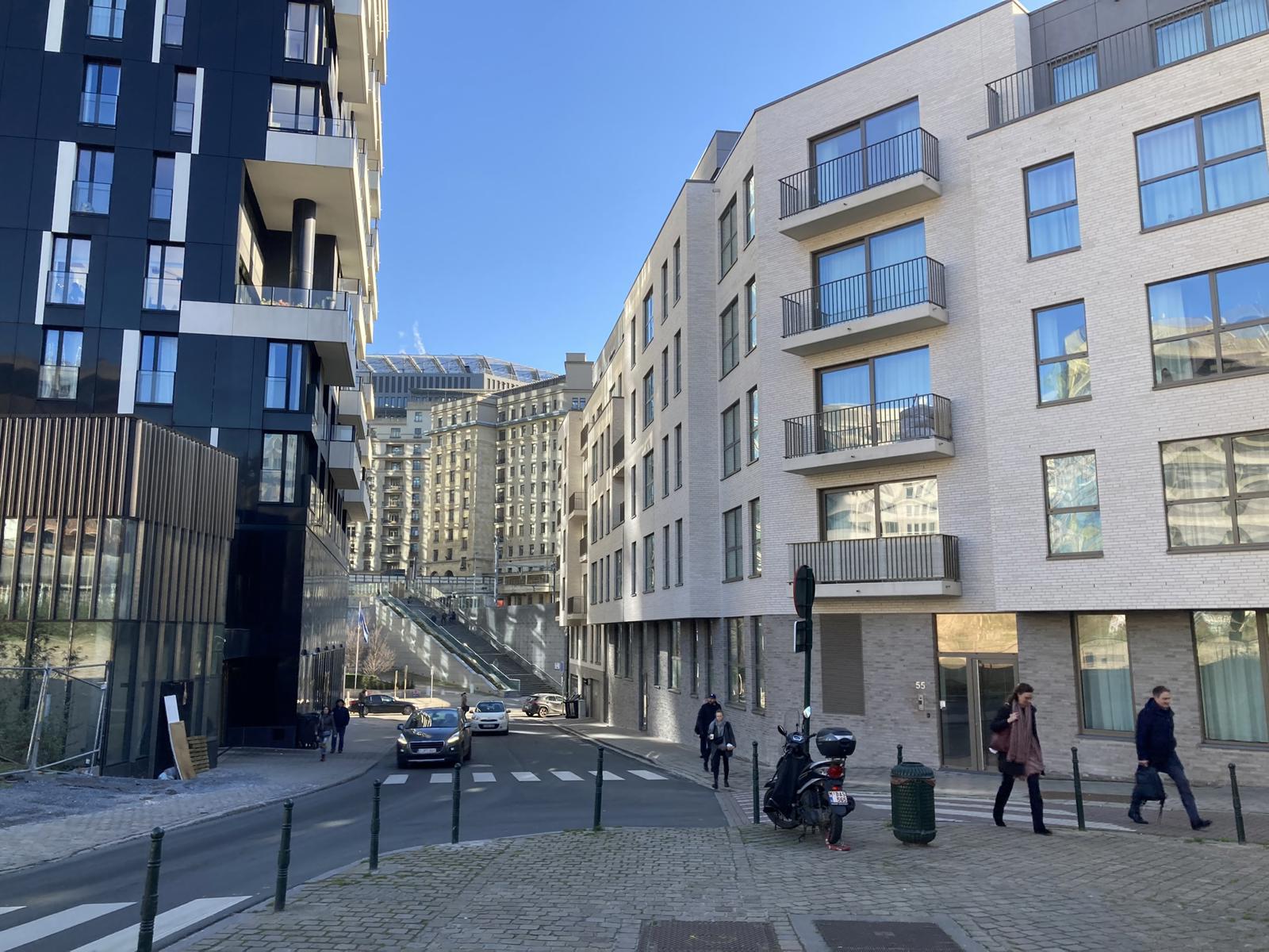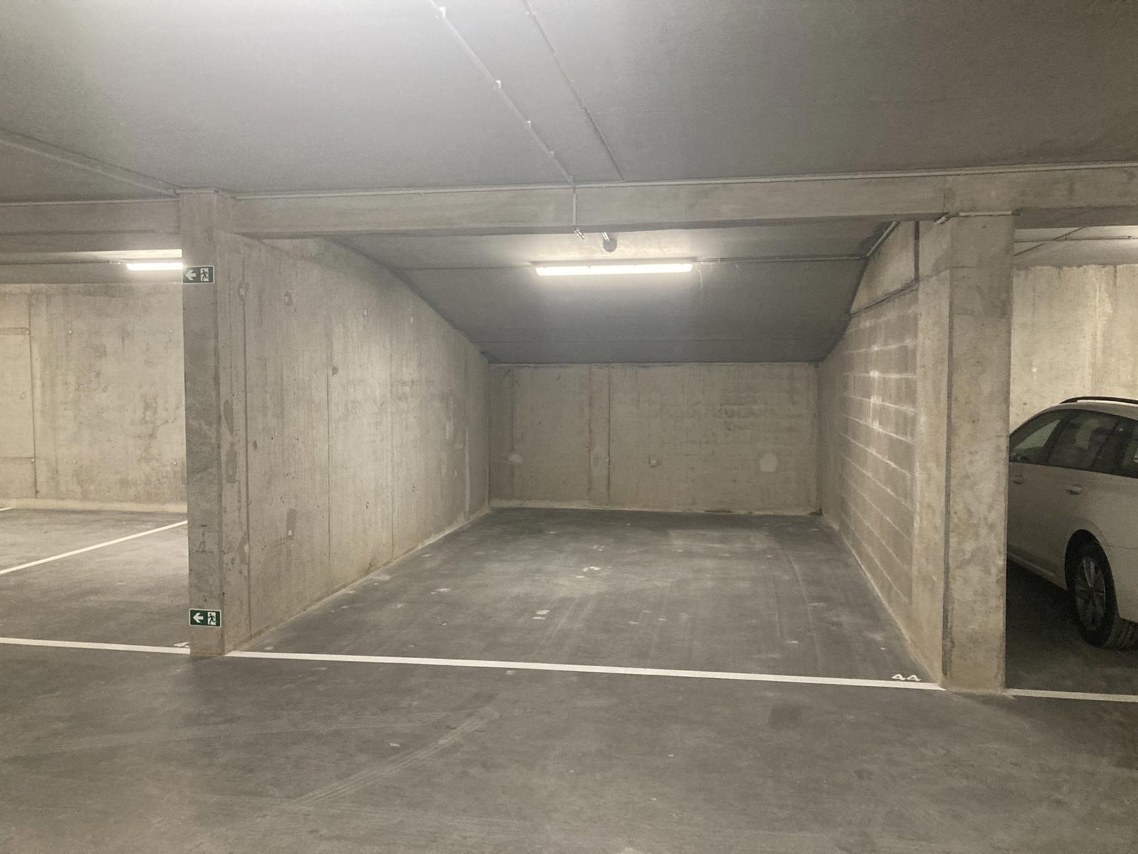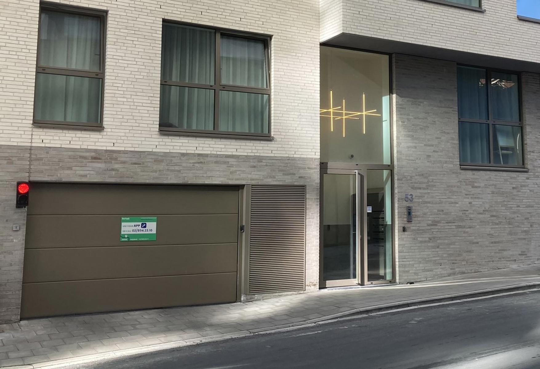 Emplacements dans un bâtiment neuf en plein milieu du quartier de l’EUROPE : « La résidence SQUARE LALAING » nommée également « Résidence Schuman », rue Jacques Lalaing 51-53, au niveau -2: L’ emplacement P44 pour une voiture jouxte celui M11 pour une moto. Ces emplacements sont loués ensemble. Une borne de chargement électrique est disponible pour un supplément de 30 euros par mois