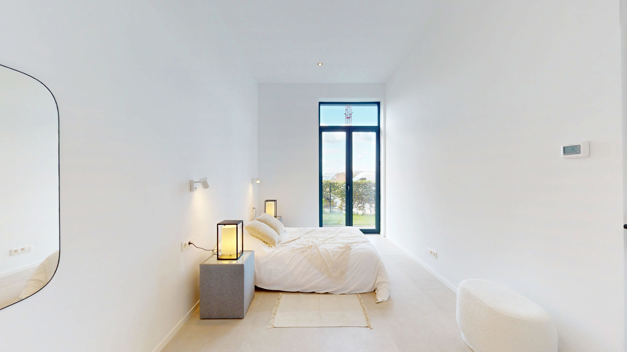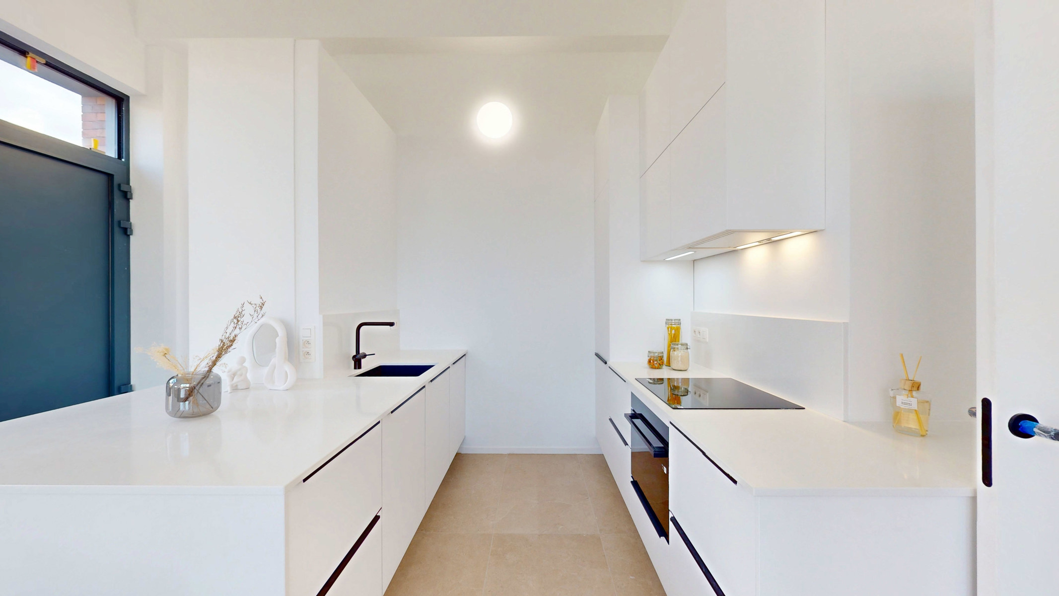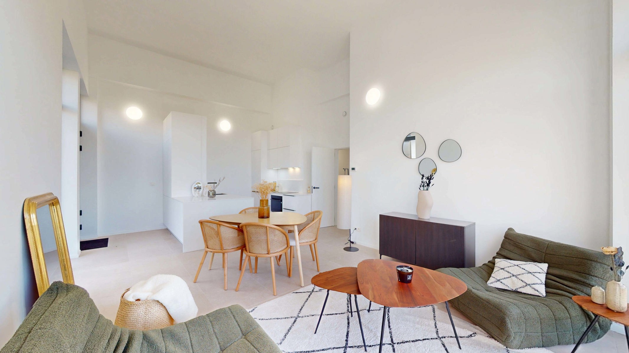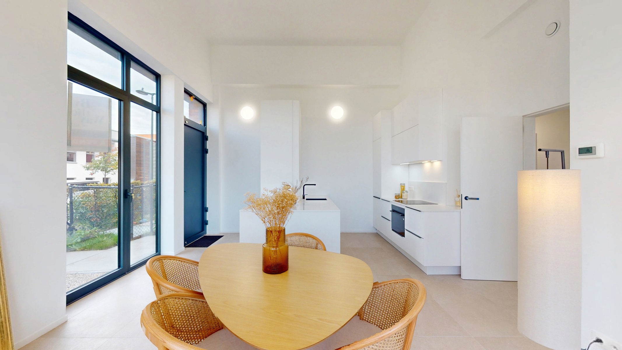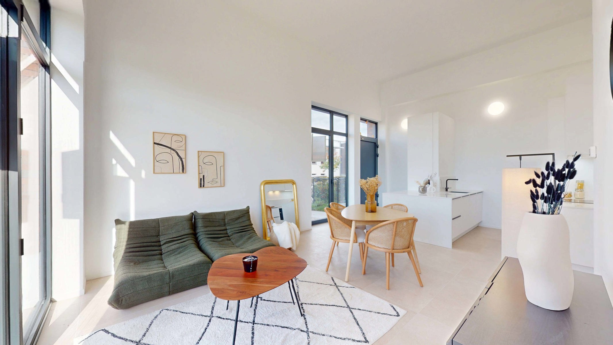 Situé à proximité de la gare de Calvoet à Uccle, de ses transports et de ses commerces, By The Way vous propose ce lumineux appartement NEUF d’environ 90 m2 bruts (selon PEB), dans un nouveau quartier verdoyant en plein essor. Accessible depuis la venelle, par son entrée privative, ce RDC aux finitions haut de gamme est entouré d’un espace jardin + terrasse privatif de +/- 64m² et est composé comme suit: un séjour de +/- 33m² comprenant une cuisine ouverte hyper-équipée, bénéficiant d’une hauteur sous plafond exceptionnelle de 4,4m, un hall de nuit menant à une chambre parentale de 15m² avec salle de bain attenante, une seconde chambre de +/- 10m², une salle de douche, une buanderie et un WC séparé. Cet appartement possède également un grenier de +/- 8m² et l’immeuble dispose d’un local vélo sécurisé. Emplacement de parking intérieur obligatoire et en supplément (25.000€). Spécificités techniques et équipements: PEB B, électricité conforme, VMC double flux, chaudière au gaz individuelle. Compteurs eau/électricité individuels, châssis en aluminium avec isolation thermique et phonique. Charges communes (assurances, entretien, syndic, fond de réserve) d’environ 170 €/mois. Vente sous régime TVA.
